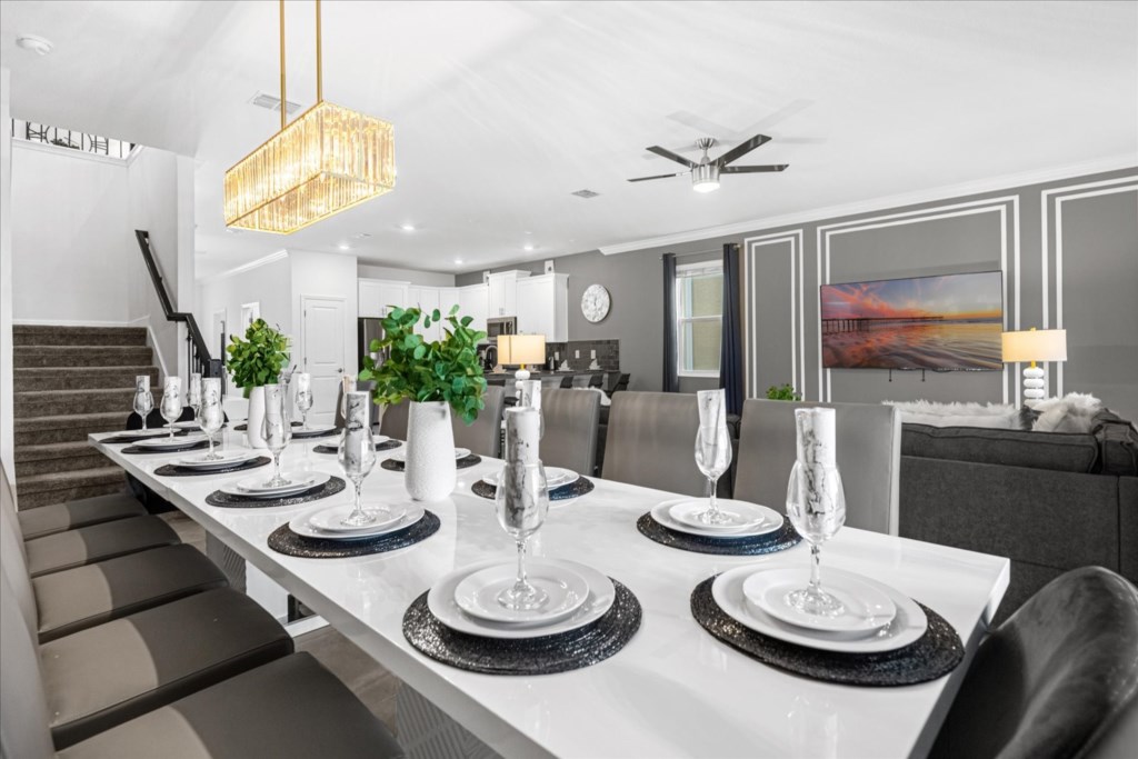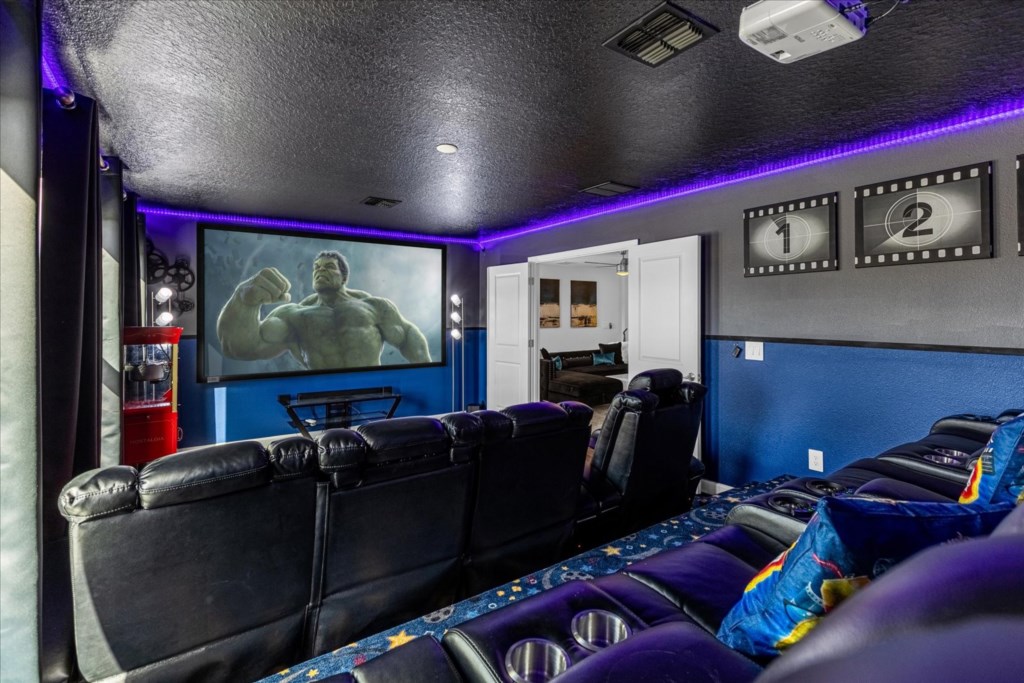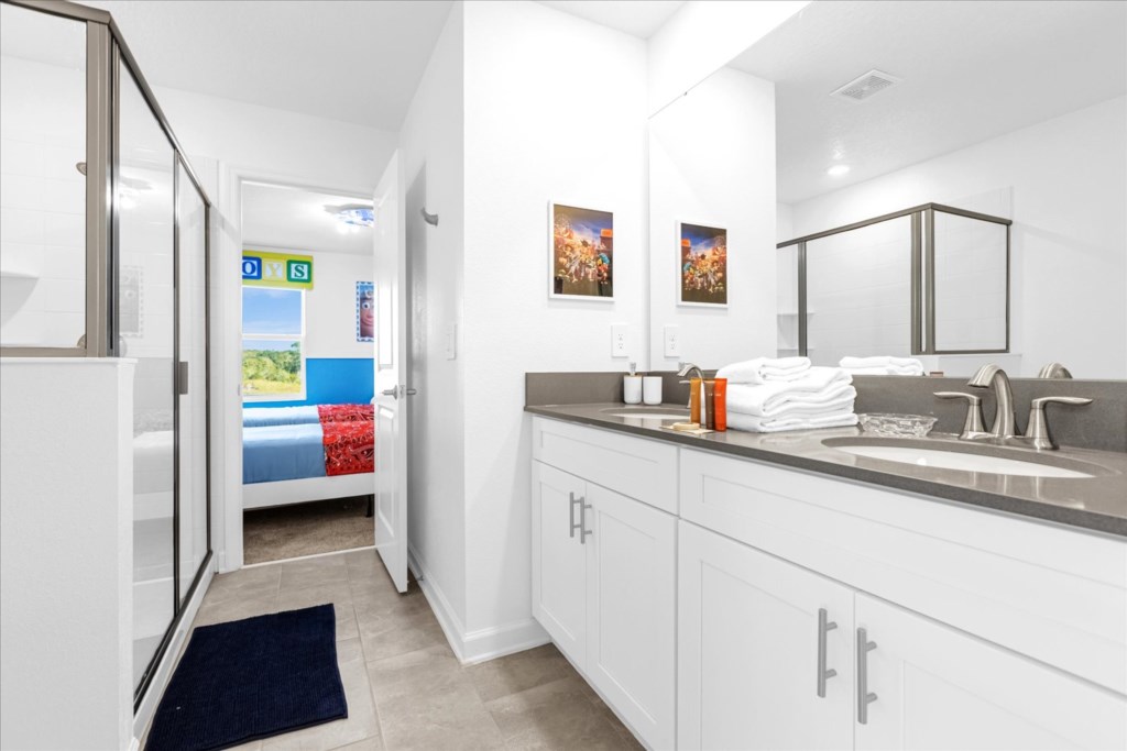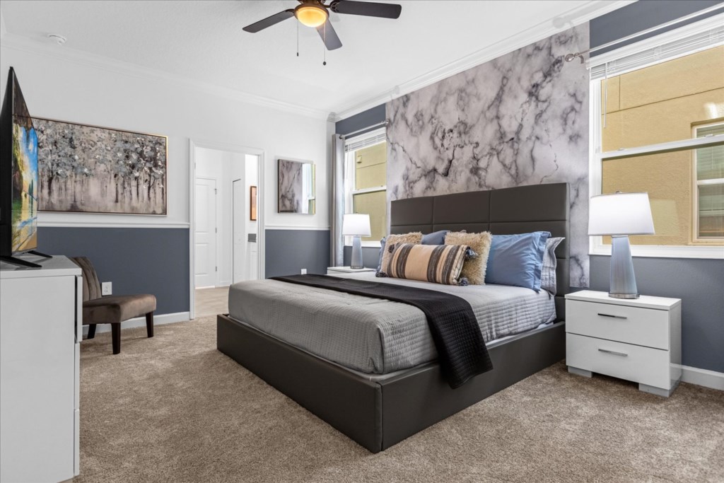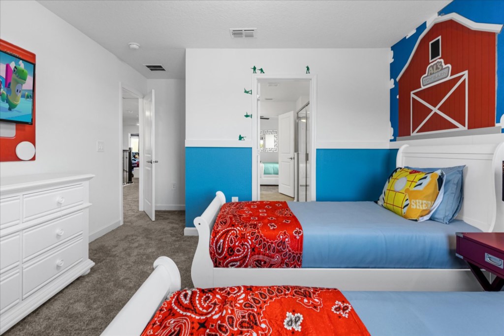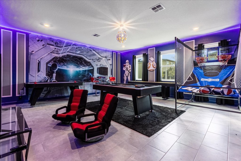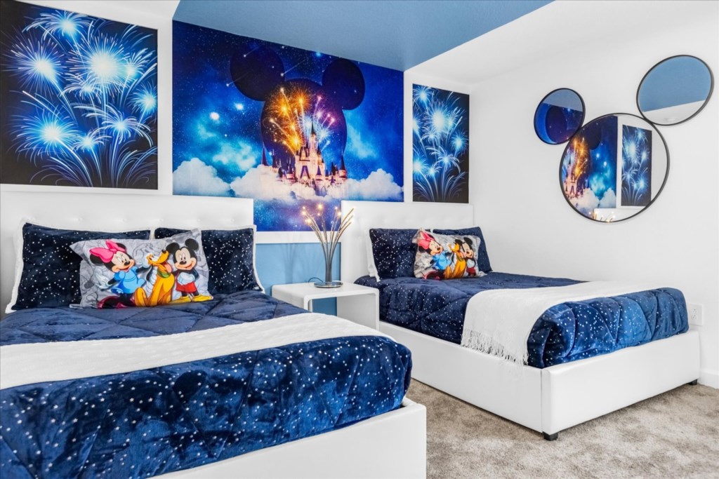 • Community: Storey Lake • 8 Bedroom/5 Bathroom/Sleeps 22 • Disney (5 miles) • SeaWorld (7 miles) • Convention Center (9 miles) • Universal (10 miles) • Location: Protagonist Street, Kissimmee FL 34746 DETAILS • Central AC • Washer/Dryer • Covered Lanai • Free Cable & WIFI • TV in all bedrooms • Fresh Towels/Linens • Granite Countertops • 24-Hour Gated Entry • Fully Equipped Kitchen • Child Safety Pool Fence • Private Screened-in Pool • Stainless Steel Appliances • Washcloths are not provided • Family Room with Flat Screen TV • Hair Dryers, Iron & Ironing Board • Pool Heat $35 per day - Optional • BBQ Rental $75 All Stay - Optional • Outdoor Patio Furniture with Sun Loungers • Pack 'n play/ High Chair (Free Upon Request) BEDROOMS FIRST FLOOR: Bedroom 1: 1 King Bed + Shared Bathroom With Pool Area Bedroom 2: 1 King Bed (Private Bathroom) BEDROOMS SECOND FLOOR: Bedroom 3: 2 Full Beds (Mickey Room) Bedroom 4: 1 Full Bed + 1 Bunk Bed (Twin Over Twin) (Marvel Room) Bedroom 5: 1 King Bed + Shared Bathroom Between Bedrooms 4 & 5 Bedroom 6: 1 Full Bed + 1 Twin Bed (Toy Story) Bedroom 7: 1 King Bed (Light Blue Room) + Shared Bathroom Between Bedrooms 6 & 7 Bedroom 8: 1 Bunk Bed (Twin Over Full) (Frozen Room) + Bathroom In Hallway RESORT AMENITIES • Spa • Pool • Lounge • Jacuzzi • Tiki Bar • Mini Golf • Lazy River • Restaurant • Waterslides • Splash Park • Kayak Rental • Fitness Center • Ice cream shop • Basketball Court • Beach Volleyball • Lagoon style pool • Huge Resort-Style pool THIS HOUSE IS SELF-CATERING. Please stop by your nearest supermarket to purchase personal toiletries and desired meals. STARTER SUPPLIES: •We do provide a small welcome kit to get you started. • Please stop by the nearest Supermarket to gather any additional items you may need for the duration of your stay. (Walmart - 1.5 Miles) HOUSEKEEPING: There is no daily housekeeping service provided in the rental rate. Before check-in, the unit will be thoroughly cleaned and inspected by a professional cleaning company. Clean sheets and towels will be available in the unit. Mid-stay cleaning services during your stay can be requested for an additional fee. TRASH DISPOSAL: Please observe trash collection days and place trash in the resort dumpster daily to keep a clean home. ONLINE PURCHASE: If the online seller uses USPS, it will not get delivered as the Post Office does not recognize vacation homes as regular addresses and the package will be returned back to the sender. Only UPS, DHL and FEDEX delivers them. In some resorts the packages are delivered to the clubhouse. Fees may apply. Some resorts may not accept them. Keep in mind we are not responsible for unexpected issues with your online purchases. If you have any questions, please contact us. POOL HEATER: VERY IMPORTANT 1-Cost: $35 per day. 2-Minimum: 2 consecutive days. 3-Temperature will not exceed 95F. 4-Must be requested 48h in advance. 5-Attached spa is NOT a jacuzzi. It does not have jets. It can only be heated if the entire pool is heated. They both will have the same temperature. 6-Heaters works through HEAT EXCHANGE and WILL NOT WORK in cold weather. If you still would like to heat the pool during cold conditions and it does not reach the desired temperature, we will not be able to offer a refund. Our pool heater pumps have a safety system that prevents overheating of the element when the pump is working overtime in cold weather conditions. This way causes a temporary shut off of services automatically until the pump can regain its functionality efficiently. (This is optional and may not be available at times.) ADDITIONAL CHARGES APPLY IF NOT COMPLIED when the owner has to fix something or pay for an extra cleaning.