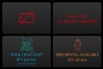 • Resort: Encore At Reunion • NO ACCESS TO RESORT AMENITIES • 5 Bedrooms/ 4.5 Bathrooms/ Sleeps 12 • Disney (7.3 mi) SeaWorld (14.9 mi) Legoland (30.0 mi) • Convention Center (10.2 mi) Universal Studios (18.5 mi) • Location: Westland Drive, Kissimmee FL 34747 DETAILS • Central AC • Washer & Dryer • Gated Community • TV In Every Bedroom • Free Cable TV & WIFI • Fully Equipped Kitchen • Towels & Linens Provided • Stainless Steel Appliances • Washcloths Are Not Provided • Family Room with Flat Screen TV • Hair Dryers, Iron & Ironing Board • Private Pool + Child Safety Pool Fence • Private Door Code for Each Guest Stay • Outdoor Patio Furniture with Sun Loungers • Pack 'n play/ High Chair (Free Upon Request) BEDROOMS FIRST FLOOR Bedroom 1: 1 King Bed + Bathroom in Hallway + Half Bath in Pool Area BEDROOMS SECOND FLOOR Bedroom 2: 1 King Bed (Private Bathroom) Bedroom 3: 2 Twin Beds + Attached Bathroom with access to Hallway Bedroom 4: 1 Twin Bed + 1 Bunk Bed (Twin over Full) + Shared Bathroom between Bedrooms 3 & 4 Bedroom 5: 1 King Bed (Private Bathroom) GARAGE CONVERTED TO A GAME ROOM! - USEFUL INFORMATION • PARKING Parking is free. There are marked spots. Parking in the street is not allowed. Commercial Vehicles, RVs and Trailers are not permitted at Encore at Reunion. THERE IS NO ACCESS TO WATERPARK/ CLUBHOUSE/ RESORT AMENITIES. • THIS HOME IS SELF-CATERING We do provide a small welcome kit to get you started. Please stop by the nearest supermarket to gather any additional items you may need for the duration of your stay. • POOL HEAT - OPTIONAL 1-Cost: $75 per day. 2-Minimum: 2 consecutive days. 3-Temperature will not exceed 95F. 4-Must be requested 48h in advance. 5-Attached spa is NOT a jacuzzi. It does not have jets. It can only be heated if the entire pool is heated. They both will have the same temperature. 6-Heater works through HEAT EXCHANGE and WILL NOT WORK in cold weather. If you still would like to heat the pool during cold conditions and it does not reach the desired temperature, we will not be able to offer a refund. Our pool heater pumps have a safety system that prevents overheating of the element when the pump is working overtime in cold weather conditions. This way causes a temporary shut off of services automatically until the pump can regain its functionality efficiently. This is optional and may not be available at times. • BBQ RENTAL - OPTIONAL - Cost: $75 All Stay • TRASH DISPOSAL Please place the trash in the plastic bin located on the side of the house daily to keep a clean home. • HOUSEKEEPING There is no daily housekeeping service provided in the rental rate. Before check-in, the unit will be thoroughly cleaned and inspected by a professional cleaning company. Clean sheets and towels will be available in the unit. Mid-stay cleaning services during your stay can be requested for an additional fee. • ONLINE PURCHASE If the online seller uses USPS, it will not get delivered as the Post Office does not recognize vacation homes as regular addresses and the package will be returned back to the sender. Only UPS, DHL and FEDEX delivers them. In some resorts the packages are delivered to the clubhouse. Fees may apply. Some resorts may not accept them. Keep in mind we are not responsible for unexpected issues with your online purchases. If you have any questions, please contact us. PLEASE NOTE: Additional charges apply when the owner has to fix something or pay for additional cleaning if not complied.