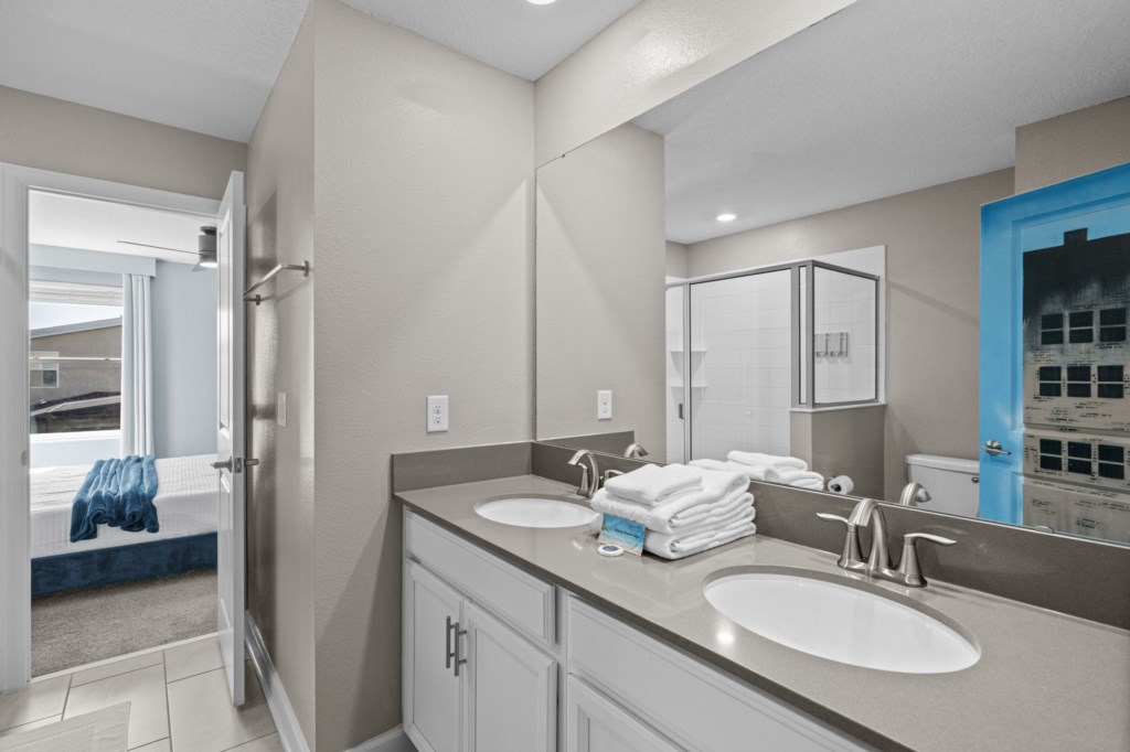 • Community: Storey Lake • 9 Bedroom/5 Bathroom/Sleeps 28 • Disney World® (5.0 miles) SeaWorld (8.2 miles) • Convention Center (9.3 miles) ICON Park (10.8 miles) • Universal Studios (12.0 miles) Epic Universe (10.5 miles) • Location: Target Blvd, Kissimmee FL 34746 DETAILS • Central AC • Washer & Dryer • Gated Community • TV In Every Bedroom • Free Cable TV & WIFI • Fully Equipped Kitchen • Towels & Linens Provided • Washcloths Are Not Provided • Family Room with Flat Screen TV • Hair Dryers, Iron & Ironing Board • Private Door Code for Each Guest Stay • Outdoor Patio Furniture with Sun Loungers • Pack 'n play/ High Chair (Free Upon Request) • Private Screened-in Pool + Child Safety Pool Fence - BEDROOM SETUP FIRST FLOOR Bedroom 1: 1 King Bed + Full Bathroom In Hallway Bedroom 2: 1 King Bed ( Private Bathroom - Pool Access) SECOND FLOOR Bedroom 3: 1 King Bed + Shared Bathroom Between Bedrooms 3 & 9 Bedroom 4: 1 King Bed Bedroom 5: 1 King Bed + Shared Bathroom Between Bedrooms 5 & 6 Bedroom 6: 1 Bunk Bed (Full Over Full) Bedroom 7: 1 King Bed Bedroom 8: 2 Bunk Beds (Full Over Full) + Bathroom In Hallway Bedroom 9: 1 Bunk Bed (Full Over Full) - USEFUL INFORMATION • PARKING Parking is free. Commercial vehicles, RVS, Trailers, Buses, Golf carts, recreational vehicles, or watercraft is not permitted at Storey Lake. Street parking is not allowed. Cars parked in a tow-away zone or parked on property without permission may be towed at the car owner's expense. The community allows up to 10 cars to enter the resort per unit. There are overflow parking spaces, but not guaranteed as they are not assigned nor reserved. • THIS HOME IS SELF-CATERING We do provide a small welcome kit to get you started. Please stop by the nearest supermarket to gather any additional items you may need for the duration of your stay. • POOL HEAT - OPTIONAL 1-Cost: $35 per day. 2-Minimum: 2 consecutive days. 3-Temperature will not exceed 95F. 4-Must be requested 48h in advance. 5-Attached spa is NOT a hot tub. It can only be heated if the entire pool is heated. They both will have the same temperature. It does not have jets. 6-Heater works through HEAT EXCHANGE and WILL NOT WORK in cold weather. If you still would like to heat the pool during cold conditions and it does not reach the desired temperature, we will not be able to offer a refund. The pool heater pumps have a safety system that prevents overheating of the element when the pump is working overtime in cold weather. It automatically shuts off briefly until the pump can regain its functionality efficiently. Keep in mind this service is optional and may not be available at times. • BBQ RENTAL - OPTIONAL - Cost: $75 All Stay • HOUSEKEEPING There is no daily housekeeping service provided in the rental rate. Before check-in, the unit will be thoroughly cleaned and inspected by a professional cleaning company. Clean sheets and towels will be available in the unit. Mid-stay cleaning services during your stay can be requested for an additional fee. • TRASH DISPOSAL Please dispose the trash daily in the plastic bench to keep a clean home. • ONLINE PURCHASE If the online seller uses USPS, it will not get delivered as the Post Office does not recognize vacation homes as regular addresses and the package will be returned back to the sender. Only UPS, DHL and FEDEX delivers them. In some resorts the packages are delivered to the clubhouse. FEES MAY APPLY. Some resorts may not accept them. Keep in mind we are not responsible for unexpected issues with your online purchases. If you have any questions, please contact us. STOREY LAKE AMENITIES • Spa • Pool • Lounge • Jacuzzi • Tiki Bar • Lazy River • Restaurant • Waterslides • Splash Park • Kayak Rental • Fitness Center • Ice cream shop • Basketball Court • Beach Volleyball • Lagoon style pool • Huge Resort-Style pool • Mini Golf (*Fee Required) RESORT REGISTRATION NEEDED AFTER BOOKING CONFIRMATION. PLEASE NOTE: Additional charges apply when the owner has to fix something or pay for additional cleaning if not complied.