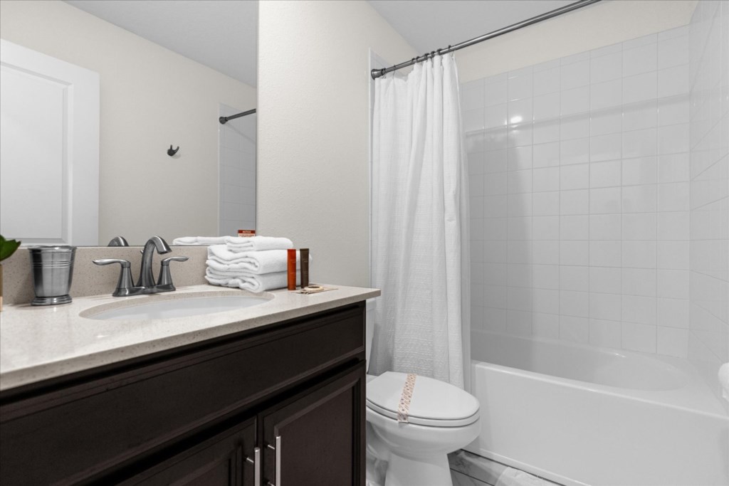 • Community: Storey Lake• 7 Bedrooms/ 6 Bathrooms/ Sleeps 19• Disney World® (5 miles) SeaWorld (8.2 miles) • Convention Center (9.3 miles) ICON Park (10.7 miles) • Universal Studios (12.0 miles) Epic Universe (11.5 miles)• Location: Stanza Court, Kissimmee FL 34746 DETAILS • 3,888 sqft • Central AC • Washer & Dryer • TV In Every Bedroom • Free Cable TV & WIFI • Fully Equipped Kitchen • Towels & Linens Provided • Washcloths Are Not Provided • Family Room with Flat Screen TV • Hair Dryers, Iron & Ironing Board • Private Door Code for Each Guest Stay • Outdoor Patio Furniture with Sun Loungers • Pack 'n play/ High Chair (Free Upon Request) • Private Screened-in Pool + Child Safety Pool Fence - BEDROOM SETUP FIRST FLOOR Bedroom 1: 1 Bunk Bed (Full Over Full) + Full Bathroom In Living Room (Pool Access) Bedroom 2: 1 Queen Bed (Private Bathroom) SECOND FLOOR Bedroom 3: 1 King Bed (Private Bathroom) Bedroom 4: 1 Bunk Bed (Twin Over Full) Bedroom 5: 1 Bunk Bed (Twin Over Full) + 1 Twin Bed + Shared Bathroom Between Bedrooms 4 & 5 Bedroom 6: 1 Queen Bed + Full Bathroom In Hallway Bedroom 7: 1 Queen Bed (Private Bathroom) - USEFUL INFORMATION • CHECKING IN AND OUT - Check-in after 4:00 PM - Checkout before 10:00 AM • PARKING - Parking is free. - No street parking. - No parking on the grass. - No parking or blocking the sidewalk. - Vehicle in violation of parking policy will be towed at the guest's expense. - Commercial vehicles, RV's, trailers, buses, golf carts, recreational vehicles or watercraft is not permitted at Storey Lake. - The community allows up to 10 cars to enter the resort per unit. There are overflow parking spaces, but not guaranteed as they are not assigned nor reserved. • THIS HOME IS SELF-CATERING We do provide a small welcome kit to get you started. Please stop by the nearest supermarket to gather any additional items you may need for the duration of your stay. • POOL HEAT - OPTIONAL 1-Cost: $35 per day. 2-Minimum: 2 consecutive days. 3-Temperature will not exceed 95F. 4-Must be requested 48h in advance. 5-Attached spa is NOT a hot tub. It can only be heated if the entire pool is heated. Both have the same temperature. It does not have jets. 6-Heater works through HEAT EXCHANGE and WILL NOT WORK in cold weather. If you still would like to heat the pool during cold conditions and it does not reach the desired temperature, we will not be able to offer a refund. The pool heater pumps have a safety system that prevents overheating of the element when the pump is working overtime in cold weather. It automatically shuts off briefly until the pump can regain its functionality efficiently. Keep in mind this service is optional and may not be available at times. • BBQ RENTAL - OPTIONAL - Cost: $75 All Stay • HOUSEKEEPING There is no daily housekeeping service provided in the rental rate. Before check-in, the unit will be thoroughly cleaned and inspected by a professional cleaning company. Clean sheets and towels will be available in the unit. Mid-stay cleaning services during your stay can be requested for an additional fee. • TRASH DISPOSAL Please dispose the trash daily in the plastic bench to keep a clean home. • ONLINE PURCHASE If the online seller uses USPS, it will not get delivered as the Post Office does not recognize vacation homes as regular addresses and the package will be returned back to the sender. Only UPS, DHL and FEDEX delivers them. In some resorts the packages are delivered to the clubhouse. FEES MAY APPLY. Some resorts may not accept them. Keep in mind we are not responsible for unexpected issues with your online purchases. If you have any questions, please contact us. • HIDEAWAY CLUB - Storey Lake - Spa - Lounge - Hot Tub - Tiki Bar - Lazy River - Restaurant - Waterslides - Splash Park - Kayak Rental - Fitness Center - Gated Community - Basketball Court - Beach Volleyball - Lagoon Style Pool - Huge Resort-Style Pool - 9-Hole Mini Golf Course (*Fee Required) • THE BRONSON CLUB - Storey Lake - Clubhouse - Lazy River - Playground - Game Room - Lounge Area - Fitness Center - Gated Community - Basketball Court - Resort-Style Swimming Pool PLEASE NOTE: Additional charges apply when the owner has to fix something or pay for additional cleaning if not complied.