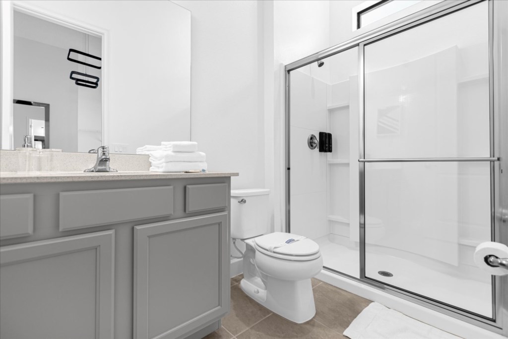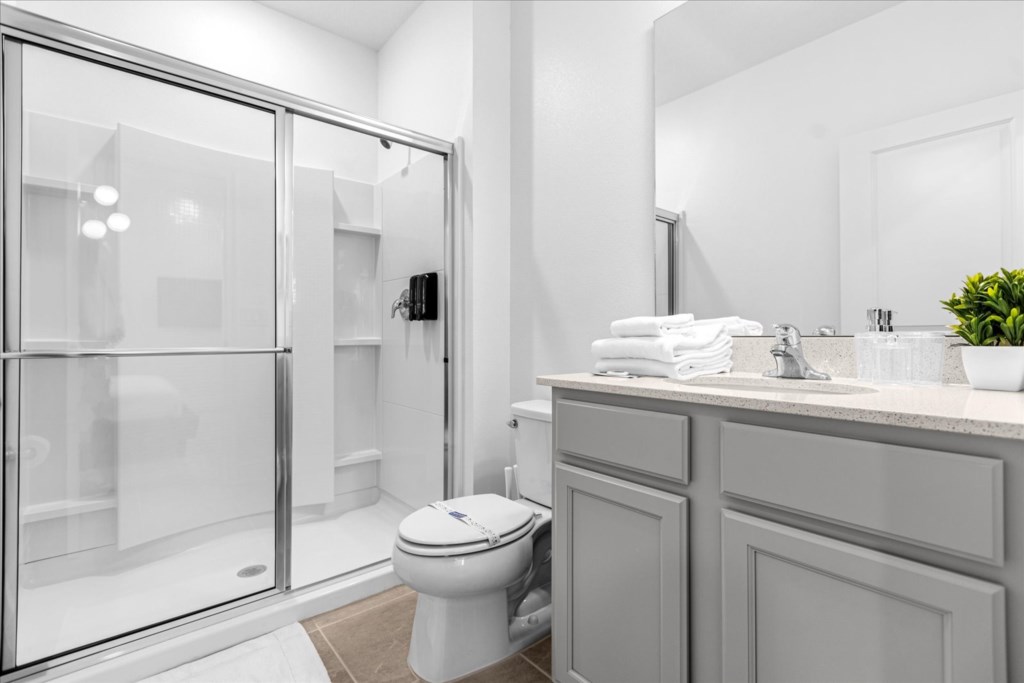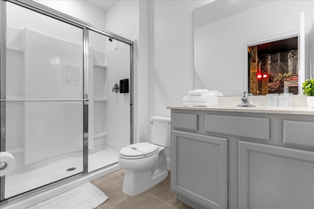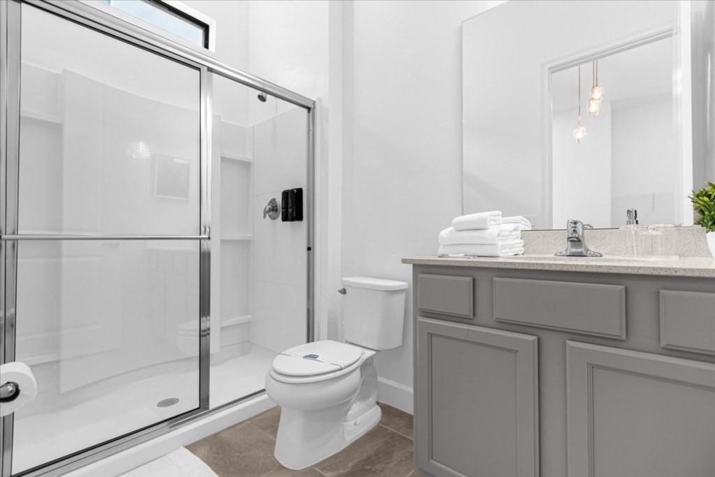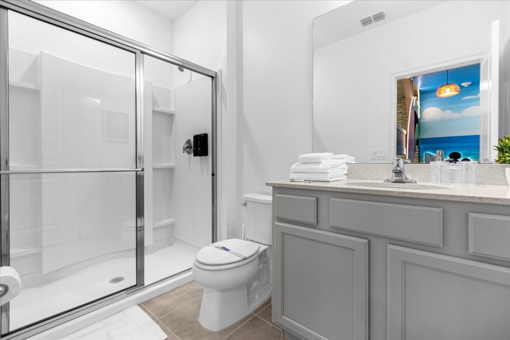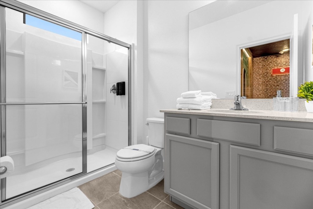 • Community: Paradiso Grande • 15 Bedrooms/ 15 Baths/ 2 Half Baths/ Sleeps 40 • Disney World® (4.7 miles) SeaWorld (1.5 miles) • Convention Center (2.9 miles) ICON Park (3.7 miles) • Universal Studios (6.0 miles) Epic Universe (3.4 miles) • Location: Sand Skipper Road, Orlando FL 32821 HOME FEATURES • 6,330 sqft • Wi-Fi • Workspace • Central AC • Cable TV & Roku • 5 Theme Bedrooms • Private Door Code • TV In Every Bedroom • Movie Theater With Recliners • Garage Converted To Game Room Bedrooms/ Bathrooms • Hair Dryers • 15 En Suite Bathrooms • Room-darkening Shades • Comfortable Mattresses • Towels & Linens (Washcloths Are Not Provided) Dining/ Kitchen • Cooking Basics • 2 Dishwashers • 2 Refrigerators • Fully Equipped Kitchen • Breakfast Island With Seating For 4 • Formal Dining Area With Seating For 18 Laundry Room • Iron & Ironing Board • 2 Sets Washer & Dryer Kid-friendly Amenities • Children’s Dinnerware • High Chair (Free Upon Request) • Pack 'n Play (Free Upon Request) Outdoor Living • Outdoor Dining Area • Child Safety Pool Fence • Natural Green Fence For Privacy • Patio Furniture With Sun Loungers • Luxury Covered Lanai With Screened-in Pool And Spa Game Room • Board Games • Arcade Games • Xbox Series S • Foosball Table • Air Hockey Table • Air Conditioning - BEDROOM SETUP FIRST FLOOR Bedroom 1: 1 King Bed (Private Bathroom) Bedroom 2: 1 King Bed (Private Bathroom) Bedroom 3: 1 King Bed (Private Bathroom) Bedroom 4: 1 King Bed (Private Bathroom) Bedroom 5: 1 King Bed (Private Bathroom) + Half Bathroom Near Pool SECOND FLOOR Bedroom 6: 1 Bunk bed (Queen over Queen) (Private Bathroom) (Toy Story) Bedroom 7: 1 King bed (Private Bathroom) Bedroom 8: 1 King bed (Private Bathroom) Bedroom 9: 1 King bed (Private Bathroom) Bedroom 10: 1 Bunk bed (Queen Over Queen) (Private Bathroom) (Harry Potter) Bedroom 11: 1 Bunk Bed (Queen Over Queen) (Private Bathroom) (Despicable Me) + Half Bathroom Bedroom 12: 1 Bunk Bed (Queen Over Queen) (Private Bathroom) (Jurassic Park) Bedroom 13: 1 Bunk Bed (Queen Over Queen) (Private Bathroom) (Mickey) Bedroom 14: 1 King Bed (Private Bathroom) Bedroom 15: 1 King Bed (Private Bathroom) - USEFUL INFORMATION • CHECKING IN AND OUT - Check-in after 4:00 PM - Checkout before 10:00 AM • PARKING Parking is free. Driveway parking. Street parking is not permitted. There are overflow parking lots throughout the community and also behind the clubhouse . There is no vehicle limit. Commercial vehicles, RV's, trailers, buses, golf carts or boats are not allowed at Paradiso Grande. • THIS HOME IS SELF-CATERING We do provide a small welcome kit to get you started. Please stop by the nearest supermarket to gather any additional items you may need for the duration of your stay. • POOL HEAT - OPTIONAL 1-Cost: $75 per day. 2-Minimum: 2 consecutive days. 3-Temperature will not exceed 95F. 4-Must be requested 48h in advance. 5-Attached spa is NOT a hot tub. It can only be heated if the entire pool is heated. Both have the same temperature. Our pool heater pumps have a safety system that prevents overheating of the element when the pump is working overtime in cold weather conditions. This way causes a temporary shut off of services automatically until the pump can regain its functionality efficiently. This is optional and may not be available at times. • BBQ RENTAL - OPTIONAL - Cost: $75 All Stay • TRASH DISPOSAL There is valet trash bin at the side of the home. All trash needs to be bagged in plastic trash bag. Trash is picked up every morning shortly after 9AM. No trash can sit outside overnight. If you want to dispose it, there is a dumpster in the parking lot behind the clubhouse. • HOUSEKEEPING There is no daily housekeeping service provided in the rental rate. Before check-in, the unit will be thoroughly cleaned and inspected by a professional cleaning company. Clean sheets and towels will be available in the unit. Mid-stay cleaning services during your stay can be requested for an additional fee. • ONLINE PURCHASE If the online seller uses USPS, it will not get delivered as the Post Office does not recognize vacation homes as regular addresses and the package will be returned back to the sender. Only UPS, DHL and FEDEX delivers them. In some resorts the packages are delivered to the clubhouse. Fees may apply. Some resorts may not accept them. Keep in mind we are not responsible for unexpected issues with your online purchases. If you have any questions, please contact us. PARADISO GRANDE AMENITIES • Cafe • Fitness Center • Sundries Stand • Gated Community • Game & Activities Room • Lobby with Furniture and TV • Electric Car Charging Stations • Resort Pool & Lazy River With Waterfall PLEASE NOTE: Additional charges apply when the owner has to fix something or pay for additional cleaning if not complied.