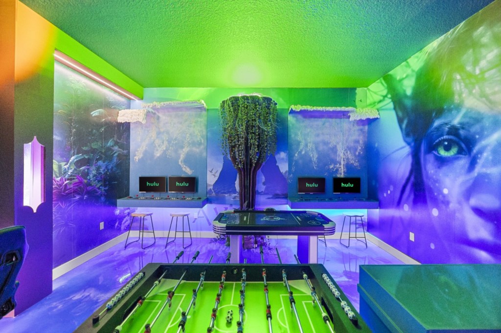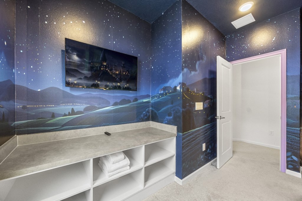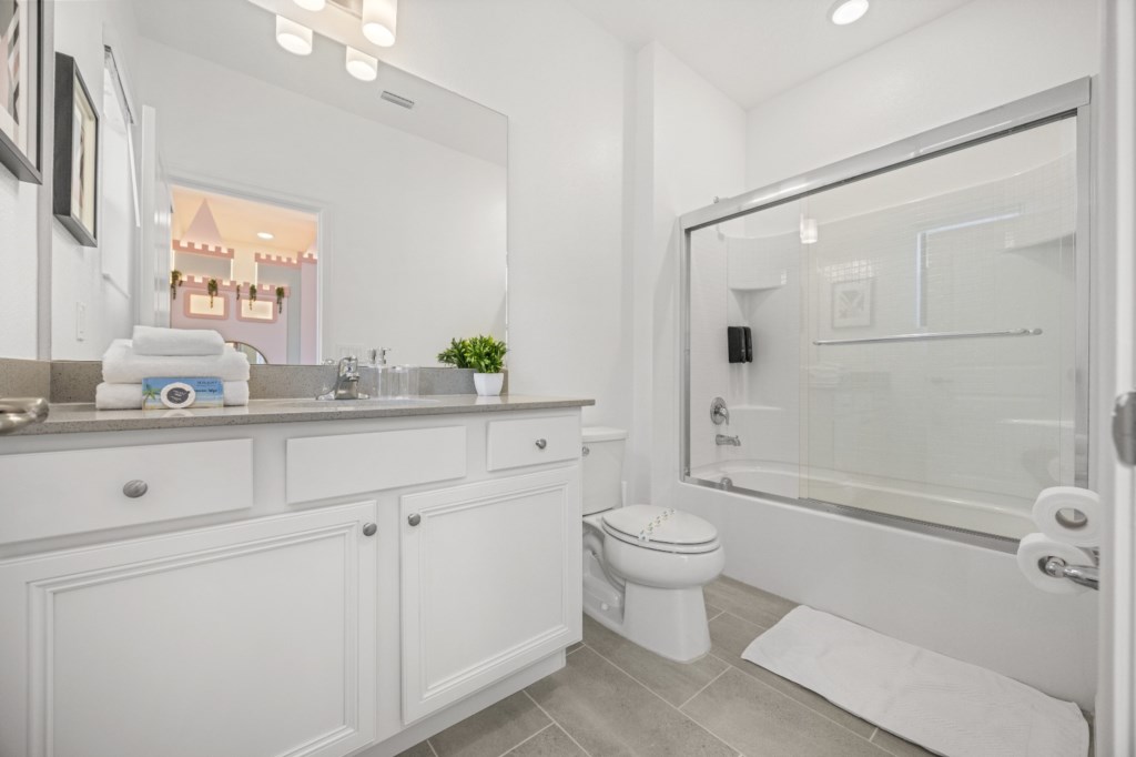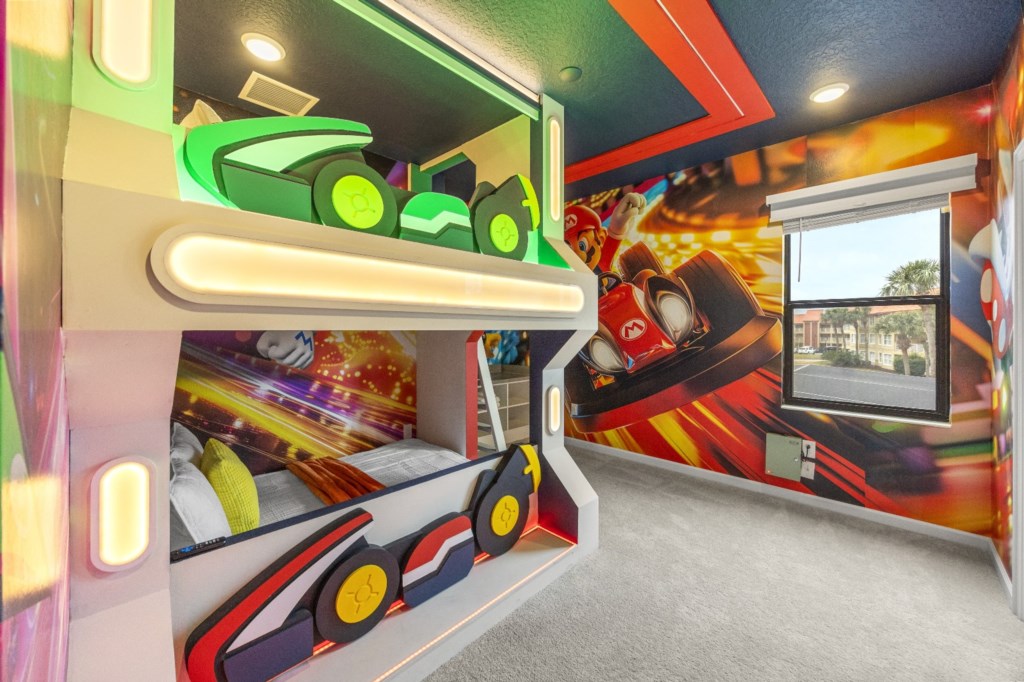 • Community: Paradiso Grande • 12 Bedrooms/ 11.5 Bathrooms/ Sleeps 32 • Disney (10 miles) SeaWorld (1.5 miles) ICON PARK (4 miles) • Convention Center (3 miles) Universal Studios (7 miles) • Location: High Seas Dr, Orlando FL 32821 DETAILS • 4,776 sqft • Central AC • Washer & Dryer • TV In Every Bedroom • Free Cable TV & WIFI • Fully Equipped Kitchen • Towels & Linens Provided • Stainless Steel Appliances • Washcloths Are Not Provided • Family Room with Flat Screen TV • Hair Dryers, Iron & Ironing Board • Outdoor Patio Furniture With Sun Loungers • Pack 'n play/ High Chair (Free Upon Request) • South Facing Private Screened-in Pool + Safety Pool Fence - BEDROOM SETUP FIRST FLOOR • Bedroom 1: 1 King Bed (Private Bathroom) • Bedroom 2: 1 King Bed (Private Bathroom) • Bedroom 3: 1 King Bed (Private Bathroom) • Bedroom 4: 1 King Bed (Private Bathroom) + Half Bathroom SECOND FLOOR • Bedroom 5: 1 King Bed (Private Bathroom) • Bedroom 6: 1 Bunk Bed (Full Over Full) (Enchanted Room) • Bedroom 7: 1 Bunk Bed (Full Over Full) (King Lion Room) + Full Bathroom In The Hallway • Bedroom 8: 1 Bunk Bed (Full Over Full) (Private Bathroom) (Mario Room) • Bedroom 9: 1 King Bed (Private Bathroom) • Bedroom 10: 1 Bunk Bed (Full Over Full) (Private Bathroom) (Princess Room) • Bedroom 11: 1 King Bed (Private Bathroom) • Bedroom 12: 1 King Bed (Private Bathroom) (Minnie Room) - USEFUL INFORMATION • CHECKING IN AND OUT - Check-in after 4:00 PM - Checkout before 10:00 AM • PARKING Parking is free. Driveway parking. Street parking is not permitted. There are overflow parking lots throughout the community and also behind the clubhouse . There is no vehicle limit. Commercial vehicles, RV's, trailers, buses, golf carts or boats are not allowed at Paradiso Grande.e. • THIS HOME IS SELF-CATERING We do provide a small welcome kit to get you started. Please stop by the nearest supermarket to gather any additional items you may need for the duration of your stay. • POOL HEAT - OPTIONAL 1-Cost: $75 per day. 2-Minimum: 2 consecutive days. 3-Temperature will not exceed 95F. 4-Must be requested 48h in advance. 5-Attached spa is NOT a hot tub. It can only be heated if the entire pool is heated. Both have the same temperature. Our pool heater pumps have a safety system that prevents overheating of the element when the pump is working overtime in cold weather conditions. This way causes a temporary shut off of services automatically until the pump can regain its functionality efficiently. This is optional and may not be available at times. • BBQ RENTAL - OPTIONAL - Cost: $75 All Stay • TRASH DISPOSAL There is valet trash bin at the side of the home. All trash needs to be bagged in plastic trash bag. Trash is picked up every morning shortly after 9AM. No trash can sit outside overnight. If you want to dispose it, there is a dumpster in the parking lot behind the clubhouse. • HOUSEKEEPING There is no daily housekeeping service provided in the rental rate. Before check-in, the unit will be thoroughly cleaned and inspected by a professional cleaning company. Clean sheets and towels will be available in the unit. Mid-stay cleaning services during your stay can be requested for an additional fee. • ONLINE PURCHASE If the online seller uses USPS, it will not get delivered as the Post Office does not recognize vacation homes as regular addresses and the package will be returned back to the sender. Only UPS, DHL and FEDEX delivers them. In some resorts the packages are delivered to the clubhouse. Fees may apply. Some resorts may not accept them. Keep in mind we are not responsible for unexpected issues with your online purchases. If you have any questions, please contact us. PARADISO GRANDE AMENITIES • Cafe • Fitness Center • Sundries Stand • Gated Community • Game & Activities Room • Lobby with Furniture and TV • Electric Car Charging Stations • Resort Pool & Lazy River With Waterfall PLEASE NOTE: Additional charges apply when the owner has to fix something or pay for additional cleaning if not complied.