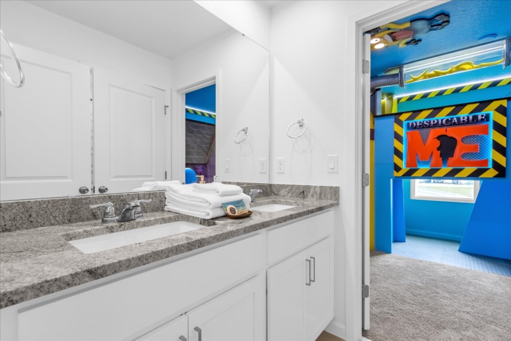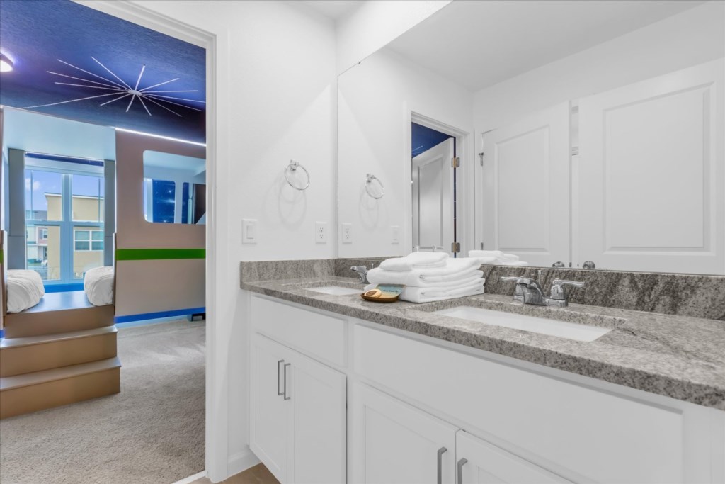 • Community: Solara Resort • 9 Bedrooms/ 6.5 Bathrooms/ Sleeps 24 • Disney World® (7.2 miles) SeaWorld (16.6 miles) • Convention Center (10.9 miles) ICON Park (19.6 miles) • Universal Studios (20.3 miles) Epic Universe (19.7 miles) • Location: Salty Winds Way, Kissimmee FL 34747 DETAILS • Central AC • Washer & Dryer • Gated Community • Free Cable TV & WIFI • TV In Every Bedroom • Fully Equipped Kitchen • Towels & Linens Provided • Stainless Steel Appliances • Washcloths Are Not Provided • Family Room with Flat Screen TV • Hair Dryers, Iron & Ironing Board • Private Door Code for Each Guest Stay • Outdoor Patio Furniture with Sun Loungers • Pack 'n play/ High Chair (Free Upon Request) • Private Screened-in Pool + Child Safety Pool Fence - BEDROOM SETUP FIRST FLOOR Bedroom 1: 1 King Bed (Private Bathroom) + Half Bathroom In Living Room SECOND FLOOR Bedroom 2: 1 King Bed Bedroom 3: 2 Full Beds + Shared Bathroom Between Bedrooms 2 & 3 Bedroom 4: 1 King Bed + Bathroom In Hallway Bedroom 5: 1 King Bed (Private Bathroom) Bedroom 6: 1 Bunk Bed (Full Over Full) Bedroom 7: 1 King Bed + Shared Bathroom Between Bedrooms 6 & 7 Bedroom 8: 1 King Bed Bedroom 9: 1 Bunk Bed (Full Over Full) + Shared Bathroom Between Bedrooms 8 & 9 - USEFUL INFORMATION • CHECKING IN AND OUT - Check-in after 4:00 PM - Checkout before 10:00 AM • PARKING Parking is free. Limit of 6 cars per house. Street Parking Is Not Pemitted. Please make sure cars are not parked on the grass or blocking the sidewalk. RVS, Trailers, Buses, Golf Carts or Boats are not allowed in the resort. • THIS HOME IS SELF-CATERING We do provide a small welcome kit to get you started. Please stop by the nearest supermarket to gather any additional items you may need for the duration of your stay. • POOL HEAT - OPTIONAL 1-Cost: $35 per day. 2-Minimum: 2 consecutive days. 3-Temperature will not exceed 95F. 4-Must be requested 48h in advance. 5-Attached spa is NOT a jacuzzi. It does not have jets. It can only be heated if the entire pool is heated. They both will have the same temperature. 6-Heater works through HEAT EXCHANGE and WILL NOT WORK in cold weather. If you still would like to heat the pool during cold conditions and it does not reach the desired temperature, we will not be able to offer a refund. Our pool heater pumps have a safety system that prevents overheating of the element when the pump is working overtime in cold weather conditions. This way causes a temporary shut off of services automatically until the pump can regain its functionality efficiently. This is optional and may not be available at times. • BBQ RENTAL - OPTIONAL - Cost: $75 All Stay • TRASH DISPOSAL Please place trash in the plastic bin daily to keep a clean home. • HOUSEKEEPING There is no daily housekeeping service provided in the rental rate. Before check-in, the unit will be thoroughly cleaned and inspected by a professional cleaning company. Clean sheets and towels will be available in the unit. Mid-stay cleaning services during your stay can be requested for an additional fee. • ONLINE PURCHASE If the online seller uses USPS, it will not get delivered as the Post Office does not recognize vacation homes as regular addresses and the package will be returned back to the sender. Only UPS, DHL and FEDEX delivers them. In some resorts the packages are delivered to the clubhouse. Fees may apply. Some resorts may not accept them. Keep in mind we are not responsible for unexpected issues with your online purchases. If you have any questions, please contact us. • SOLARA RESORT AMENITIES - AT SOLARA PHASE 1 Soccer Field Playground Workstation Sundry Shop Fitness Center Poolside Cabanas Gated Community Restaurant & Bars Heated Grand Pool Children's Splash Pad Coffee & Gelato Cafe Sand Volleyball Court Full-sized Basketball Court Tween/Teen Hangout Center FlowRider® Surf Simulator (*Fee Required) PLEASE NOTE: Additional charges apply when the owner has to fix something or pay for additional cleaning if not complied.