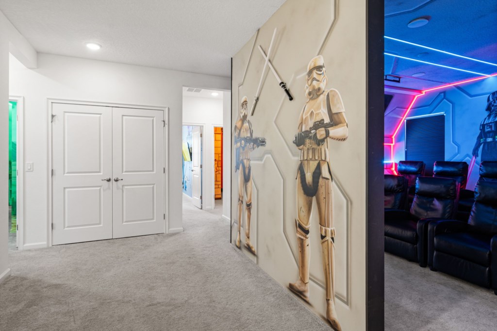 • Community: Paradiso Grande • 10 Bedrooms/ 9 Bathrooms/ Sleeps 24 • Disney (4.9 miles) SeaWorld (1.7 miles) ICON PARK (3.9 miles) • Convention Center (3.1 miles) Universal Studios (7.2 miles) • Location: High Seas Dr, Orlando FL 32821 DETAILS • 3,819 sqft • Central AC • Washer & Dryer • TV In Every Bedroom • Free Cable TV & WIFI • Fully Equipped Kitchen • Towels & Linens Provided • Washcloths Are Not Provided • Family Room with Flat Screen TV • Hair Dryers, Iron & Ironing Board • Outdoor Patio Furniture & Sun Loungers • Pack 'n play/ High Chair (Free Upon Request) • Private Screened-in Pool + Child Safety Pool Fence • Xbox Series S • PS5 - BEDROOM SETUP FIRST FLOOR Bedroom 1: 1 King Bed (Private Bathroom) Bedroom 2: 1 King Bed (Private Bathroom) Bedroom 3: 1 King Bed + Bathroom In Hallway SECOND FLOOR Bedroom 4: 1 King Bed (Private Bathroom) Bedroom 5: 1 King Bed (Private Bathroom) Bedroom 6: 1 King Bed (Private Bathroom) Bedroom 7: 1 Full Bed (Private Bathroom) ( Frozen Room) Bedroom 8: 1 Bunk Bed (Full Over Full) (Private Bathroom) (Jurassic Park Room) Bedroom 9: 1 Bunk Bed (Full Over Full) (Minions Room) Bedroom 10: 1 Full Bed (Harry Potter Room) + Shared Bathroom Between Bedrooms 9 & 10 - USEFUL INFORMATION • CHECKING IN AND OUT - Check-in after 4:00 PM - Checkout before 10:00 AM • PARKING Parking is free. Driveway parking. Street parking is not permitted. There are overflow parking lots throughout the community and also behind the clubhouse . There is no vehicle limit. Commercial vehicles, RV's, trailers, buses, golf carts or boats are not allowed at Paradiso Grande. • THIS HOME IS SELF-CATERING We do provide a small welcome kit to get you started. Please stop by the nearest supermarket to gather any additional items you may need for the duration of your stay. • POOL HEAT - OPTIONAL 1-Cost: $75 per day. 2-Minimum: 2 consecutive days. 3-Temperature will not exceed 95F. 4-Must be requested 48h in advance. 5-Attached spa is NOT a hot tub. It can only be heated if the entire pool is heated. Both have the same temperature. Our pool heater pumps have a safety system that prevents overheating of the element when the pump is working overtime in cold weather conditions. This way causes a temporary shut off of services automatically until the pump can regain its functionality efficiently. This is optional and may not be available at times. • BBQ RENTAL - OPTIONAL - Cost: $75 All Stay • TRASH DISPOSAL There is valet trash bin at the side of the home. All trash needs to be bagged in plastic trash bag. Trash is picked up every morning shortly after 9AM. No trash can sit outside overnight. If you want to dispose it, there is a dumpster in the parking lot behind the clubhouse. • HOUSEKEEPING There is no daily housekeeping service provided in the rental rate. Before check-in, the unit will be thoroughly cleaned and inspected by a professional cleaning company. Clean sheets and towels will be available in the unit. Mid-stay cleaning services during your stay can be requested for an additional fee. • ONLINE PURCHASE If the online seller uses USPS, it will not get delivered as the Post Office does not recognize vacation homes as regular addresses and the package will be returned back to the sender. Only UPS, DHL and FEDEX delivers them. In some resorts the packages are delivered to the clubhouse. Fees may apply. Some resorts may not accept them. Keep in mind we are not responsible for unexpected issues with your online purchases. If you have any questions, please contact us. PARADISO GRANDE AMENITIES • Cafe • Fitness Center • Sundries Stand • Gated Community • Game & Activities Room • Lobby with Furniture and TV • Electric Car Charging Stations • Resort Pool & Lazy River With Waterfall PLEASE NOTE: Additional charges apply when the owner has to fix something or pay for additional cleaning if not complied.