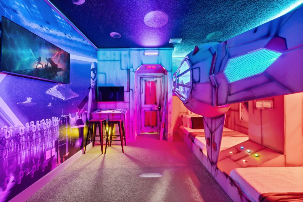 • Community: Sonoma Resort • 15 Bedrooms/ 16.5 Bathrooms/ Sleeps 42 • Disney (8.5 miles) SeaWorld (10.0 miles) Legoland (36.6 miles) • Convention Center (11.9 miles) Universal Studios (15.7 miles) • Location: Sonoma Blvd, Kissimmee FL 34746 DETAILS • 6,374 sqft • Central AC • Washer & Dryer • TV In Every Bedroom • Free Cable TV & WIFI • Fully Equipped Kitchen • Towels & Linens Provided • Washcloths Are Not Provided • Family Room with Flat Screen TV • Hair Dryers, Iron & Ironing Board • Private Door Code for Each Guest Stay • Outdoor Patio Furniture with Sun Loungers • Pack 'n play/ High Chair (Free Upon Request) • Private Screened-in Pool + Safety Pool Fence - BEDROOM SETUP FIRST FLOOR Bedroom 1: 1 King Bed (Private Bathroom) Bedroom 2: 1 King Bed (Private Bathroom) Bedroom 3: 1 King Bed (Private Bathroom) Bedroom 4: 1 King Bed (Private Bathroom) Bedroom 5: 1 King Bed (Private Bathroom) + Bathroom Shared With Pool Area SECOND FLOOR Bedroom 6: 1 King Bed (Private Bathroom) Bedroom 7: 1 Bunk Bed (Full Over Full) (Private Bathroom) Bedroom 8: 1 King Bed (Private Bathroom) Bedroom 9: 2 Bunk Beds (Full Over Full) (Private Bathroom) Bedroom 10: 1 King Bed (Private Bathroom) Bedroom 11: 1 King Bed (Private Bathroom) + Half Bathroom Bedroom 12: 1 King Bed (Private Bathroom) Bedroom 13: 1 Bunk Bed (Full Over Full) (Private Bathroom) Bedroom 14: 1 King Bed (Private Bathroom) Bedroom 15: 1 Bunk Bed (Full Over Full) (Private Bathroom) - USEFUL INFORMATION • PARKING Parking is free. There is parking for 6 vehicles on the driveway. There are parking spaces in front of the house. Please obey the signs Please make sure cars are also not parked on the grass or in a way that obstructs the sidewalk. Cars that violate this will be towed at the guest's expense. Commercial Vehicles, RVS, Trailers, Buses, Golf Carts or Boats are not allowed at Sonoma Resort. • THIS HOME IS SELF-CATERING We do provide a small welcome kit to get you started. Please stop by the nearest supermarket to gather any additional items you may need for the duration of your stay. • POOL HEAT - OPTIONAL 1-Cost: $75 per day. 2-Minimum: 2 consecutive days. 3-Temperature will not exceed 95F. 4-Must be requested 48h in advance. 5-Attached spa is NOT a hot tub. It can only be heated if the entire pool is heated. They both will have the same temperature. It does not have jets. 6-Heater works through HEAT EXCHANGE and WILL NOT WORK in cold weather. If you still would like to heat the pool during cold conditions and it does not reach the desired temperature, we will not be able to offer a refund. The pool heater pumps have a safety system that prevents overheating of the element when the pump is working overtime in cold weather. It automatically shuts off briefly until the pump can regain its functionality efficiently. Keep in mind this service is optional and may not be available at times. • BBQ RENTAL - OPTIONAL - Cost: $75 All Stay • TRASH DISPOSAL Please place trash in the plastic bench daily to keep a clean home. • HOUSEKEEPING There is no daily housekeeping service provided in the rental rate. Before check-in, the unit will be thoroughly cleaned and inspected by a professional cleaning company. Clean sheets and towels will be available in the unit. Mid-stay cleaning services during your stay can be requested for an additional fee. • ONLINE PURCHASE If the online seller uses USPS, it will not get delivered as the Post Office does not recognize vacation homes as regular addresses and the package will be returned back to the sender. Only UPS, DHL and FEDEX delivers them. In some resorts the packages are delivered to the clubhouse. Fees may apply. Some resorts may not accept them. Keep in mind we are not responsible for unexpected issues with your online purchases. If you have any questions, please contact us. SONOMA RESORT AMENITIES • Hot Tub • Sports Courts • Fitness Center • Kids Play Area • Poolside Cabanas • Gated Community • Arcade Game Room • Community Clubhouse • Walking/Jogging Trail • Resort-Style Zero-Entry Pool PLEASE NOTE: Additional charges apply when the owner has to fix something or pay for additional cleaning if not complied.