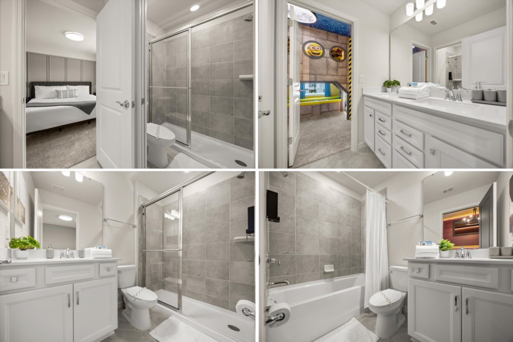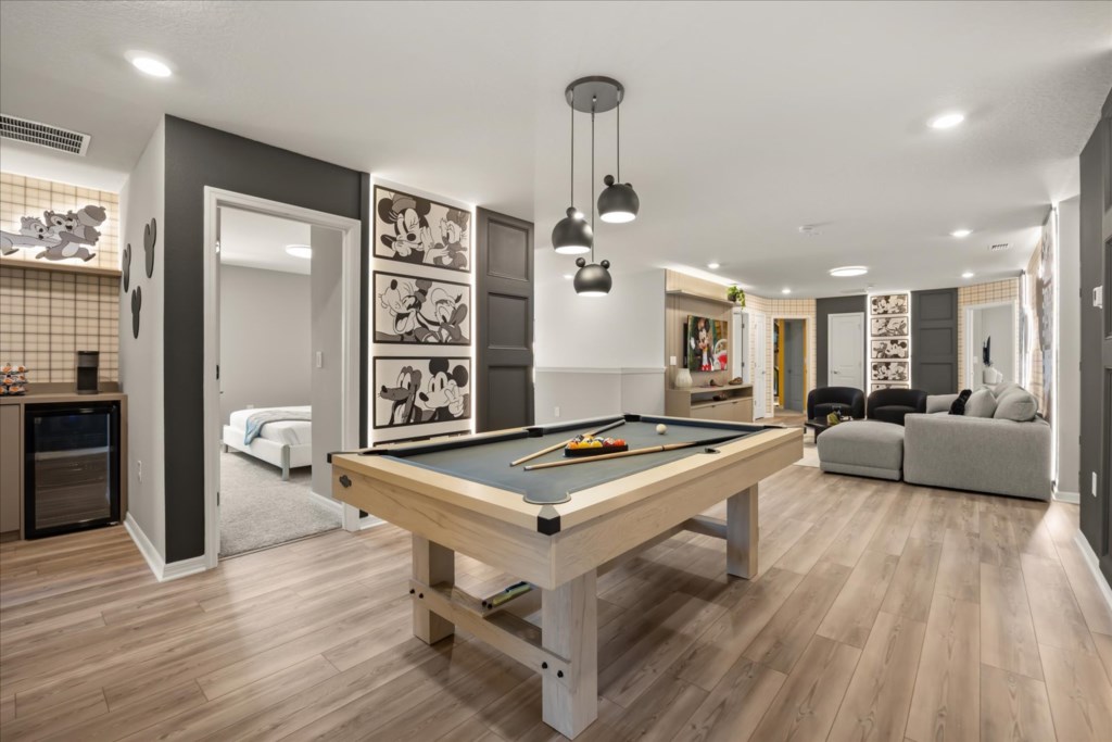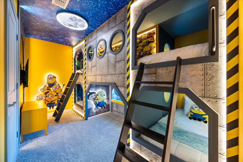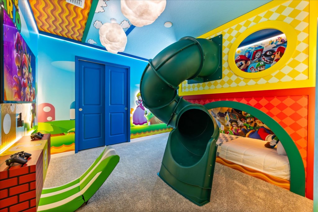 • Community: Windsor Cay • 10 Bedrooms/ 8 Bathrooms/ Sleeps 24 • Disney World® (8.3 miles) SeaWorld (18.5 miles) • Convention Center (19.6 miles) ICON Park (21.3 miles) • Universal Studios (22.3 miles) Epic Universe (21.3 miles) • Location: Cape Coral Loop, Clermont FL 34714 DETAILS • 4,382 sqft • Central AC • Cable TV & Wi-Fi • Washer & Dryer • TV In Every Bedroom • Fully Equipped Kitchen • Towels & Linens Provided • Washcloths Are Not Provided • Family Room with Flat Screen TV • Hair Dryers, Iron & Ironing Board • Private Door Code for Each Guest Stay • Outdoor Patio Furniture with Sun Loungers • Pack 'n play/ High Chair (Free Upon Request) • Private Screened-in Pool + Child Safety Pool Fence - BEDROOM SETUP FIRST FLOOR Bedroom 1: 1 King Bed + Bathroom In Hallway Bedroom 2: 1 King Bed + Attached Bathroom Shared With Pool SECOND FLOOR Bedroom 3: 1 King Bed Bedroom 4: 2 Bunk Beds (Twin Over Twin) (Minions room) + Shared Bathroom Between Bedrooms 3 & 4 Bedroom 5: 1 King Bed (Private Bathroom) Bedroom 6: 1 Bunk Bed (Twin Over Twin) (Mario Room) Bedroom 7: 1 King Bed + Shared Bathroom Between Bedrooms 6 & 7 Bedroom 8: 1 Bunk Bed (Full Over Full) (Private Bathroom) (HP Room) Bedroom 9: 1 King Bed Bedroom 10: 1 Queen Bed (Private Bathroom) - USEFUL INFORMATION • CHECKING IN AND OUT - Check-in after 4:00 PM - Checkout before 10:00 AM • WINDSOR CAY PARKING - Parking is free. - 2 vehicles per unit in the driveway. - Garage converted to Movie Theater. - No parking on the street. (Since it is a new community, they will not enforce this rule until the signs are placed.) - No parking on grass or blocking the sidewalks. - Registered guests cannot share their parking passes with unregistered visitors. - Commercial Vehicles, RV's, Trailers, Buses, Golf Carts or Boats are not allowed at Windsor Cay. - Vehicle in violation of parking policy will be towed at the guest's expense. • THIS HOME IS SELF-CATERING We do provide a small welcome kit to get you started. Please stop by the nearest supermarket to gather any additional items you may need for the duration of your stay. • POOL HEAT - OPTIONAL 1-Cost: $35 per day. 2-Minimum: 2 consecutive days. 3-Temperature will not exceed 95F. 4-Must be requested 48h in advance. 5-Attached spa is NOT a hot tub. It can only be heated if the entire pool is heated. They both will have the same temperature. It does not have jets. 6-Heater works through HEAT EXCHANGE and WILL NOT WORK in cold weather. If you still would like to heat the pool during cold conditions and it does not reach the desired temperature, we will not be able to offer a refund. The pool heater pumps have a safety system that prevents overheating of the element when the pump is working overtime in cold weather. It automatically shuts off briefly until the pump can regain its functionality efficiently. Keep in mind this service is optional and may not be available at times. • BBQ RENTAL - OPTIONAL - Cost: $75 All Stay • TRASH DISPOSAL Please place trash in the plastic bin daily to keep a clean home. • HOUSEKEEPING There is no daily housekeeping service provided in the rental rate. Before check-in, the unit will be thoroughly cleaned and inspected by a professional cleaning company. Clean sheets and towels will be available in the unit. Mid-stay cleaning services during your stay can be requested for an additional fee. • ONLINE PURCHASE If the online seller uses USPS, it will not get delivered as the Post Office does not recognize vacation homes as regular addresses and the package will be returned back to the sender. Only UPS, DHL and FEDEX delivers them. In some resorts the packages are delivered to the clubhouse. Fees may apply. Some resorts may not accept them. Keep in mind we are not responsible for unexpected issues with your online purchases. If you have any questions, please contact us. • REEF CLUB - Windsor Cay Resort - Arcade - Lazy River - Fitness Center - Family Cabanas - 9-Hole Mini Golf - Dual Water Slides - Gated Community - Volleyball & Cornhole - Children's Splash Pad - Outdoor Covered Bar - Blue Lagoon Bar & Grille - Resort-Style Zero-Entry Pool Resort registration needed. PLEASE NOTE: Additional charges apply when the owner has to fix something or pay for additional cleaning if not complied.