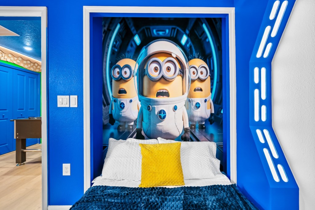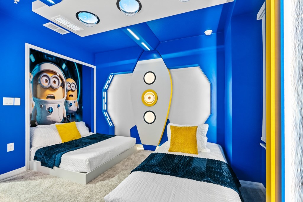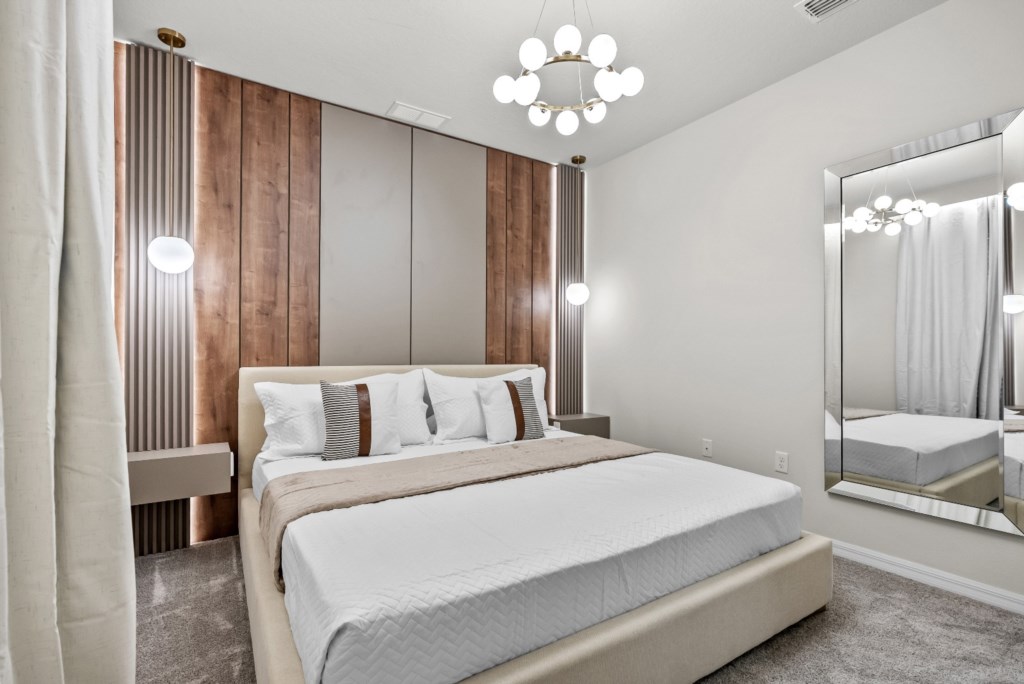 • Community: Windsor Cay • 5 Bedrooms/ 4 Bathrooms/ Sleeps 13 • Disney (8.2 miles) SeaWorld (18.5 miles) ICON Park (21.0 miles) • Universal Studios (22.3 miles) Epic Universe (21.6 miles) • Convention Center (19.5 miles) Legoland (31.0 miles) • Location: Palm Frond Avenue, Clermont, FL 34714 DETAILS • 2,490 sqft • Central AC • Washer & Dryer • TV In Every Bedroom • Free Cable TV & WIFI • Fully Equipped Kitchen • Towels & Linens Provided • Washcloths Are Not Provided • Family Room with Flat Screen TV • Hair Dryers, Iron & Ironing Board • Private Door Code for Each Guest Stay • Outdoor Patio Furniture with Sun Loungers • Pack 'n play/ High Chair (Free Upon Request) • Private Screened-in Pool + Child Safety Pool Fence - BEDROOM SETUP FIRST FLOOR Bedroom 1: 1 King Bed + Bathroom In Hallway SECOND FLOOR Bedroom 2: 1 Full Bed + 1 Twin Bed (Minion Room) Bedroom 3: 1 Bunk Bed (Full Over Full) (Mickey Room) + Bathroom In Hallway Bedroom 4: 1 King Bed (Private Bathroom) Bedroom 5: 1 Queen Bed (Private Bathroom) - USEFUL INFORMATION • WINDSOR CAY PARKING - Parking is free. - 2 vehicles per unit in the driveway. - No parking on the street. (Since it is a new community, they will not enforce this rule until the signs are placed.) - No parking on grass or blocking the sidewalks. - Registered guests cannot share their parking passes with unregistered visitors. - Commercial Vehicles, RV's, Trailers, Buses, Golf Carts or Boats are not allowed at Windsor Cay. - Vehicle in violation of parking policy will be towed at the guest's expense. • POOL HEAT - OPTIONAL 1-Cost: $35 per day. 2-Minimum: 2 consecutive days. 3-Temperature will not exceed 95F. 4-Must be requested 48h in advance. 5-Attached spa is NOT a jacuzzi. It does not have jets. It can only be heated if the entire pool is heated. They both will have the same temperature. 6-Heater works through HEAT EXCHANGE and WILL NOT WORK in cold weather. If you still would like to heat the pool during cold conditions and it does not reach the desired temperature, we will not be able to offer a refund. Our pool heater pumps have a safety system that prevents overheating of the element when the pump is working overtime in cold weather conditions. This way causes a temporary shut off of services automatically until the pump can regain its functionality efficiently. This is optional and may not be available at times. • BBQ RENTAL - OPTIONAL - Cost: $75 All Stay • THIS HOME IS SELF-CATERING We do provide a small welcome kit to get you started. You can stop by the nearest supermarket to gather any additional items you may need for the duration of your stay. Please bring your own washcloths as we only provide towels. • TRASH DISPOSAL Please place trash in the plastic bin daily to keep a clean home. • HOUSEKEEPING There is no daily housekeeping service provided in the rental rate. Before check-in, the unit will be thoroughly cleaned and inspected by a professional cleaning company. Clean sheets and towels will be available in the unit. Mid-stay cleaning services during your stay can be requested for an additional fee. • ONLINE PURCHASE If the online seller uses USPS, it will not get delivered as the Post Office does not recognize vacation homes as regular addresses and the package will be returned back to the sender. Only UPS, DHL and FEDEX delivers them. In some resorts the packages are delivered to the clubhouse. Fees may apply. Some resorts may not accept them. Keep in mind we are not responsible for unexpected issues with your online purchases. If you have any questions, please contact us. • REEF CLUB - Windsor Cay Resort - Arcade - Lazy River - Fitness Center - Family Cabanas - 9-Hole Mini Golf - Dual Water Slides - Gated Community - Volleyball & Cornhole - Children's Splash Pad - Outdoor Covered Bar - Blue Lagoon Bar & Grille - Resort-Style Zero-Entry Pool Resort registration needed. PLEASE NOTE: Additional charges apply when the owner has to fix something or pay for additional cleaning if not complied.