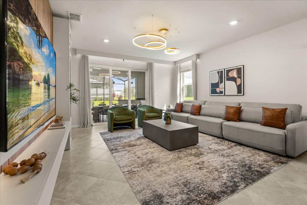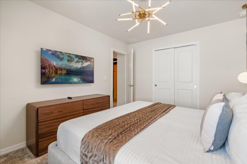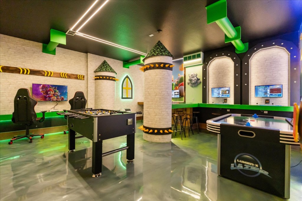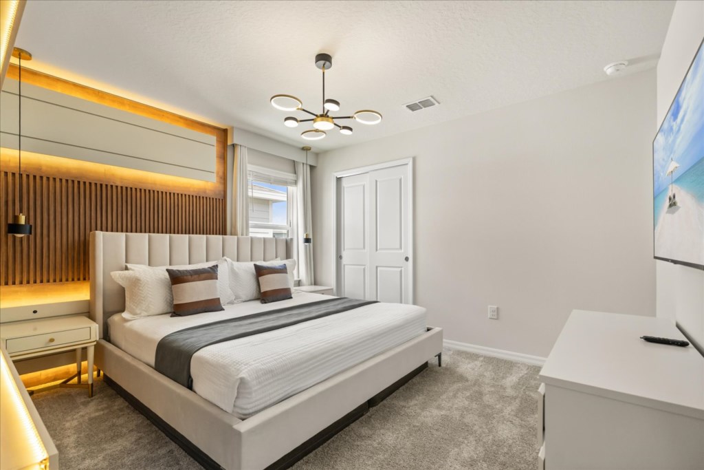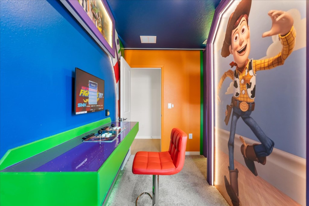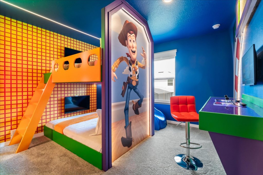 • Community: Windsor Cay • 7 Bedrooms/ 5.5 Bathrooms/ Sleeps 18 • Disney World® (8.3 miles) SeaWorld (18.5 miles) • Convention Center (19.6 miles) ICON Park (21.3 miles) • Universal Studios (22.3 miles) Epic Universe (21.3 miles) • Location: Cape Coral Loop, Clermont FL 34714 DETAILS • 3,286 sqft • Central AC • Cable TV & Wi-Fi • Washer & Dryer • Gated Community • TV In Every Bedroom • Fully Equipped Kitchen • Towels & Linens Provided • Washcloths Are Not Provided • Family Room with Flat Screen TV • Hair Dryers, Iron & Ironing Board • Private Door Code for Each Guest Stay • Outdoor Patio Furniture with Sun Loungers • Pack 'n play/ High Chair (Free Upon Request) • Private Screened-in Pool + Child Safety Pool Fence - BEDROOM SETUP FIRST FLOOR Bedroom 1: 1 King Bed (Attached Bathroom Shared With Pool) + Half Bathroom SECOND FLOOR Bedroom 2: 1 King Bed (Private Bathroom) Bedroom 3: 1 King Bed (Private Bathroom) Bedroom 4: 1 Queen Bed Bedroom 5: 1 King Bed + Shared Bathroom Between Bedrooms 4 & 5 Bedroom 6: 1 Bunk Bed (Full Over Full) (Toy Story Room) Bedroom 7: 1 Bunk Bed (Full Over Full) (Stitch Room) + Shared Bathroom Between Bedrooms 6 & 7 - USEFUL INFORMATION • CHECKING IN AND OUT - Check-in after 4:00 PM - Checkout before 10:00 AM • WINDSOR CAY PARKING - Parking is free. - Garage converted to Game Room - 2 vehicles per unit in the driveway. - No parking on the street. (Since it is a new community, they will not enforce this rule until the signs are placed.) - No parking on grass or blocking the sidewalks. - Registered guests cannot share their parking passes with unregistered visitors. - Commercial Vehicles, RV's, Trailers, Buses, Golf Carts or Boats are not allowed at Windsor Cay. - Vehicle in violation of parking policy will be towed at the guest's expense. • THIS HOME IS SELF-CATERING We do provide a small welcome kit to get you started. Please stop by the nearest supermarket to gather any additional items you may need for the duration of your stay. • POOL HEAT - OPTIONAL 1-Cost: $35 per day. 2-Minimum: 2 consecutive days. 3-Temperature will not exceed 95F. 4-Must be requested 48h in advance. 5-Attached spa is NOT a hot tub. It can only be heated if the entire pool is heated. They both will have the same temperature. It does not have jets. 6-Heater works through HEAT EXCHANGE and WILL NOT WORK in cold weather. If you still would like to heat the pool during cold conditions and it does not reach the desired temperature, we will not be able to offer a refund. The pool heater pumps have a safety system that prevents overheating of the element when the pump is working overtime in cold weather. It automatically shuts off briefly until the pump can regain its functionality efficiently. Keep in mind this service is optional and may not be available at times. • BBQ RENTAL - OPTIONAL - Cost: $75 All Stay • TRASH DISPOSAL Please place trash in the plastic bin daily to keep a clean home. • HOUSEKEEPING There is no daily housekeeping service provided in the rental rate. Before check-in, the unit will be thoroughly cleaned and inspected by a professional cleaning company. Clean sheets and towels will be available in the unit. Mid-stay cleaning services during your stay can be requested for an additional fee. • ONLINE PURCHASE If the online seller uses USPS, it will not get delivered as the Post Office does not recognize vacation homes as regular addresses and the package will be returned back to the sender. Only UPS, DHL and FEDEX delivers them. In some resorts the packages are delivered to the clubhouse. Fees may apply. Some resorts may not accept them. Keep in mind we are not responsible for unexpected issues with your online purchases. If you have any questions, please contact us. • REEF CLUB - Windsor Cay Resort - Arcade - Lazy River - Fitness Center - Family Cabanas - 9-Hole Mini Golf - Dual Water Slides - Gated Community - Volleyball & Cornhole - Children's Splash Pad - Outdoor Covered Bar - Blue Lagoon Bar & Grille - Resort-Style Zero-Entry Pool Resort registration needed. PLEASE NOTE: Additional charges apply when the owner has to fix something or pay for additional cleaning if not complied.