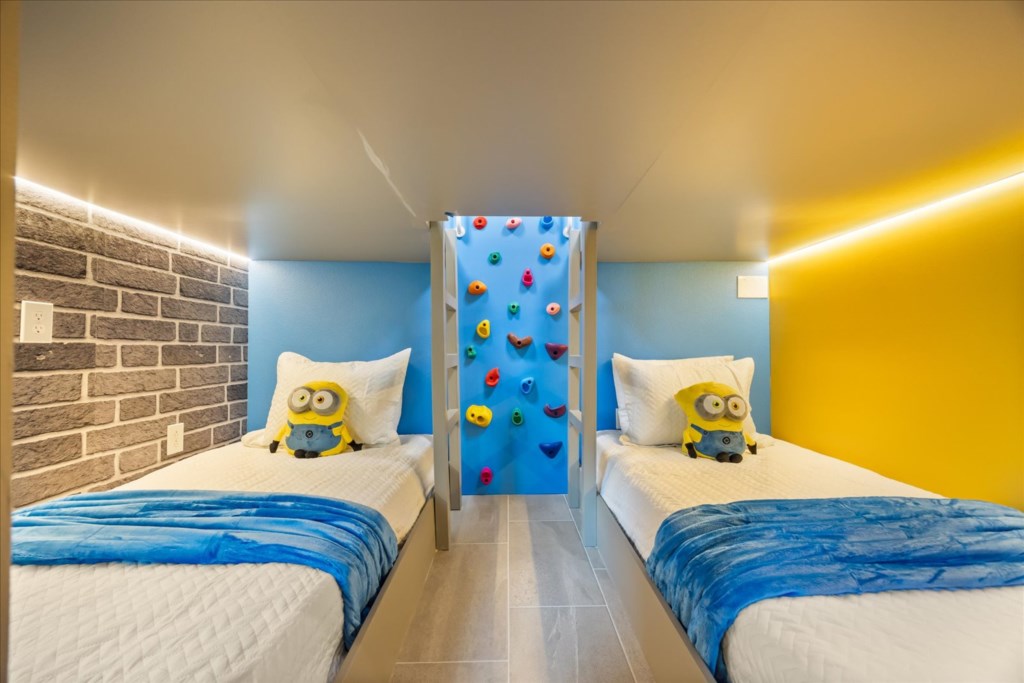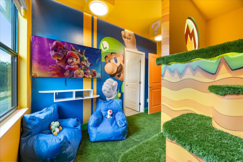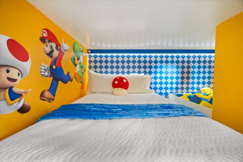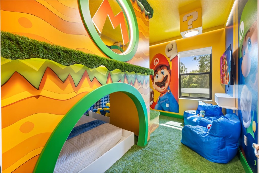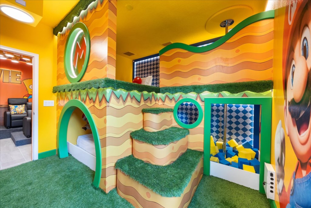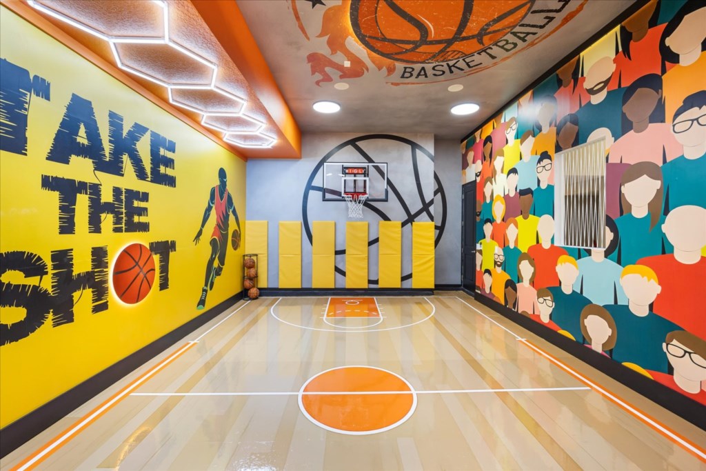 • Community: Sonoma Resort • 15 Bedrooms/ 16.5 Bathrooms/ Sleeps 39 • Disney (8.5 miles) SeaWorld (10.0 miles) Legoland (36.6 miles) • Convention Center (11.9 miles) Universal Studios (15.7 miles) • Location: Sonoma Blvd, Kissimmee FL 34746 DETAILS • 6,374 sqft • Central AC • Washer & Dryer • TV In Every Bedroom • Free Cable TV & WIFI • Fully Equipped Kitchen • Towels & Linens Provided • Washcloths Are Not Provided • Family Room with Flat Screen TV • Hair Dryers, Iron & Ironing Board • Private Door Code for Each Guest Stay • Outdoor Patio Furniture with Sun Loungers • Pack 'n play/ High Chair (Free Upon Request) • Private Screened-in Pool + Safety Pool Fence - BEDROOM SETUP FIRST FLOOR Bedroom 1: 1 King Bed (Private Bathroom) Bedroom 2: 1 King Bed (Private Bathroom) Bedroom 3: 1 King Bed (Private Bathroom) + Bathroom Shared With Pool Area Bedroom 4: 1 King Bed (Private Bathroom) Bedroom 5: 1 King Bed (Private Bathroom) SECOND FLOOR Bedroom 6 (Ocean): 1 Bunk Bed (Full Over Full) (Private Bathroom) Bedroom 7 (Frozen): 1 Bunk Bed (Twin Over Twin) (Private Bathroom) Bedroom 8 (Harry Potter): 2 Bunk Bed (Twin Over Full) (Private Bathroom) Bedroom 9 (Minions): 2 Bunk Bed (Twin Over Twin) (Private Bathroom) Bedroom 10 (Donkey Kong): 1 Full Bed (Private Bathroom) Bedroom 11 (Mario): 1 Bunk Bed (Twin Over Full) (Private Bathroom) + Half Bathroom Bedroom 12: 1 King Bed (Private Bathroom) Bedroom 13: 1 King Bed (Private Bathroom) Bedroom 14: 1 King Bed (Private Bathroom) Bedroom 15: 1 King Bed (Private Bathroom) - Garage converted to basketball court. Depth = 292" Width = 200" Height = 147" Rim = 92" - USEFUL INFORMATION • CHECKING IN AND OUT - Check-in after 4:00 PM - Checkout before 10:00 AM • SONOMA PARKING - Parking is free. - Driveway parking. - There are additional parking spaces near the lake, but not guaranteed as they are not assigned nor reserved. - No street parking. - No parking on the grass or blocking the sidewalk. - Vehicle in violation of parking policy will be towed at the guest's expense. - Commercial Vehicles, RV's, Trailers, Buses, Golf Carts or Boats are not allowed at Sonoma Resort. • THIS HOME IS SELF-CATERING We do provide a small welcome kit to get you started. Please stop by the nearest supermarket to gather any additional items you may need for the duration of your stay. • POOL HEAT - OPTIONAL 1-Cost: $75 per day. 2-Minimum: 2 consecutive days. 3-Temperature will not exceed 95F. 4-Must be requested 48h in advance. 5-Attached spa is NOT a hot tub. It can only be heated if the entire pool is heated. They both will have the same temperature. It does not have jets. 6-Heater works through HEAT EXCHANGE and WILL NOT WORK in cold weather. If you still would like to heat the pool during cold conditions and it does not reach the desired temperature, we will not be able to offer a refund. The pool heater pumps have a safety system that prevents overheating of the element when the pump is working overtime in cold weather. It automatically shuts off briefly until the pump can regain its functionality efficiently. Keep in mind this service is optional and may not be available at times. • BBQ RENTAL - OPTIONAL - Cost: $75 All Stay • TRASH DISPOSAL Please place trash in the plastic bench daily to keep a clean home. • HOUSEKEEPING There is no daily housekeeping service provided in the rental rate. Before check-in, the unit will be thoroughly cleaned and inspected by a professional cleaning company. Clean sheets and towels will be available in the unit. Mid-stay cleaning services during your stay can be requested for an additional fee. • ONLINE PURCHASE If the online seller uses USPS, it will not get delivered as the Post Office does not recognize vacation homes as regular addresses and the package will be returned back to the sender. Only UPS, DHL and FEDEX delivers them. In some resorts the packages are delivered to the clubhouse. Fees may apply. Some resorts may not accept them. Keep in mind we are not responsible for unexpected issues with your online purchases. If you have any questions, please contact us. SONOMA RESORT AMENITIES • Hot Tub • Clubhouse • Sports Courts • Fitness Center • Kids Play Area • Gated Community • Poolside Cabanas • Arcade Game Room • Walking/Jogging Trail • Resort-Style Zero-Entry Pool PLEASE NOTE: Additional charges apply when the owner has to fix something or pay for additional cleaning if not complied.