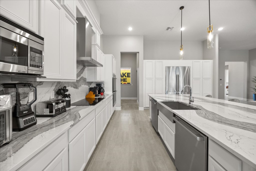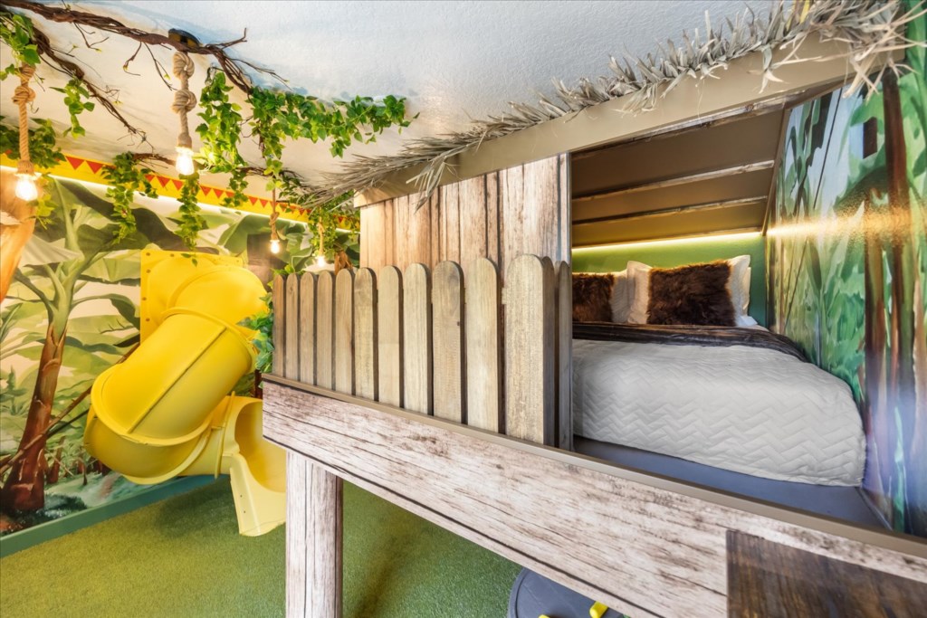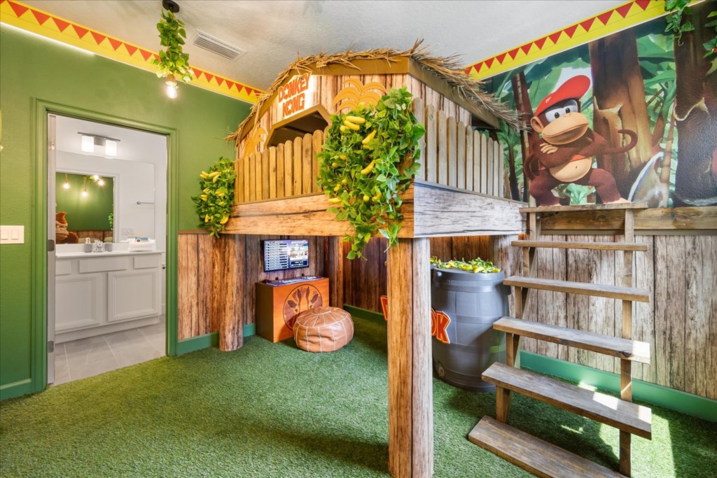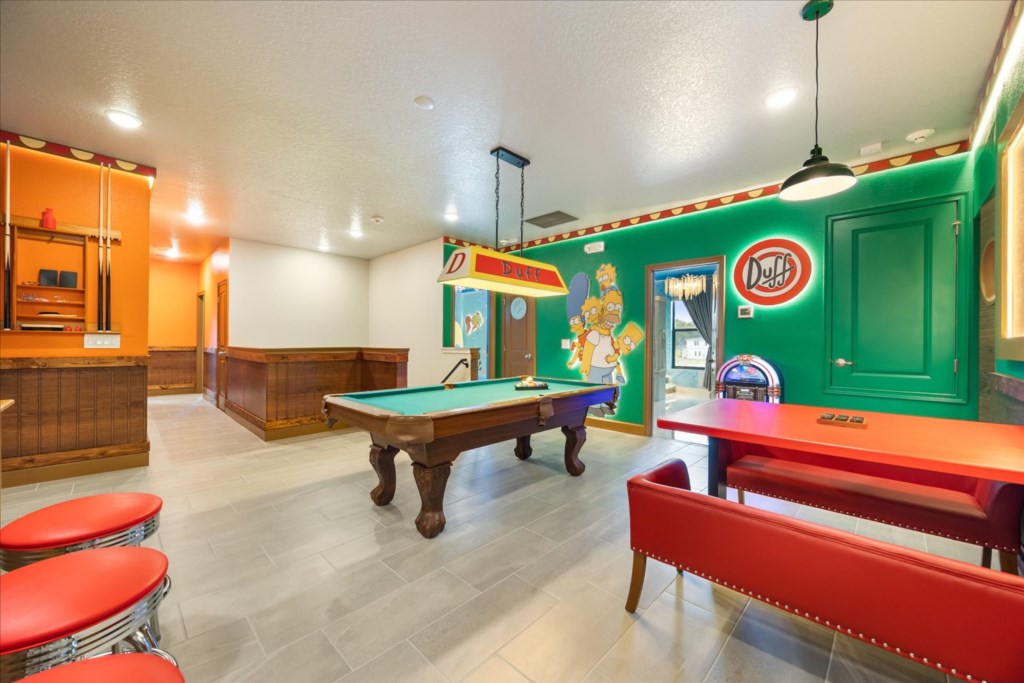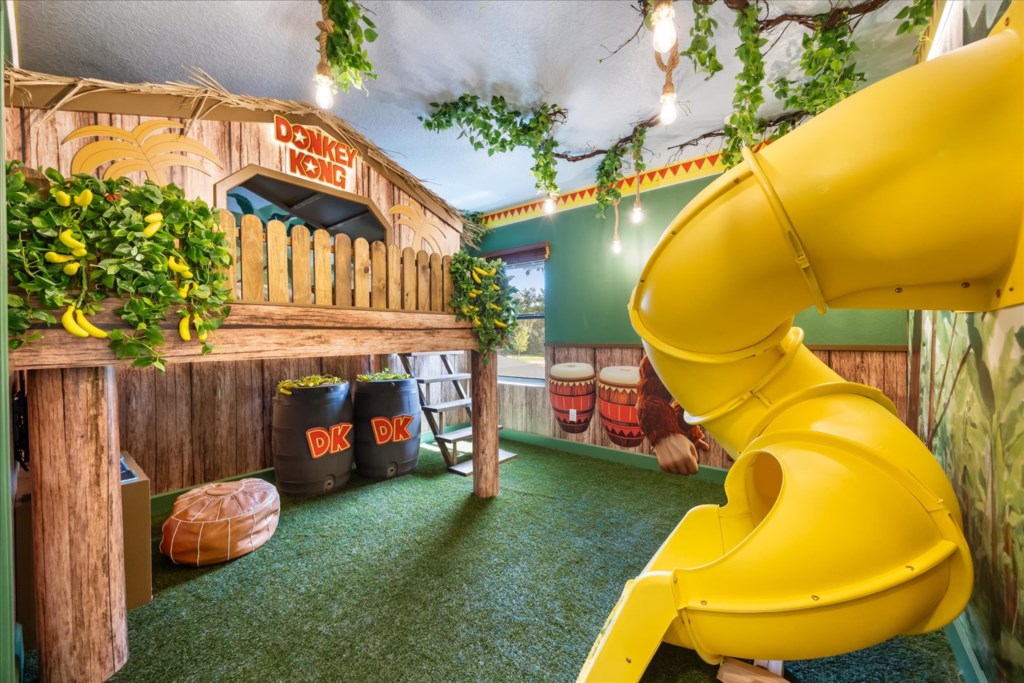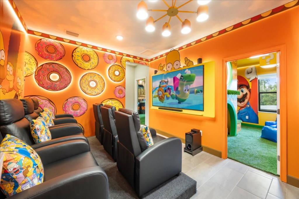 • Community: Sonoma Resort • 15 Bedrooms/ 16.5 Bathrooms/ Sleeps 39 • Disney (8.5 miles) SeaWorld (10.0 miles) Legoland (36.6 miles) • Convention Center (11.9 miles) Universal Studios (15.7 miles) • Location: Sonoma Blvd, Kissimmee FL 34746 DETAILS • 6,374 sqft • Central AC • Washer & Dryer • TV In Every Bedroom • Free Cable TV & WIFI • Fully Equipped Kitchen • Towels & Linens Provided • Washcloths Are Not Provided • Family Room with Flat Screen TV • Hair Dryers, Iron & Ironing Board • Private Door Code for Each Guest Stay • Outdoor Patio Furniture with Sun Loungers • Pack 'n play/ High Chair (Free Upon Request) • Private Screened-in Pool + Safety Pool Fence - BEDROOM SETUP FIRST FLOOR Bedroom 1: 1 King Bed (Private Bathroom) Bedroom 2: 1 King Bed (Private Bathroom) Bedroom 3: 1 King Bed (Private Bathroom) + Bathroom Shared With Pool Area Bedroom 4: 1 King Bed (Private Bathroom) Bedroom 5: 1 King Bed (Private Bathroom) SECOND FLOOR Bedroom 6 (Ocean): 1 Bunk Bed (Full Over Full) (Private Bathroom) Bedroom 7 (Frozen): 1 Bunk Bed (Twin Over Twin) (Private Bathroom) Bedroom 8 (Harry Potter): 2 Bunk Bed (Twin Over Full) (Private Bathroom) Bedroom 9 (Minions): 2 Bunk Bed (Twin Over Twin) (Private Bathroom) Bedroom 10 (Donkey Kong): 1 Full Bed (Private Bathroom) Bedroom 11 (Mario): 1 Bunk Bed (Twin Over Full) (Private Bathroom) + Half Bathroom Bedroom 12: 1 King Bed (Private Bathroom) Bedroom 13: 1 King Bed (Private Bathroom) Bedroom 14: 1 King Bed (Private Bathroom) Bedroom 15: 1 King Bed (Private Bathroom) - Garage converted to basketball court. Depth = 292" Width = 200" Height = 147" Rim = 92" - USEFUL INFORMATION • CHECKING IN AND OUT - Check-in after 4:00 PM - Checkout before 10:00 AM • SONOMA PARKING - Parking is free. - Driveway parking. - There are additional parking spaces near the lake, but not guaranteed as they are not assigned nor reserved. - No street parking. - No parking on the grass or blocking the sidewalk. - Vehicle in violation of parking policy will be towed at the guest's expense. - Commercial Vehicles, RV's, Trailers, Buses, Golf Carts or Boats are not allowed at Sonoma Resort. • THIS HOME IS SELF-CATERING We do provide a small welcome kit to get you started. Please stop by the nearest supermarket to gather any additional items you may need for the duration of your stay. • POOL HEAT - OPTIONAL 1-Cost: $75 per day. 2-Minimum: 2 consecutive days. 3-Temperature will not exceed 95F. 4-Must be requested 48h in advance. 5-Attached spa is NOT a hot tub. It can only be heated if the entire pool is heated. They both will have the same temperature. It does not have jets. 6-Heater works through HEAT EXCHANGE and WILL NOT WORK in cold weather. If you still would like to heat the pool during cold conditions and it does not reach the desired temperature, we will not be able to offer a refund. The pool heater pumps have a safety system that prevents overheating of the element when the pump is working overtime in cold weather. It automatically shuts off briefly until the pump can regain its functionality efficiently. Keep in mind this service is optional and may not be available at times. • BBQ RENTAL - OPTIONAL - Cost: $75 All Stay • TRASH DISPOSAL Please place trash in the plastic bench daily to keep a clean home. • HOUSEKEEPING There is no daily housekeeping service provided in the rental rate. Before check-in, the unit will be thoroughly cleaned and inspected by a professional cleaning company. Clean sheets and towels will be available in the unit. Mid-stay cleaning services during your stay can be requested for an additional fee. • ONLINE PURCHASE If the online seller uses USPS, it will not get delivered as the Post Office does not recognize vacation homes as regular addresses and the package will be returned back to the sender. Only UPS, DHL and FEDEX delivers them. In some resorts the packages are delivered to the clubhouse. Fees may apply. Some resorts may not accept them. Keep in mind we are not responsible for unexpected issues with your online purchases. If you have any questions, please contact us. SONOMA RESORT AMENITIES • Hot Tub • Clubhouse • Sports Courts • Fitness Center • Kids Play Area • Gated Community • Poolside Cabanas • Arcade Game Room • Walking/Jogging Trail • Resort-Style Zero-Entry Pool PLEASE NOTE: Additional charges apply when the owner has to fix something or pay for additional cleaning if not complied.