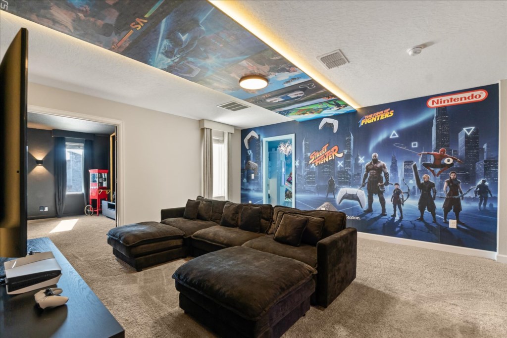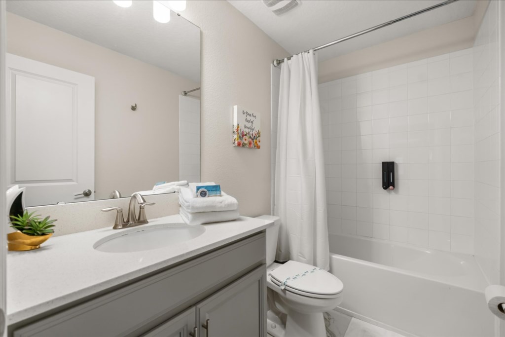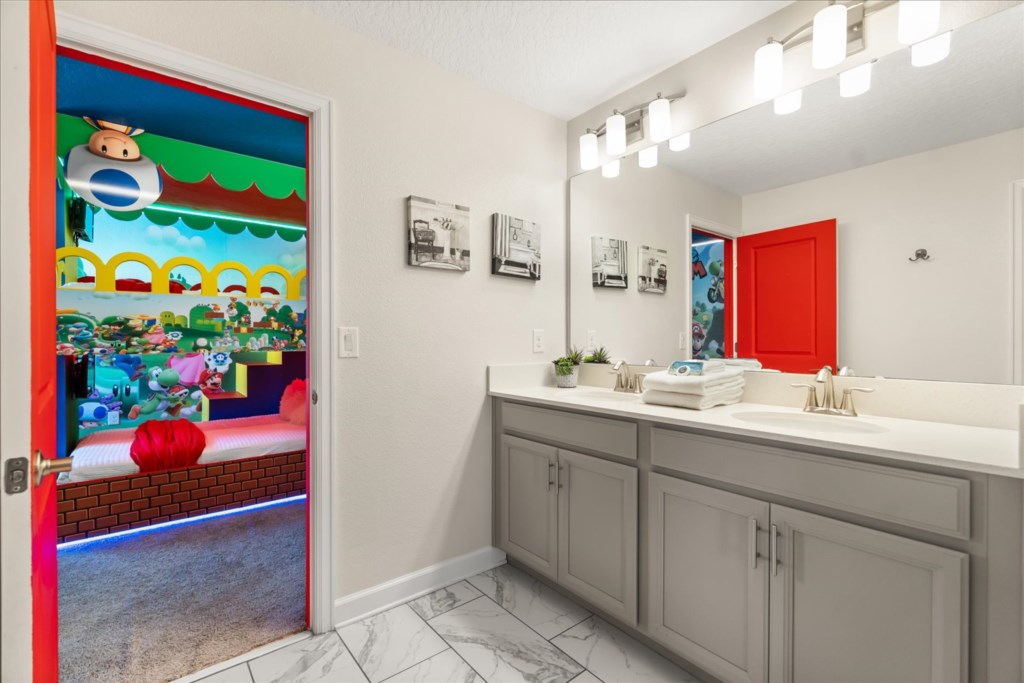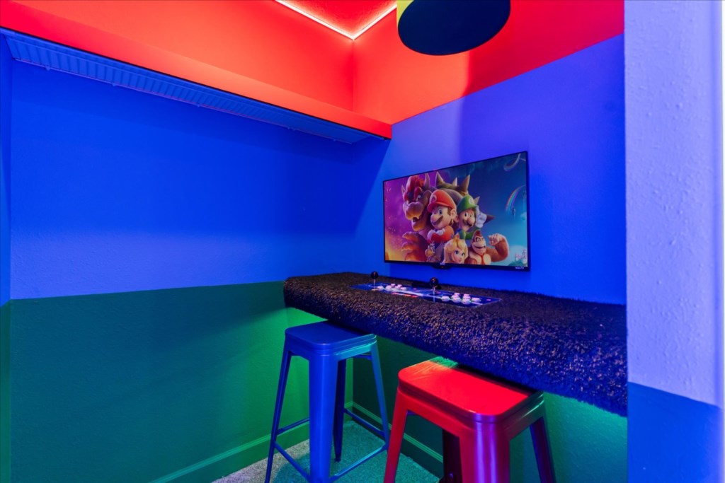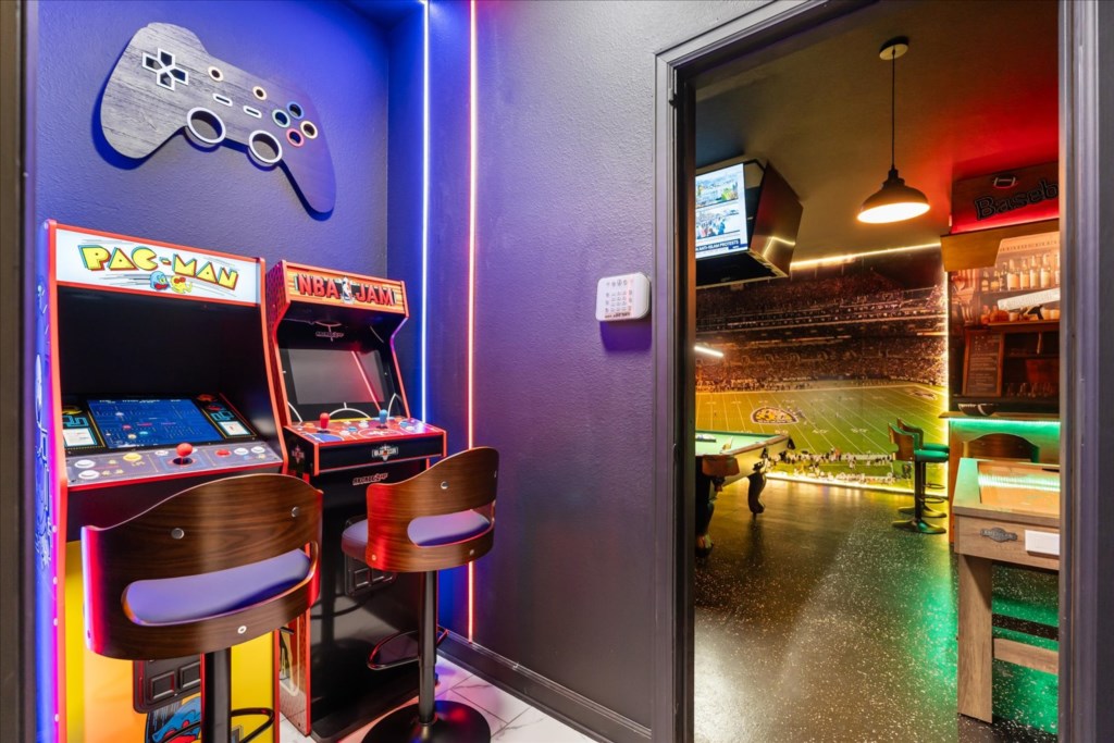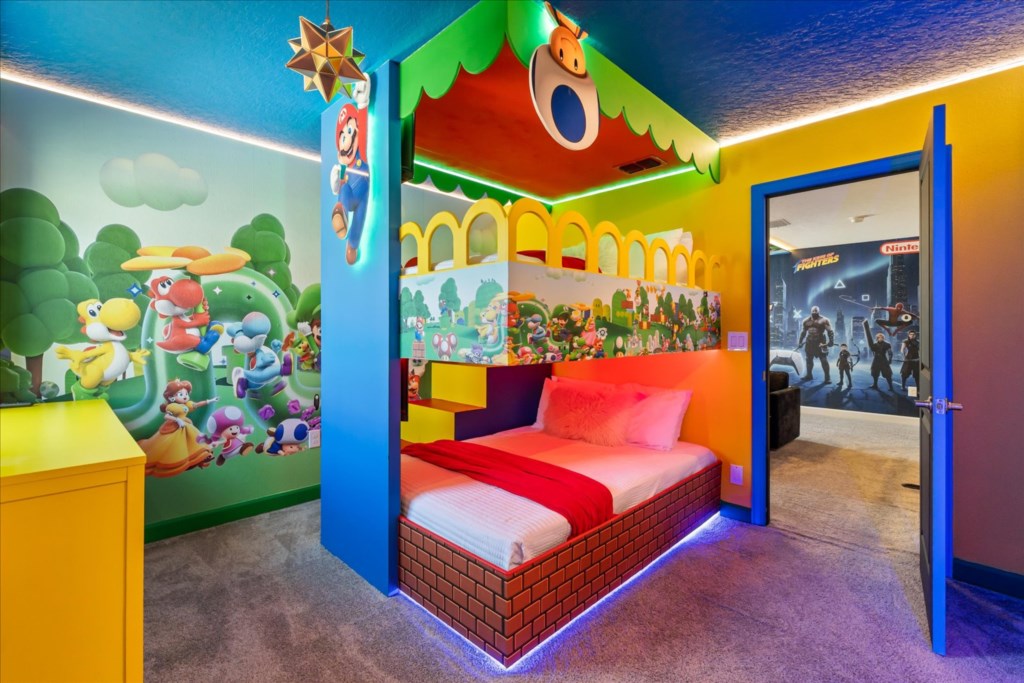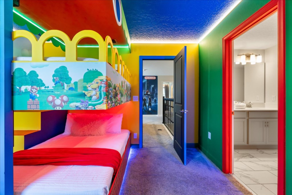 • Community: Champions Gate • 8 Bedrooms/ 5 Bathrooms/ Sleeps 22 • Disney World® (10.2 miles) SeaWorld (18.1 miles) • Convention Center (13.6 miles) ICON Park (20.8 miles) • Universal Studios (21.9 miles) Epic Universe (20.8 miles) • Location: Ocean Course Avenue, Champions Gate, FL 33896 DETAILS • Central AC • Washer & Dryer • Free Cable TV & WIFI • Fully Equipped Kitchen • Towels & Linens Provided • Washcloths Are Not Provided • Family Room with Flat Screen TV • Hair Dryers, Iron & Ironing Board • Private Door Code for Each Guest Stay • Outdoor Patio Furniture with Sun Loungers • Pack 'n play/ High Chair (Free Upon Request) • Private Screened-in Pool + Child Safety Pool Fence - BEDROOM SETUP FIRST FLOOR Bedroom 1: 1 King Bed + Bathroom In Hallway Bedroom 2: 1 King Bed (Private Bathroom) SECOND FLOOR Bedroom 3: 1 King Bed + Bathroom In Hallway Bedroom 4: 1 King Bed Bedroom 5: 2 Full Beds (Mickey Room) + Shared Bathroom Between Bedrooms 4 & 5 Bedroom 6: 1 Bunk Bed (Full Over Full) (Frozen Room) +Bathroom In Hallway Bedroom 7: 1 Bunk Bed (Full Over Full) (Mario Room) Bedroom 8:1 King Bed + Shared Bathroom Between Bedrooms 7 & 8 - USEFUL INFORMATION • CHECKING IN AND OUT - Check-in after 4:00 PM - Checkout before 10:00 AM • CHAMPIONS GATE PARKING - Parking is free. - Vehicles parked on the street must face the correct direction (passenger side to curb) so as to not be parked against the flow of traffic. - Do not block driveways, sidewalks, fire lanes, fire hydrants, mailboxes or any access points. - Parking is not permitted on grass, playgrounds, or landscaped areas. - Double-parking or parking in a manner that creates a safety hazard is not allowed. - Commercial Vehicles, RV's, Trailers, Buses, Golf Carts or Boats are not allowed at Champions Gate. - Vehicles in disrepair or with expired registration may not be left in the street or common areas. - VEHICLES IN VIOLATION OF PARKING POLICY WILL BE TOWED AT THE GUEST'S EXPENSE. • THIS HOME IS SELF-CATERING We do provide a small welcome kit to get you started. Please stop by the nearest supermarket to gather any additional items you may need for the duration of your stay. • POOL HEAT - OPTIONAL 1-Cost: $35 per day. 2-Minimum: 2 consecutive days. 3-Temperature will not exceed 95F. 4-Must be requested 48h in advance. 5-Attached spa is NOT a jacuzzi. It does not have jets. It can only be heated if the entire pool is heated. They both will have the same temperature. 6-Heater works through HEAT EXCHANGE and WILL NOT WORK in cold weather. If you still would like to heat the pool during cold conditions and it does not reach the desired temperature, we will not be able to offer a refund. Our pool heater pumps have a safety system that prevents overheating of the element when the pump is working overtime in cold weather conditions. This way causes a temporary shut off of services automatically until the pump can regain its functionality efficiently. This is optional and may not be available at times. • BBQ RENTAL - OPTIONAL - Cost: $75 All Stay • TRASH DISPOSAL Please place trash in the plastic bench daily to keep a clean home. • HOUSEKEEPING There is no daily housekeeping service provided in the rental rate. Before check-in, the unit will be thoroughly cleaned and inspected by a professional cleaning company. Clean sheets and towels will be available in the unit. Mid-stay cleaning services during your stay can be requested for an additional fee. • ONLINE PURCHASE If the online seller uses USPS, it will not get delivered as the Post Office does not recognize vacation homes as regular addresses and the package will be returned back to the sender. Only UPS, DHL and FEDEX delivers them. In some resorts the packages are delivered to the clubhouse. Fees may apply. Some resorts may not accept them. Keep in mind we are not responsible for unexpected issues with your online purchases. If you have any questions, please contact us. THE OASIS CLUB - Champions Gate • Tot Lot • Arcade Room • Splash Zone • Movie Theater • Fitness Center • Gated Community • Rentable Cabanas • Pool Side Tiki Bar • Grill Room Restaurant • On-site sundries shop • Huge Resort-Style Pool • Tennis & Sand Volleyball Courts • ChampionsGate Country Club Golf Course • 1,023 sq.ft. Lazy River + Two-Story Waterslide THE RETREAT CLUB - Champions Gate • Loungers • Mini Golf • Splash Pad • Resort Pool • Water Slides RESORT REGISTRATION NEEDED AFTER BOOKING CONFIRMATION. PLEASE NOTE: Additional charges apply when the owner has to fix something or pay for additional cleaning if not complied.