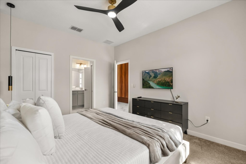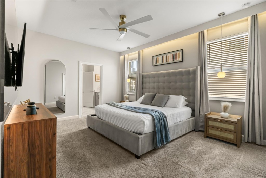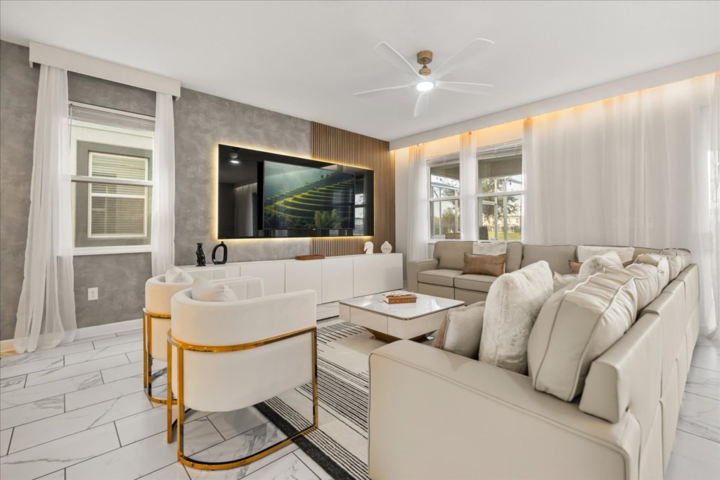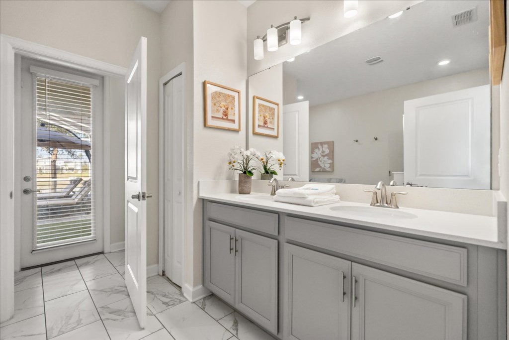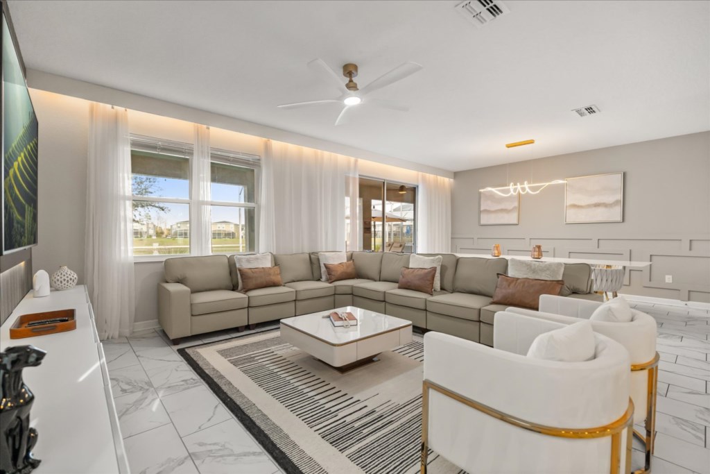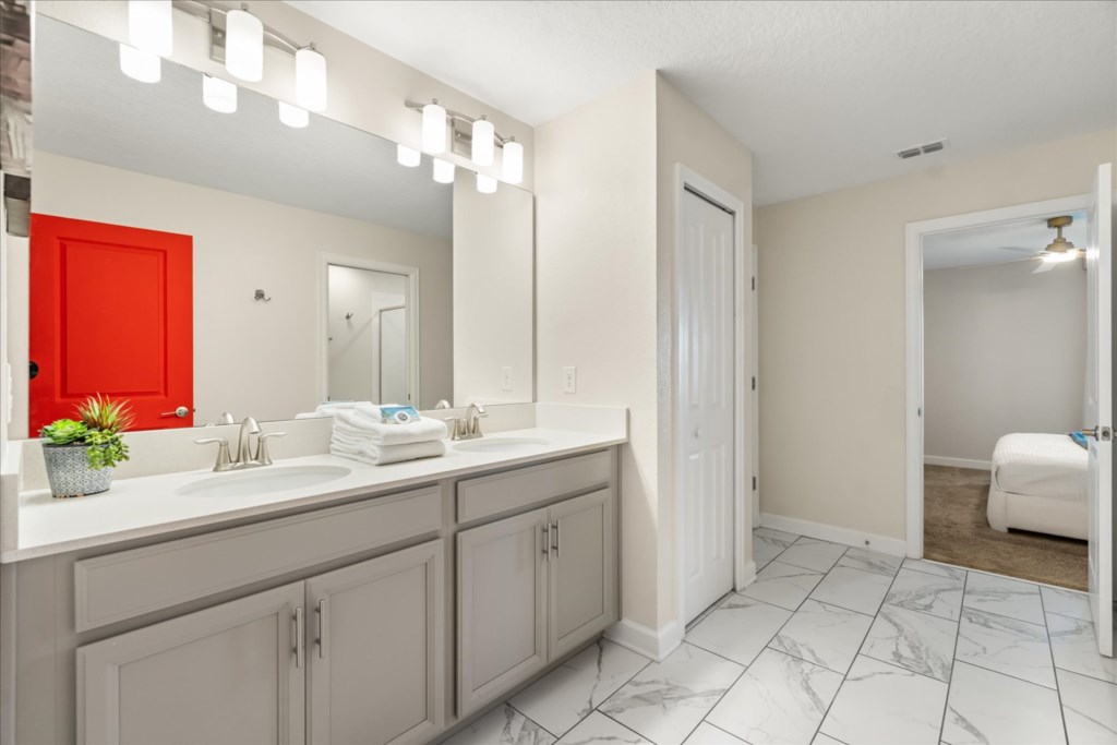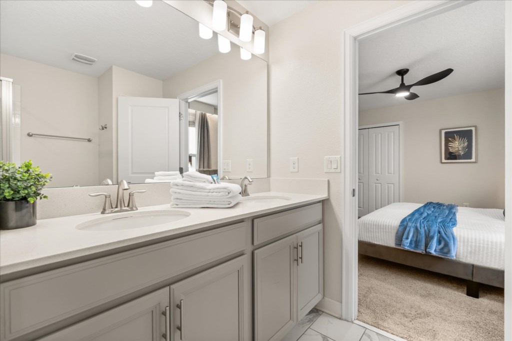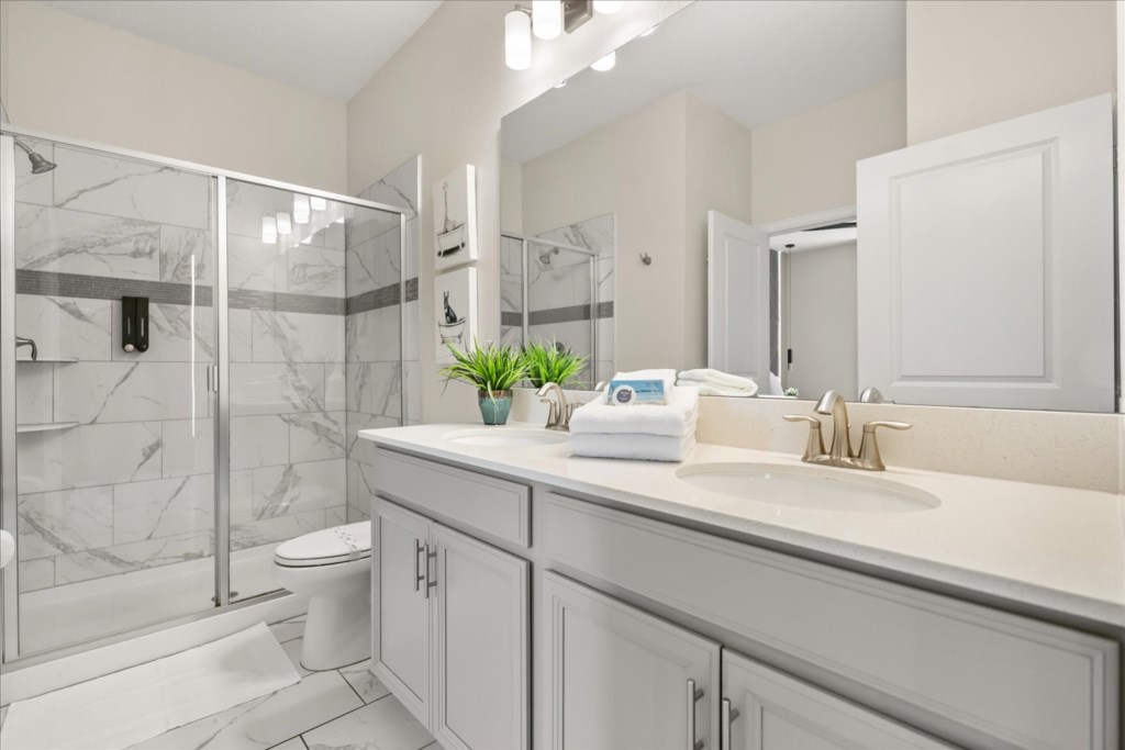 • Community: Champions Gate • 8 Bedrooms/ 5 Bathrooms/ Sleeps 22 • Disney World® (10.2 miles) SeaWorld (18.1 miles) • Convention Center (13.6 miles) ICON Park (20.8 miles) • Universal Studios (21.9 miles) Epic Universe (20.8 miles) • Location: Ocean Course Avenue, Champions Gate, FL 33896 DETAILS • Central AC • Washer & Dryer • Free Cable TV & WIFI • Fully Equipped Kitchen • Towels & Linens Provided • Washcloths Are Not Provided • Family Room with Flat Screen TV • Hair Dryers, Iron & Ironing Board • Private Door Code for Each Guest Stay • Outdoor Patio Furniture with Sun Loungers • Pack 'n play/ High Chair (Free Upon Request) • Private Screened-in Pool + Child Safety Pool Fence - BEDROOM SETUP FIRST FLOOR Bedroom 1: 1 King Bed + Bathroom In Hallway Bedroom 2: 1 King Bed (Private Bathroom) SECOND FLOOR Bedroom 3: 1 King Bed + Bathroom In Hallway Bedroom 4: 1 King Bed Bedroom 5: 2 Full Beds (Mickey Room) + Shared Bathroom Between Bedrooms 4 & 5 Bedroom 6: 1 Bunk Bed (Full Over Full) (Frozen Room) +Bathroom In Hallway Bedroom 7: 1 Bunk Bed (Full Over Full) (Mario Room) Bedroom 8:1 King Bed + Shared Bathroom Between Bedrooms 7 & 8 - USEFUL INFORMATION • CHECKING IN AND OUT - Check-in after 4:00 PM - Checkout before 10:00 AM • CHAMPIONS GATE PARKING - Parking is free. - Vehicles parked on the street must face the correct direction (passenger side to curb) so as to not be parked against the flow of traffic. - Do not block driveways, sidewalks, fire lanes, fire hydrants, mailboxes or any access points. - Parking is not permitted on grass, playgrounds, or landscaped areas. - Double-parking or parking in a manner that creates a safety hazard is not allowed. - Commercial Vehicles, RV's, Trailers, Buses, Golf Carts or Boats are not allowed at Champions Gate. - Vehicles in disrepair or with expired registration may not be left in the street or common areas. - VEHICLES IN VIOLATION OF PARKING POLICY WILL BE TOWED AT THE GUEST'S EXPENSE. • THIS HOME IS SELF-CATERING We do provide a small welcome kit to get you started. Please stop by the nearest supermarket to gather any additional items you may need for the duration of your stay. • POOL HEAT - OPTIONAL 1-Cost: $35 per day. 2-Minimum: 2 consecutive days. 3-Temperature will not exceed 95F. 4-Must be requested 48h in advance. 5-Attached spa is NOT a jacuzzi. It does not have jets. It can only be heated if the entire pool is heated. They both will have the same temperature. 6-Heater works through HEAT EXCHANGE and WILL NOT WORK in cold weather. If you still would like to heat the pool during cold conditions and it does not reach the desired temperature, we will not be able to offer a refund. Our pool heater pumps have a safety system that prevents overheating of the element when the pump is working overtime in cold weather conditions. This way causes a temporary shut off of services automatically until the pump can regain its functionality efficiently. This is optional and may not be available at times. • BBQ RENTAL - OPTIONAL - Cost: $75 All Stay • TRASH DISPOSAL Please place trash in the plastic bench daily to keep a clean home. • HOUSEKEEPING There is no daily housekeeping service provided in the rental rate. Before check-in, the unit will be thoroughly cleaned and inspected by a professional cleaning company. Clean sheets and towels will be available in the unit. Mid-stay cleaning services during your stay can be requested for an additional fee. • ONLINE PURCHASE If the online seller uses USPS, it will not get delivered as the Post Office does not recognize vacation homes as regular addresses and the package will be returned back to the sender. Only UPS, DHL and FEDEX delivers them. In some resorts the packages are delivered to the clubhouse. Fees may apply. Some resorts may not accept them. Keep in mind we are not responsible for unexpected issues with your online purchases. If you have any questions, please contact us. THE OASIS CLUB - Champions Gate • Tot Lot • Arcade Room • Splash Zone • Movie Theater • Fitness Center • Gated Community • Rentable Cabanas • Pool Side Tiki Bar • Grill Room Restaurant • On-site sundries shop • Huge Resort-Style Pool • Tennis & Sand Volleyball Courts • ChampionsGate Country Club Golf Course • 1,023 sq.ft. Lazy River + Two-Story Waterslide THE RETREAT CLUB - Champions Gate • Loungers • Mini Golf • Splash Pad • Resort Pool • Water Slides RESORT REGISTRATION NEEDED AFTER BOOKING CONFIRMATION. PLEASE NOTE: Additional charges apply when the owner has to fix something or pay for additional cleaning if not complied.