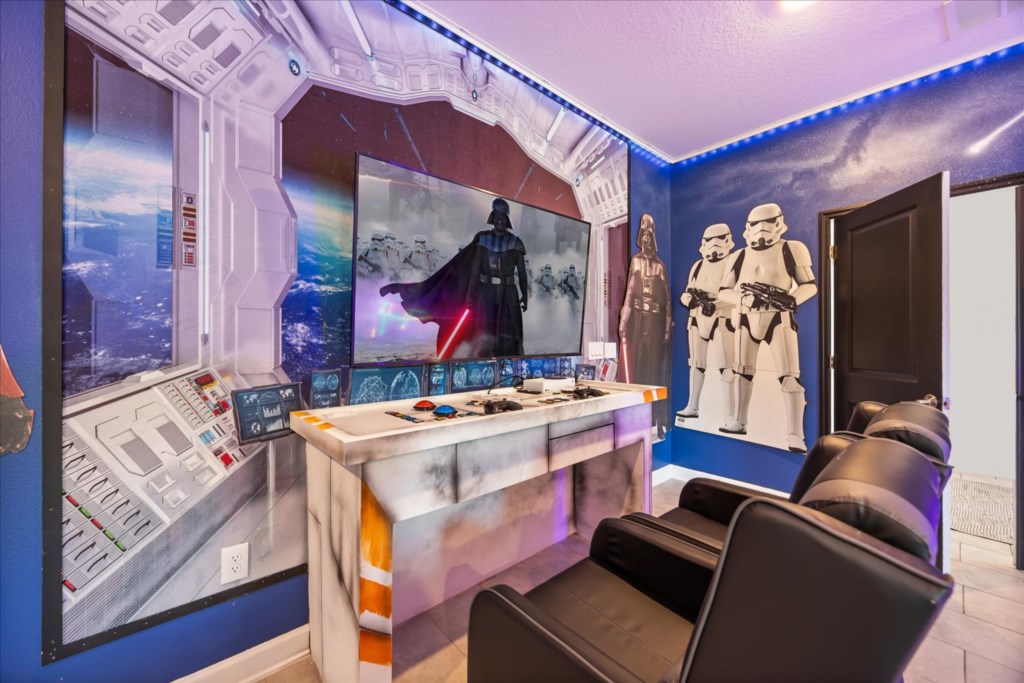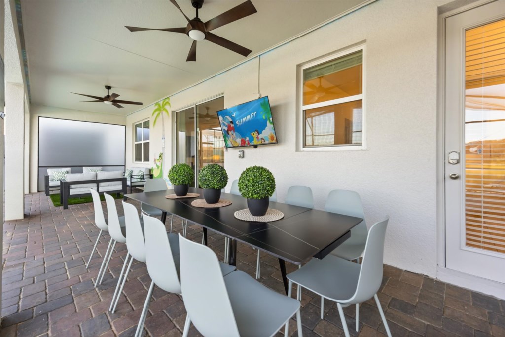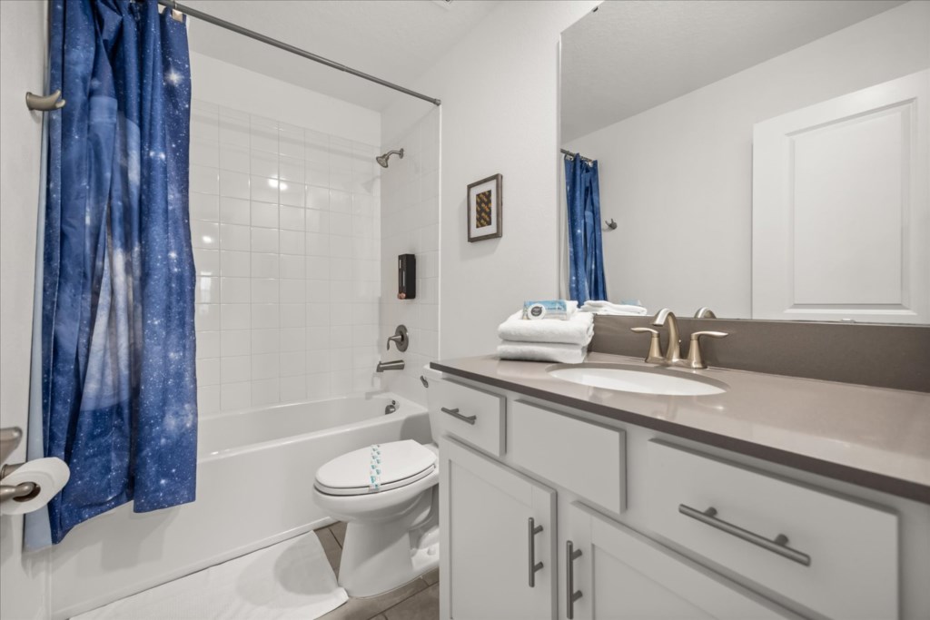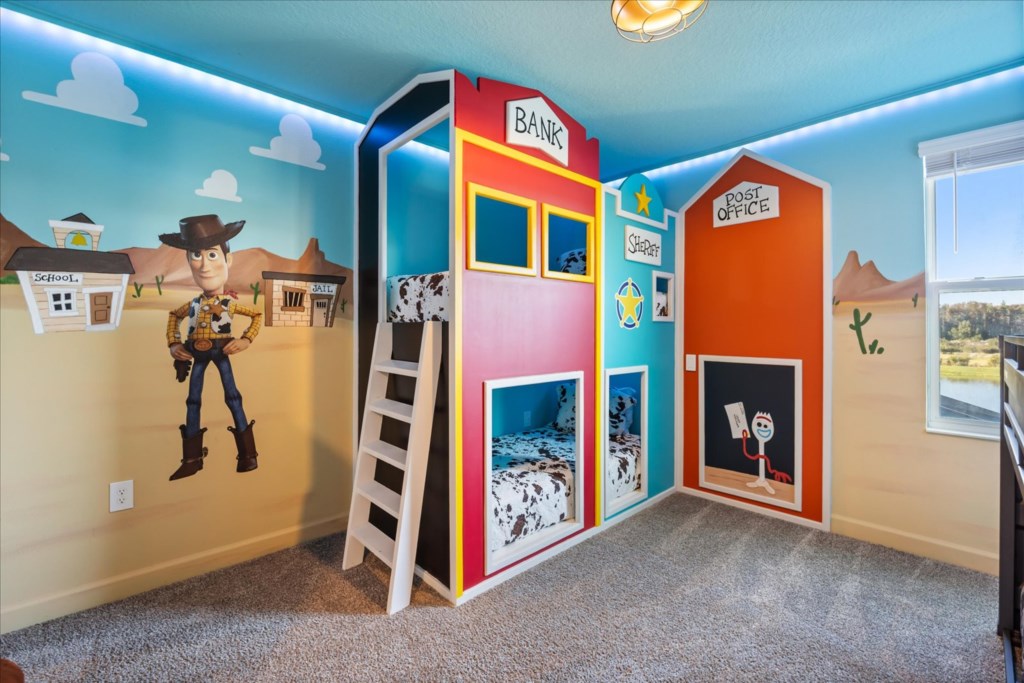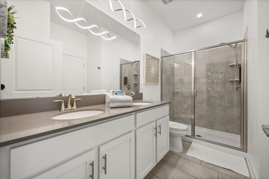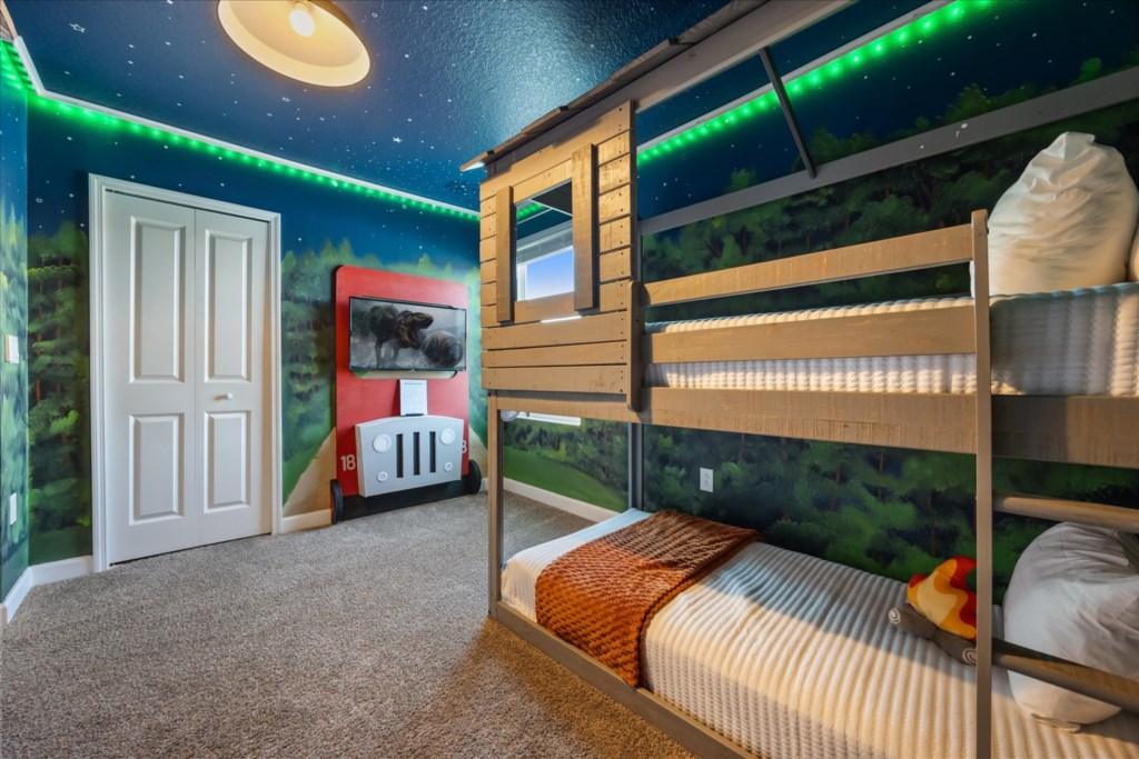 • Community: Storey Lake • 8 Bedrooms/ 5 Bathrooms/ Sleeps 21 • Disney World® (6.9 miles) SeaWorld (10.3 miles) • Convention Center (11.1 miles) ICON Park (12.6 miles) • Universal Studios (17.2 miles) Epic Universe (12.3 miles) • Location: Paragraph Drive, Kissimmee FL 34746 DETAILS • 4,289 sqft • Central AC • Washer & Dryer • Cable TV & Wi-Fi • TV In Every Bedroom • Fully Equipped Kitchen • Towels & Linens Provided • Washcloths Are Not Provided • Family Room with Flat Screen TV • Hair Dryers, Iron & Ironing Board • Private Door Code for Each Guest Stay • Outdoor Patio Furniture with Sun Loungers • Pack 'n play/ High Chair (Free Upon Request) • Private Screened-in Pool + Child Safety Pool Fence - BEDROOM SETUP FIRST FLOOR: Bedroom 1: 1 King Bed (Private Bathroom) Bedroom 2: 1 King Bed + Attached Bathroom Shared With Hallyway Second Floor Bedroom 3: 2 Bunk Beds (Twin Over Twin) (Jurassic Park Room) Bedroom 4: 2 Bunk Beds (Twin Over Twin) (Toy Story Room) Bedroom 5: 1 King Bed + Shared Bathroom Between Bedrooms 4 & 5 Bedroom 6: 1 King Bed + Bathroom In Hallway Bedroom 7: 1 King Bed Bedroom 8: 1 Full Bed + 1 Twin Bed (Frozen Room) + Shared bathroom Between Bedrooms 7 & 8 - USEFUL INFORMATION • CHECKING IN AND OUT - Check-in after 4:00 PM - Checkout before 10:00 AM • PARKING - Parking is free. - No street parking. - No parking on the grass. - No parking or blocking the sidewalk. - Vehicle in violation of parking policy will be towed at the guest's expense. - Commercial vehicles, RV's, Trailers, Buses, Golf carts, recreational vehicles or watercraft is not permitted at Storey Lake. - The community allows up to 10 cars to enter the resort per unit. There are overflow parking spaces, but not guaranteed as they are not assigned nor reserved. • THIS HOME IS SELF-CATERING We do provide a small welcome kit to get you started. Please stop by the nearest supermarket to gather any additional items you may need for the duration of your stay. • POOL HEAT - OPTIONAL 1-Cost: $35 per day. 2-Request 48 hours in advance. 3-Minimum: 2 consecutive days. 4-Temperature will not exceed 95F. 5-Attached spa is NOT a hot tub. It can only be heated if the entire pool is heated. Both have the same temperature. It does not have jets. 6-Heater works through HEAT EXCHANGE and WILL NOT WORK in cold weather. If you still would like to heat the pool during cold conditions and it does not reach the desired temperature, we will not be able to offer a refund. The pool heater pumps have a safety system that prevents overheating of the element when the pump is working overtime in cold weather. It automatically shuts off briefly until the pump can regain its functionality efficiently. Keep in mind this service is optional and may not be available at times. • BBQ RENTAL - OPTIONAL - Cost: $75 All Stay • HOUSEKEEPING There is no daily housekeeping service provided in the rental rate. Before check-in, the unit will be thoroughly cleaned and inspected by a professional cleaning company. Clean sheets and towels will be available in the unit. Mid-stay cleaning services during your stay can be requested for an additional fee. • TRASH DISPOSAL Please dispose the trash daily in the plastic bench to keep a clean home. • ONLINE PURCHASE If the online seller uses USPS, it will not get delivered as the Post Office does not recognize vacation homes as regular addresses and the package will be returned back to the sender. Only UPS, DHL and FEDEX delivers them. In some resorts the packages are delivered to the clubhouse. FEES MAY APPLY. Some resorts may not accept them. Keep in mind we are not responsible for unexpected issues with your online purchases. If you have any questions, please contact us. • THE BRONSON CLUB - Storey Lake Clubhouse Lazy River Playground Game Room Lounge Area Fitness Center Gated Community Basketball Court Resort-Style Swimming Pool • HIDEAWAY CLUB - Storey Lake Spa Lounge Jacuzzi Tiki Bar Lazy River Restaurant Waterslides Splash Park Kayak Rental Fitness Center Gated Community Basketball Court Beach Volleyball Lagoon Style Pool Huge Resort-Style Pool 9-Hole Mini Golf Course (*Fee Required) PLEASE NOTE: Additional charges apply when the owner has to fix something or pay for additional cleaning if not complied.