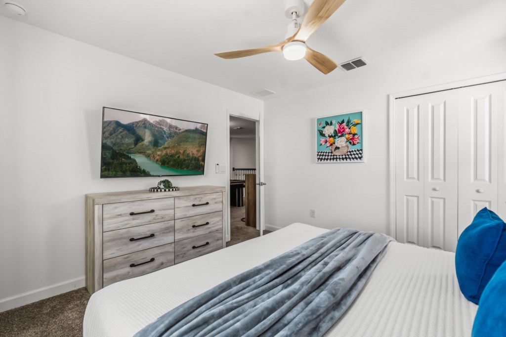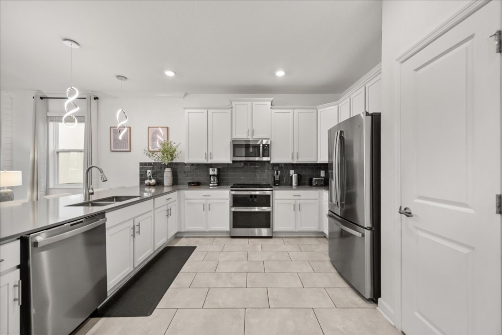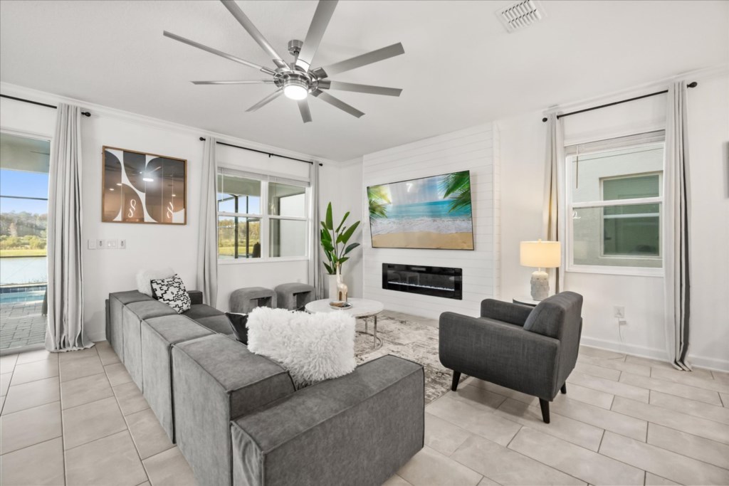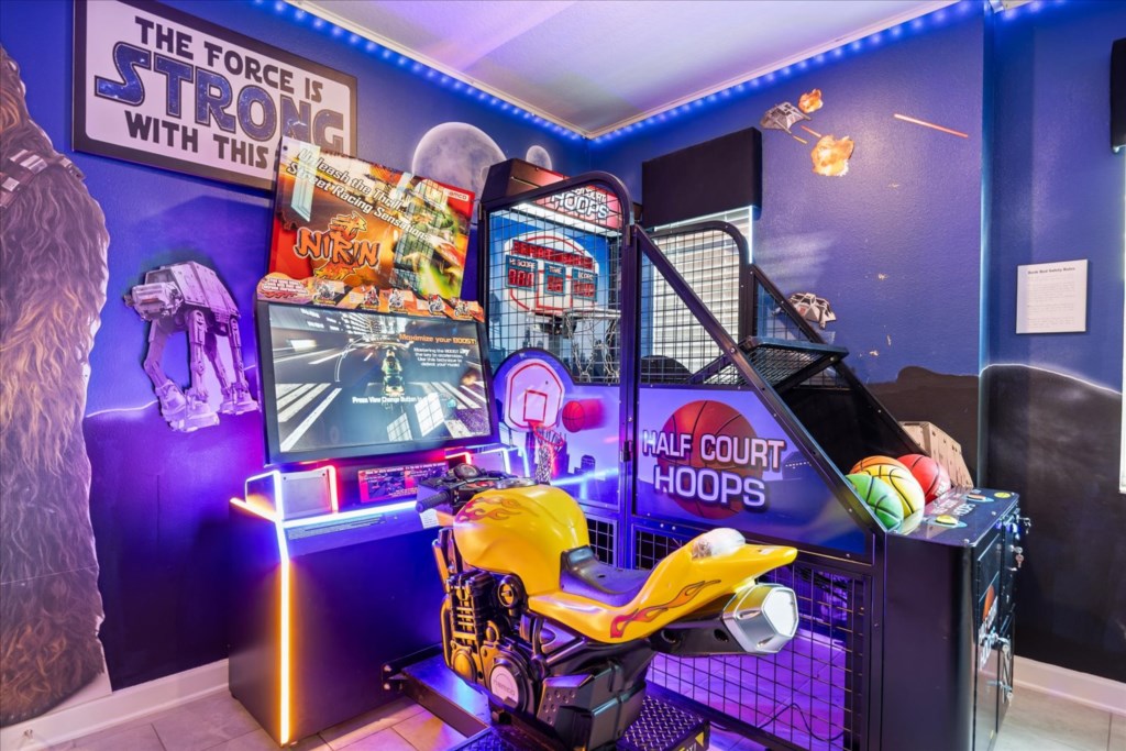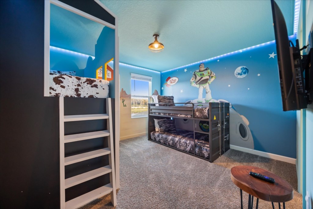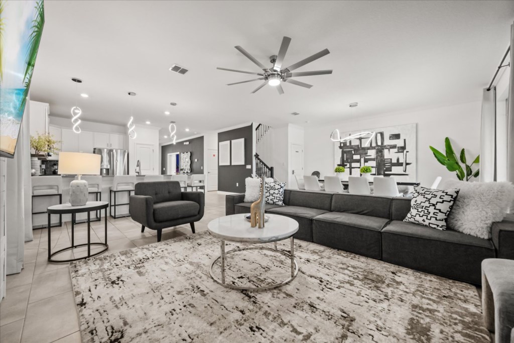• Community: Storey Lake • 8 Bedrooms/ 5 Bathrooms/ Sleeps 21 • Disney World® (6.9 miles) SeaWorld (10.3 miles) • Convention Center (11.1 miles) ICON Park (12.6 miles) • Universal Studios (17.2 miles) Epic Universe (12.3 miles) • Location: Paragraph Drive, Kissimmee FL 34746 DETAILS • 4,289 sqft • Central AC • Washer & Dryer • Cable TV & Wi-Fi • TV In Every Bedroom • Fully Equipped Kitchen • Towels & Linens Provided • Washcloths Are Not Provided • Family Room with Flat Screen TV • Hair Dryers, Iron & Ironing Board • Private Door Code for Each Guest Stay • Outdoor Patio Furniture with Sun Loungers • Pack 'n play/ High Chair (Free Upon Request) • Private Screened-in Pool + Child Safety Pool Fence - BEDROOM SETUP FIRST FLOOR: Bedroom 1: 1 King Bed (Private Bathroom) Bedroom 2: 1 King Bed + Attached Bathroom Shared With Hallyway Second Floor Bedroom 3: 2 Bunk Beds (Twin Over Twin) (Jurassic Park Room) Bedroom 4: 2 Bunk Beds (Twin Over Twin) (Toy Story Room) Bedroom 5: 1 King Bed + Shared Bathroom Between Bedrooms 4 & 5 Bedroom 6: 1 King Bed + Bathroom In Hallway Bedroom 7: 1 King Bed Bedroom 8: 1 Full Bed + 1 Twin Bed (Frozen Room) + Shared bathroom Between Bedrooms 7 & 8 - USEFUL INFORMATION • CHECKING IN AND OUT - Check-in after 4:00 PM - Checkout before 10:00 AM • PARKING - Parking is free. - No street parking. - No parking on the grass. - No parking or blocking the sidewalk. - Vehicle in violation of parking policy will be towed at the guest's expense. - Commercial vehicles, RV's, Trailers, Buses, Golf carts, recreational vehicles or watercraft is not permitted at Storey Lake. - The community allows up to 10 cars to enter the resort per unit. There are overflow parking spaces, but not guaranteed as they are not assigned nor reserved. • THIS HOME IS SELF-CATERING We do provide a small welcome kit to get you started. Please stop by the nearest supermarket to gather any additional items you may need for the duration of your stay. • POOL HEAT - OPTIONAL 1-Cost: $35 per day. 2-Request 48 hours in advance. 3-Minimum: 2 consecutive days. 4-Temperature will not exceed 95F. 5-Attached spa is NOT a hot tub. It can only be heated if the entire pool is heated. Both have the same temperature. It does not have jets. 6-Heater works through HEAT EXCHANGE and WILL NOT WORK in cold weather. If you still would like to heat the pool during cold conditions and it does not reach the desired temperature, we will not be able to offer a refund. The pool heater pumps have a safety system that prevents overheating of the element when the pump is working overtime in cold weather. It automatically shuts off briefly until the pump can regain its functionality efficiently. Keep in mind this service is optional and may not be available at times. • BBQ RENTAL - OPTIONAL - Cost: $75 All Stay • HOUSEKEEPING There is no daily housekeeping service provided in the rental rate. Before check-in, the unit will be thoroughly cleaned and inspected by a professional cleaning company. Clean sheets and towels will be available in the unit. Mid-stay cleaning services during your stay can be requested for an additional fee. • TRASH DISPOSAL Please dispose the trash daily in the plastic bench to keep a clean home. • ONLINE PURCHASE If the online seller uses USPS, it will not get delivered as the Post Office does not recognize vacation homes as regular addresses and the package will be returned back to the sender. Only UPS, DHL and FEDEX delivers them. In some resorts the packages are delivered to the clubhouse. FEES MAY APPLY. Some resorts may not accept them. Keep in mind we are not responsible for unexpected issues with your online purchases. If you have any questions, please contact us. • THE BRONSON CLUB - Storey Lake Clubhouse Lazy River Playground Game Room Lounge Area Fitness Center Gated Community Basketball Court Resort-Style Swimming Pool • HIDEAWAY CLUB - Storey Lake Spa Lounge Jacuzzi Tiki Bar Lazy River Restaurant Waterslides Splash Park Kayak Rental Fitness Center Gated Community Basketball Court Beach Volleyball Lagoon Style Pool Huge Resort-Style Pool 9-Hole Mini Golf Course (*Fee Required) PLEASE NOTE: Additional charges apply when the owner has to fix something or pay for additional cleaning if not complied.