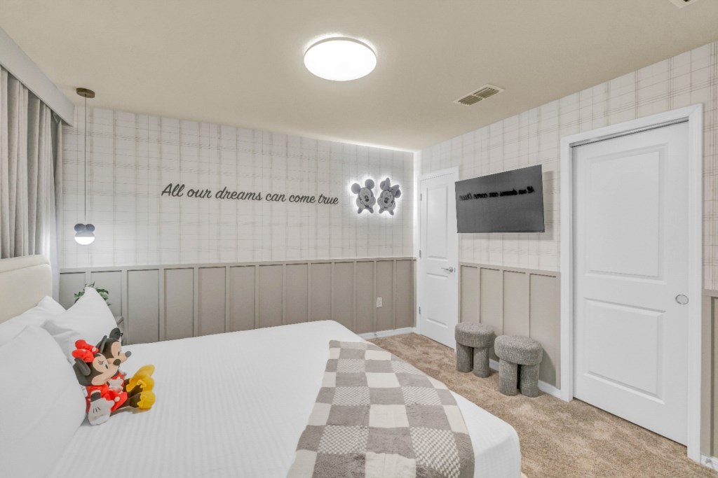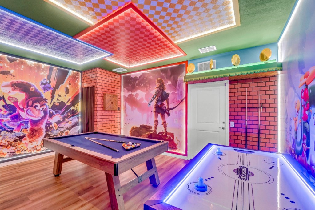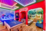 • Community: Windsor Cay • 8 Bedrooms/ 6 Bathrooms/ Sleeps 19 • Disney World® (8.2 miles) SeaWorld (18.5 miles) • Convention Center (19.5 miles) ICON Park (20.9 miles) • Universal Studios (22.3 miles) Epic Universe (20.9 miles) • Location: Coastal Cove Lane, Clermont FL 34714 DETAILS • 4,034 sqft • Central AC • Cable TV & Wi-Fi • Washer & Dryer • Gated Community • TV In Every Bedroom • Fully Equipped Kitchen • Towels & Linens Provided • Washcloths Are Not Provided • Family Room with Flat Screen TV • Hair Dryers, Iron & Ironing Board • Private Door Code for Each Guest Stay • Outdoor Patio Furniture with Sun Loungers • Pack 'n play/ High Chair (Free Upon Request) • Private Screened-in Pool + Child Safety Pool Fence - BEDROOM SETUP FIRST FLOOR Bedroom 1: 1 King Bed + Bathroom In Hallway Bedroom 2: 1 King Bed + Attached Bathroom Shared With Pool SECOND FLOOR Bedroom 3: 1 King Bed (Private Bathroom) Bedroom 4: 1 Queen Bed (Dragon Room) Bedroom 5: 1 Bunk Bed (Full over Full) (Avengers Room) + Shared Bathroom Between Bedrooms 4 & 5 Bedroom 6: 1 Bunk Bed (Twin Over Full) (Frozen Room) Bedroom 7: 1 King Bed (Mickey Room) + Shared Bathroom Between Bedrooms 6 & 7 Bedroom 8: 1 King Bed (Private Bathroom) - USEFUL INFORMATION • CHECKING IN AND OUT - Check-in after 4:00 PM - Checkout before 10:00 AM • WINDSOR CAY PARKING - Parking is free. - Garage converted to Game Room - 2 vehicles per unit in the driveway. - No parking on the street. (Since it is a new community, they will not enforce this rule until the signs are placed.) - No parking on grass or blocking the sidewalks. - Registered guests cannot share their parking passes with unregistered visitors. - Commercial Vehicles, RV's, Trailers, Buses, Golf Carts or Boats are not allowed at Windsor Cay. - Vehicle in violation of parking policy will be towed at the guest's expense. • THIS HOME IS SELF-CATERING We do provide a small welcome kit to get you started. Please stop by the nearest supermarket to gather any additional items you may need for the duration of your stay. • POOL HEAT - OPTIONAL 1-Cost: $35 per day. 2-Minimum: 2 consecutive days. 3-Temperature will not exceed 95F. 4-Must be requested 48h in advance. 5-Attached spa is NOT a hot tub. It can only be heated if the entire pool is heated. They both will have the same temperature. It does not have jets. 6-Heater works through HEAT EXCHANGE and WILL NOT WORK in cold weather. If you still would like to heat the pool during cold conditions and it does not reach the desired temperature, we will not be able to offer a refund. The pool heater pumps have a safety system that prevents overheating of the element when the pump is working overtime in cold weather. It automatically shuts off briefly until the pump can regain its functionality efficiently. Keep in mind this service is optional and may not be available at times. • BBQ RENTAL - OPTIONAL - Cost: $75 All Stay • TRASH DISPOSAL Please place trash in the plastic bin daily to keep a clean home. • HOUSEKEEPING There is no daily housekeeping service provided in the rental rate. Before check-in, the unit will be thoroughly cleaned and inspected by a professional cleaning company. Clean sheets and towels will be available in the unit. Mid-stay cleaning services during your stay can be requested for an additional fee. • ONLINE PURCHASE If the online seller uses USPS, it will not get delivered as the Post Office does not recognize vacation homes as regular addresses and the package will be returned back to the sender. Only UPS, DHL and FEDEX delivers them. In some resorts the packages are delivered to the clubhouse. Fees may apply. Some resorts may not accept them. Keep in mind we are not responsible for unexpected issues with your online purchases. If you have any questions, please contact us. • REEF CLUB - Windsor Cay Resort - Arcade - Lazy River - Fitness Center - Family Cabanas - 9-Hole Mini Golf - Dual Water Slides - Gated Community - Volleyball & Cornhole - Children's Splash Pad - Outdoor Covered Bar - Blue Lagoon Bar & Grille - Resort-Style Zero-Entry Pool Resort registration needed. PLEASE NOTE: Additional charges apply when the owner has to fix something or pay for additional cleaning if not complied.
