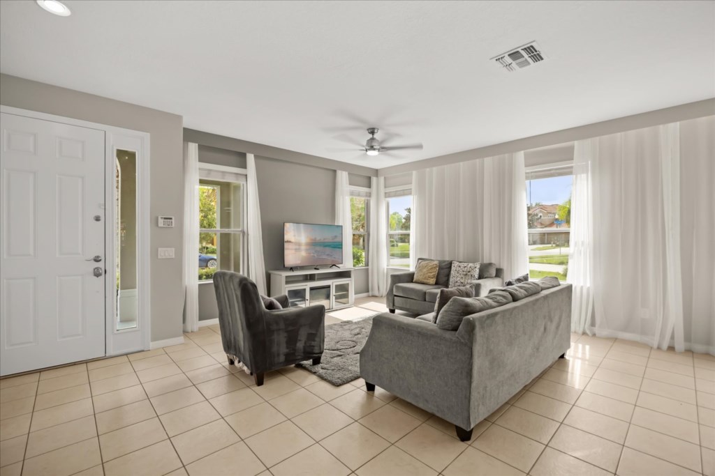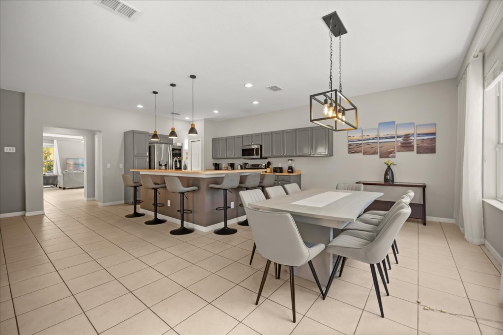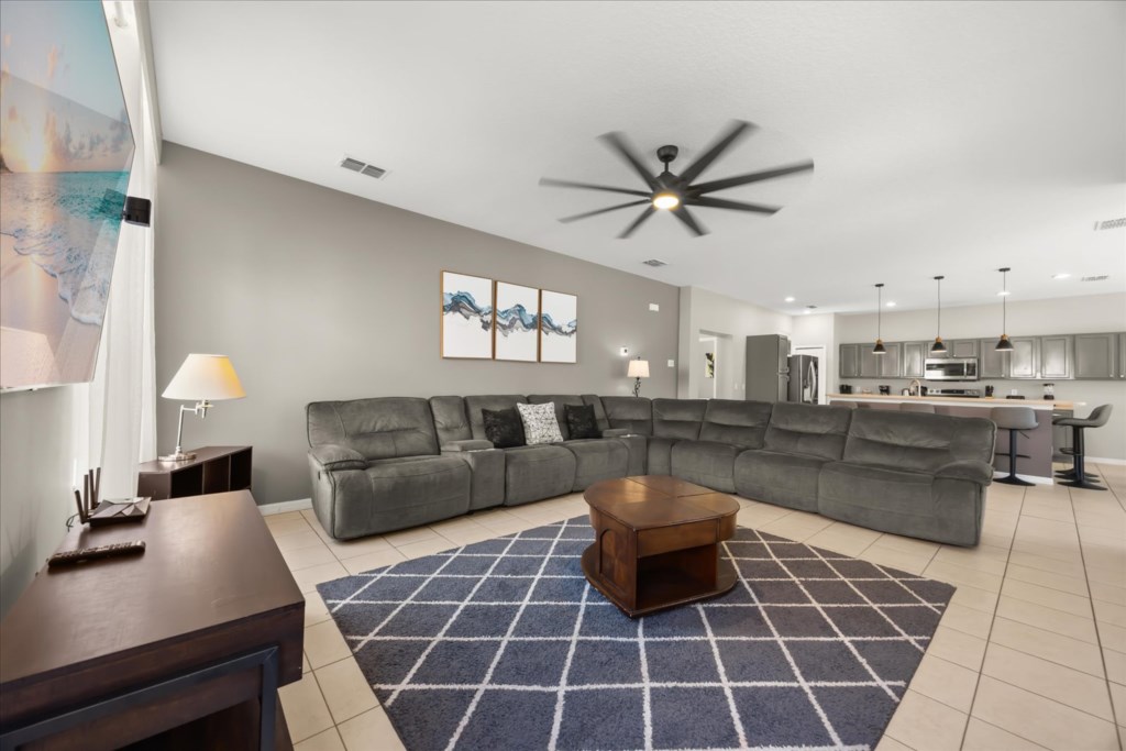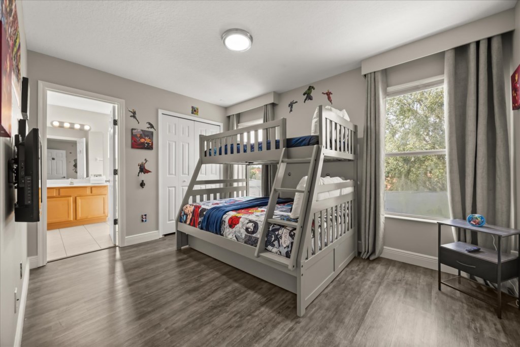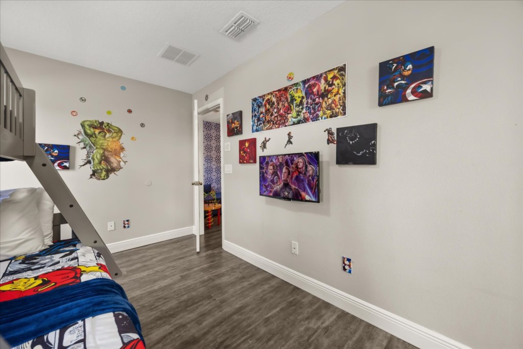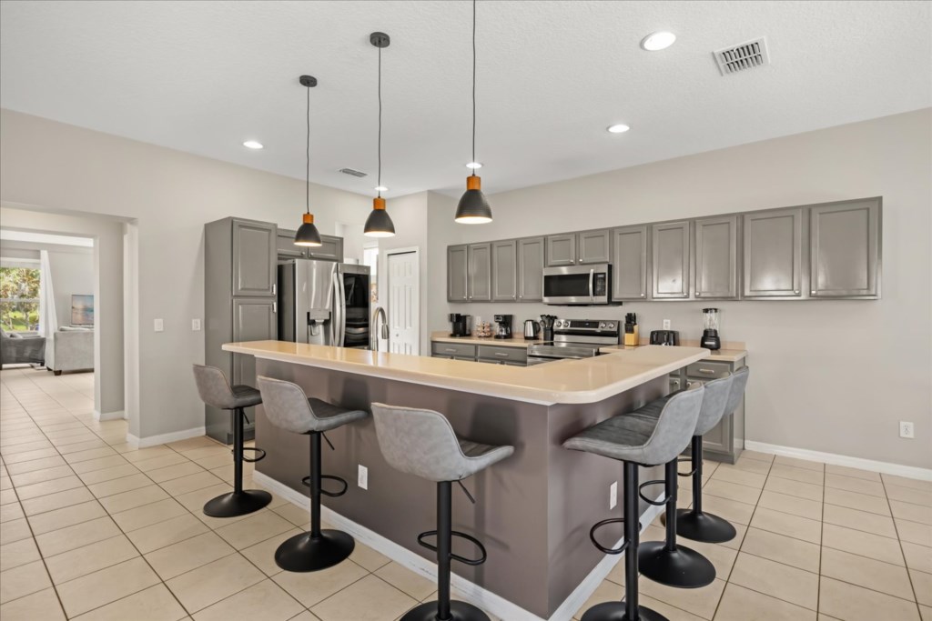 • Community: Bella Vida • 6 Bedrooms/ 5.5 Bathrooms/ Sleeps 14 • Disney World® (7.7 miles) SeaWorld (11.2 miles) • Convention Center (12.3 miles) ICON Park (13.7 miles) • Universal Studios (15.0 miles) Epic Universe (13.5 miles) • Location: Stella Street, Kissimmee, FL 34746 DETAILS • 3,512 sqft • Central AC • Washer & Dryer • Cable TV & Wi-Fi • TV In Every Bedroom • Fully Equipped Kitchen • Towels & Linens Provided • Washcloths Are Not Provided • Family Room with Flat Screen TV • Hair Dryers, Iron & Ironing Board • Private Door Code for Each Guest Stay • Outdoor Patio Furniture with Sun Loungers • Pack 'n play/ High Chair (Free Upon Request) • Private Screened-in Pool + Child Safety Pool Fence - BEDROOM SETUP BEDROOMS FIRST FLOOR + Half Bathroom BEDROOMS SECOND FLOOR Bedroom 1: 1 King Bed (Private Bathroom) Bedroom 2: 1 King Bed (Private Bathroom) Bedroom 3: 1 Queen Bed (Private Bathroom) Bedroom 4: 1 Bunk Bed (Twin Over Full) (Harry Potter Room) Bedroom 5: 1 Bunk Bed (Twin Over Full) (Avengers Room) + Shared Bathroom Between 4 & 5 Bedroom 6: 1 King Bed (Private Bathroom) - USEFUL INFORMATION • CHECKING IN AND OUT - Check-in after 4:00 PM - Checkout before 10:00 AM • PARKING - Parking is free. - Driveway parking. - No street parking. - No parking on the grass. - No parking or blocking the sidewalk. - Commercial Vehicles, RV's, Trailers, Buses, Golf Carts or Boats is not permitted at Bella Vida Resort. - Vehicle in violation of parking policy will be towed at the guest's expense. • THIS HOME IS SELF-CATERING We do provide a small welcome kit to get you started. Please stop by the nearest supermarket to gather any additional items you may need for the duration of your stay. • POOL HEAT - OPTIONAL 1-Cost: $35 per day. 2-Request 48 hours in advance. 3-Minimum: 2 consecutive days. 4-Temperature will not exceed 95F. 5-Attached spa is NOT a hot tub. It can only be heated if the entire pool is heated. Both have the same temperature. It does not have jets. 6-Heater works through HEAT EXCHANGE and WILL NOT WORK in cold weather. If you still would like to heat the pool during cold conditions and it does not reach the desired temperature, we will not be able to offer a refund. The pool heater pumps have a safety system that prevents overheating of the element when the pump is working overtime in cold weather. It automatically shuts off briefly until the pump can regain its functionality efficiently. Keep in mind this service is optional and may not be available at times. • BBQ RENTAL - OPTIONAL - Cost: $75 All Stay • TRASH DISPOSAL Please place trash in the plastic bin daily to keep a clean home. • HOUSEKEEPING There is no daily housekeeping service provided in the rental rate. Before check-in, the unit will be thoroughly cleaned and inspected by a professional cleaning company. Clean sheets and towels will be available in the unit. Mid-stay cleaning services during your stay can be requested for an additional fee. • ONLINE PURCHASE If the online seller uses USPS, it will not get delivered as the Post Office does not recognize vacation homes as regular addresses and the package will be returned back to the sender. Only UPS, DHL and FEDEX delivers them. In some resorts the packages are delivered to the clubhouse. Fees may apply. Some resorts may not accept them. Keep in mind we are not responsible for unexpected issues with your online purchases. If you have any questions, please contact us. • BELLA VIDA AMENITIES - Game Room - Cyber Cafe - Walking Trails - Fitness Center - Kids Play Area - Gated Community - 2 Community Pools - Scenic Picnic Area - Gathering Room With TV - Volleyball and Basketball Courts - Over 15 Acres Of Breathtaking Lakes PLEASE NOTE: Additional charges apply when the owner has to fix something or pay for additional cleaning if not complied.