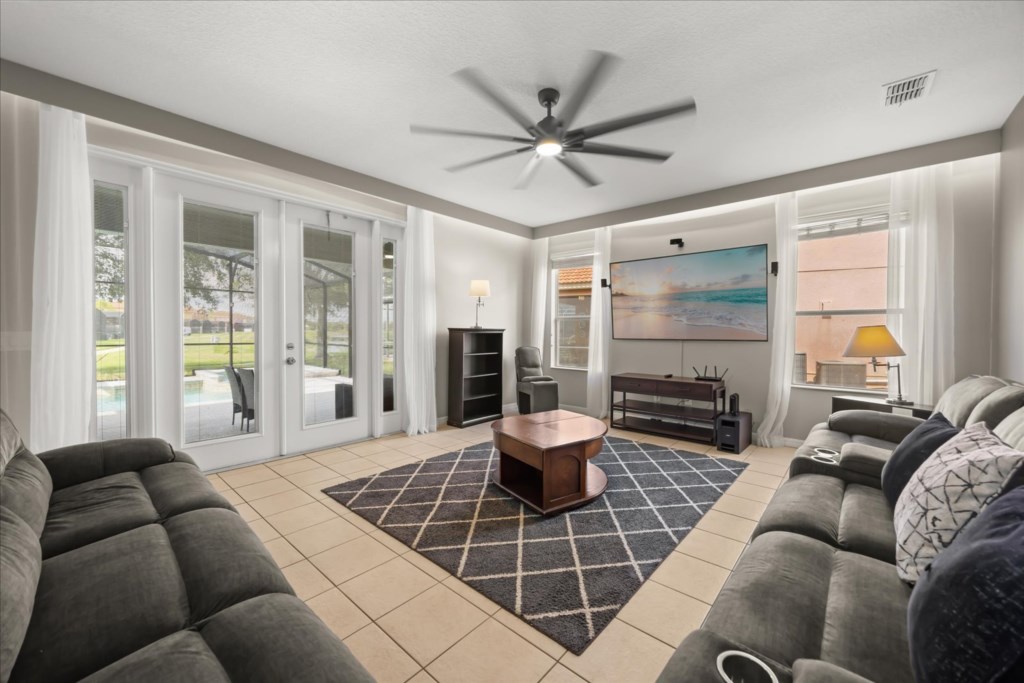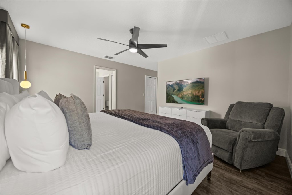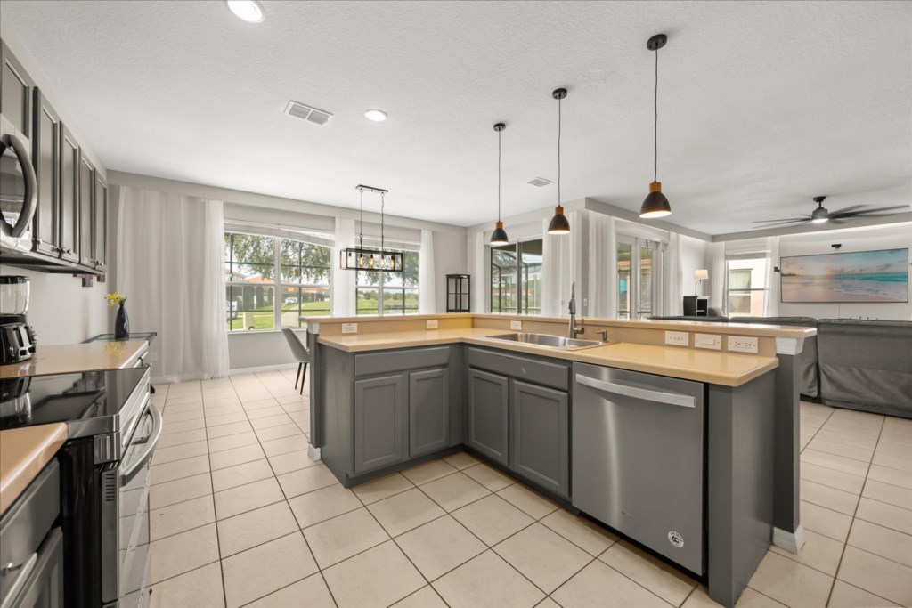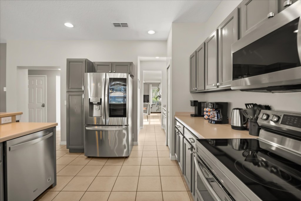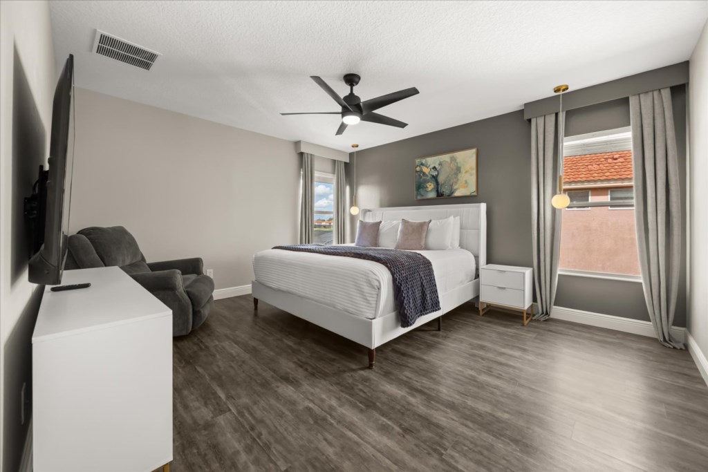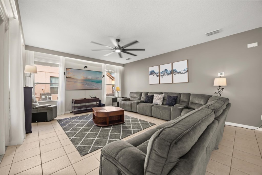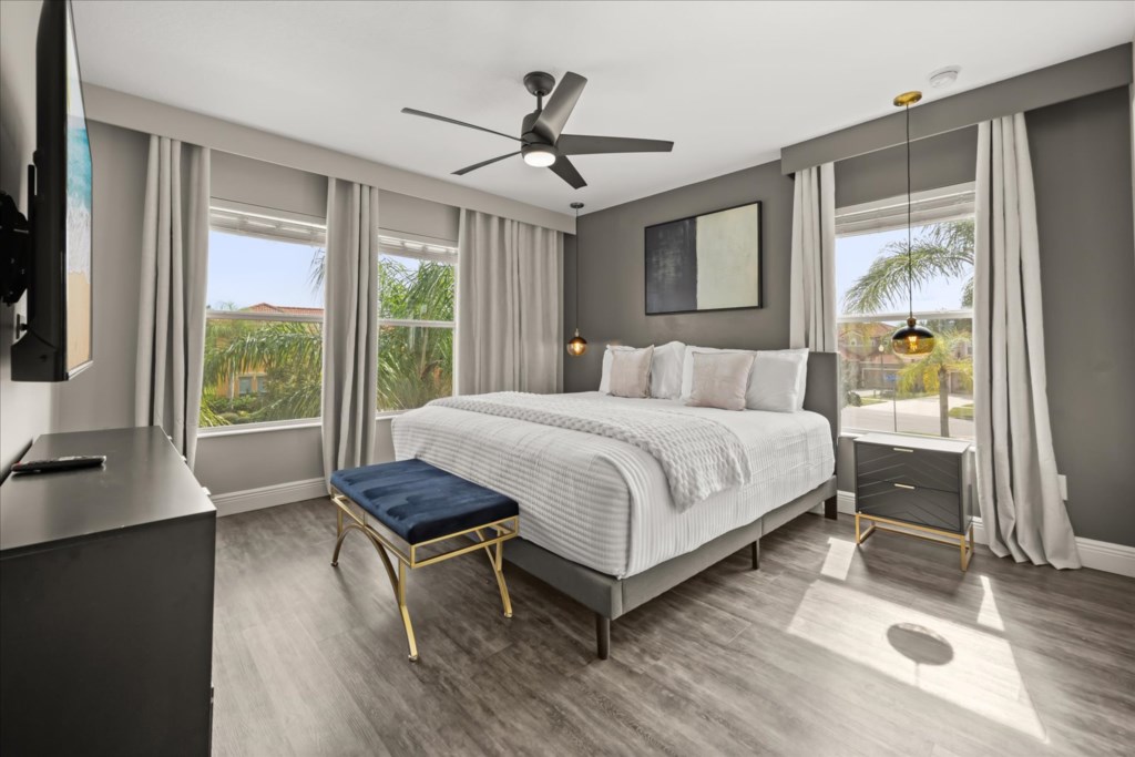 • Community: Bella Vida • 6 Bedrooms/ 5.5 Bathrooms/ Sleeps 14 • Disney World® (7.7 miles) SeaWorld (11.2 miles) • Convention Center (12.3 miles) ICON Park (13.7 miles) • Universal Studios (15.0 miles) Epic Universe (13.5 miles) • Location: Stella Street, Kissimmee, FL 34746 DETAILS • 3,512 sqft • Central AC • Washer & Dryer • Cable TV & Wi-Fi • TV In Every Bedroom • Fully Equipped Kitchen • Towels & Linens Provided • Washcloths Are Not Provided • Family Room with Flat Screen TV • Hair Dryers, Iron & Ironing Board • Private Door Code for Each Guest Stay • Outdoor Patio Furniture with Sun Loungers • Pack 'n play/ High Chair (Free Upon Request) • Private Screened-in Pool + Child Safety Pool Fence - BEDROOM SETUP BEDROOMS FIRST FLOOR + Half Bathroom BEDROOMS SECOND FLOOR Bedroom 1: 1 King Bed (Private Bathroom) Bedroom 2: 1 King Bed (Private Bathroom) Bedroom 3: 1 Queen Bed (Private Bathroom) Bedroom 4: 1 Bunk Bed (Twin Over Full) (Harry Potter Room) Bedroom 5: 1 Bunk Bed (Twin Over Full) (Avengers Room) + Shared Bathroom Between 4 & 5 Bedroom 6: 1 King Bed (Private Bathroom) - USEFUL INFORMATION • CHECKING IN AND OUT - Check-in after 4:00 PM - Checkout before 10:00 AM • PARKING - Parking is free. - Driveway parking. - No street parking. - No parking on the grass. - No parking or blocking the sidewalk. - Commercial Vehicles, RV's, Trailers, Buses, Golf Carts or Boats is not permitted at Bella Vida Resort. - Vehicle in violation of parking policy will be towed at the guest's expense. • THIS HOME IS SELF-CATERING We do provide a small welcome kit to get you started. Please stop by the nearest supermarket to gather any additional items you may need for the duration of your stay. • POOL HEAT - OPTIONAL 1-Cost: $35 per day. 2-Request 48 hours in advance. 3-Minimum: 2 consecutive days. 4-Temperature will not exceed 95F. 5-Attached spa is NOT a hot tub. It can only be heated if the entire pool is heated. Both have the same temperature. It does not have jets. 6-Heater works through HEAT EXCHANGE and WILL NOT WORK in cold weather. If you still would like to heat the pool during cold conditions and it does not reach the desired temperature, we will not be able to offer a refund. The pool heater pumps have a safety system that prevents overheating of the element when the pump is working overtime in cold weather. It automatically shuts off briefly until the pump can regain its functionality efficiently. Keep in mind this service is optional and may not be available at times. • BBQ RENTAL - OPTIONAL - Cost: $75 All Stay • TRASH DISPOSAL Please place trash in the plastic bin daily to keep a clean home. • HOUSEKEEPING There is no daily housekeeping service provided in the rental rate. Before check-in, the unit will be thoroughly cleaned and inspected by a professional cleaning company. Clean sheets and towels will be available in the unit. Mid-stay cleaning services during your stay can be requested for an additional fee. • ONLINE PURCHASE If the online seller uses USPS, it will not get delivered as the Post Office does not recognize vacation homes as regular addresses and the package will be returned back to the sender. Only UPS, DHL and FEDEX delivers them. In some resorts the packages are delivered to the clubhouse. Fees may apply. Some resorts may not accept them. Keep in mind we are not responsible for unexpected issues with your online purchases. If you have any questions, please contact us. • BELLA VIDA AMENITIES - Game Room - Cyber Cafe - Walking Trails - Fitness Center - Kids Play Area - Gated Community - 2 Community Pools - Scenic Picnic Area - Gathering Room With TV - Volleyball and Basketball Courts - Over 15 Acres Of Breathtaking Lakes PLEASE NOTE: Additional charges apply when the owner has to fix something or pay for additional cleaning if not complied.