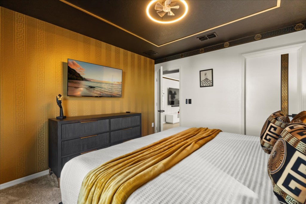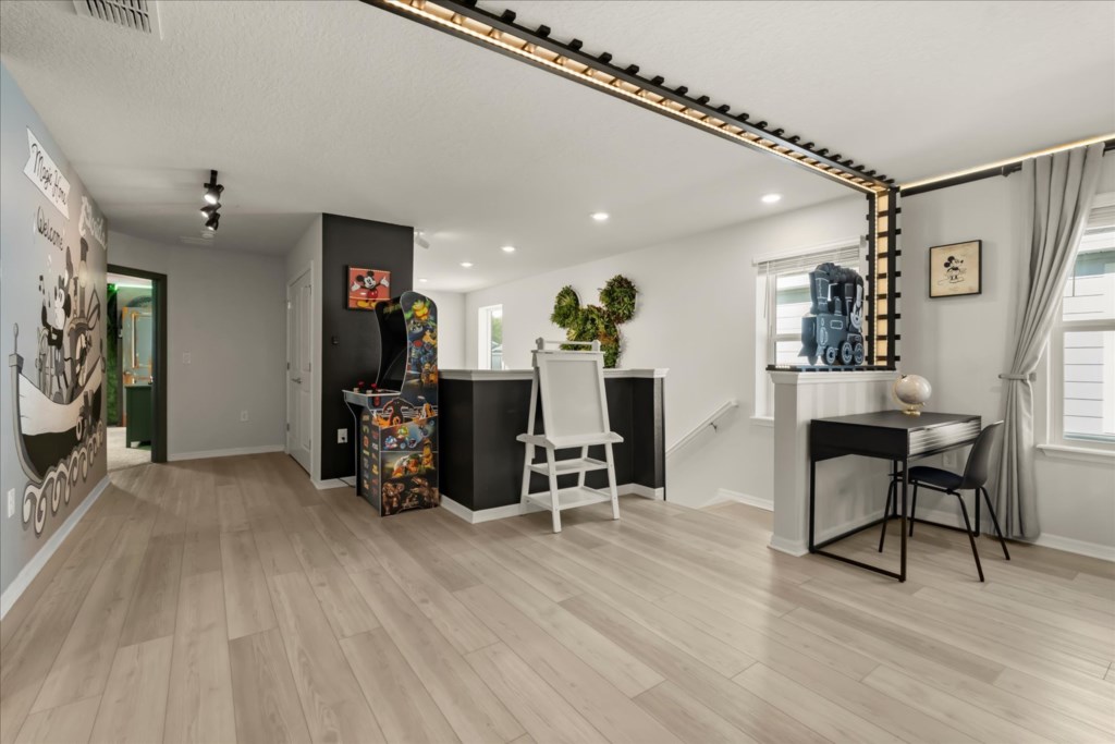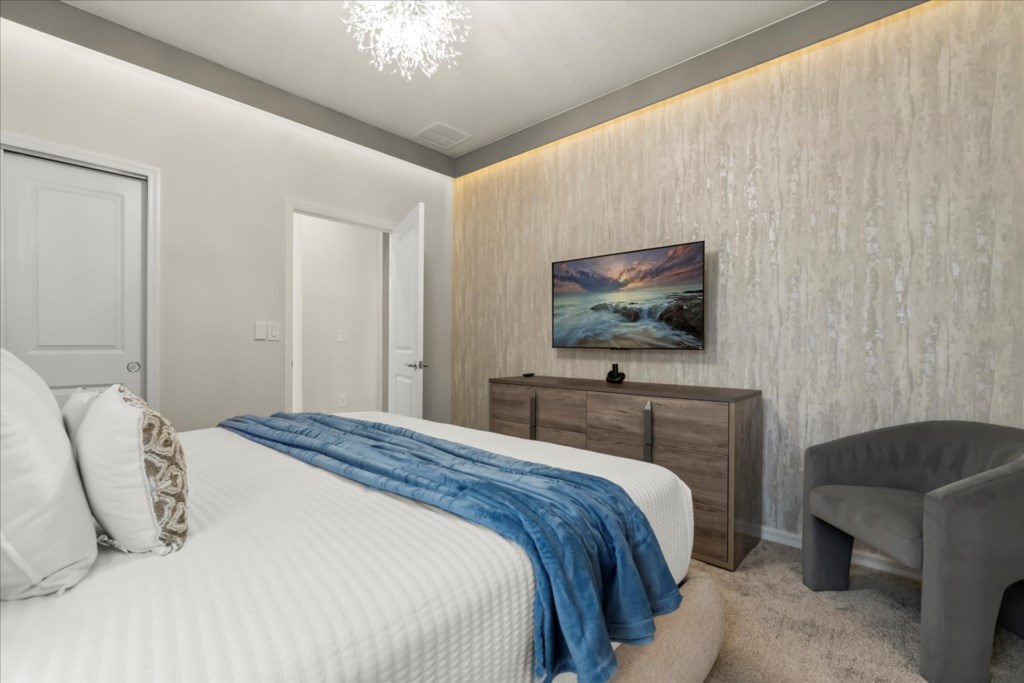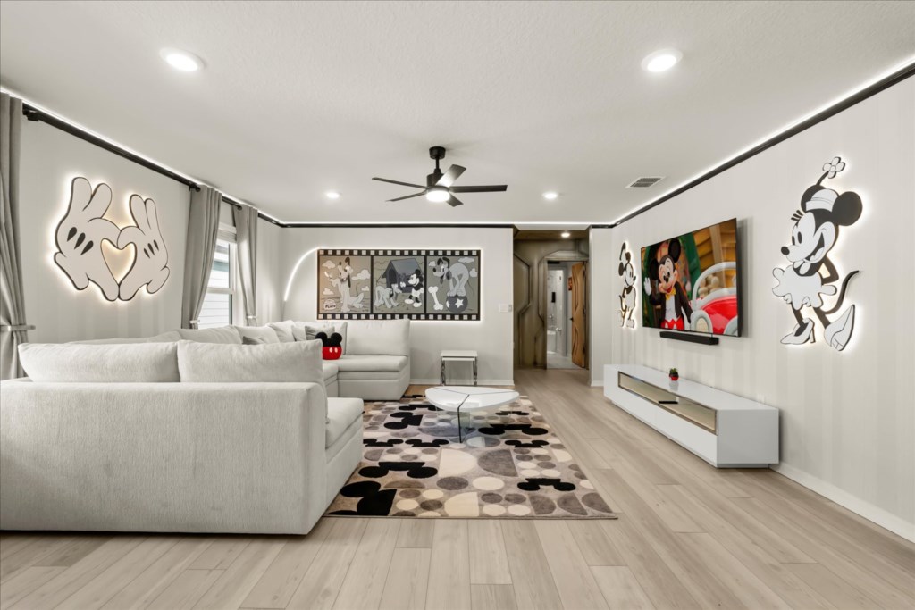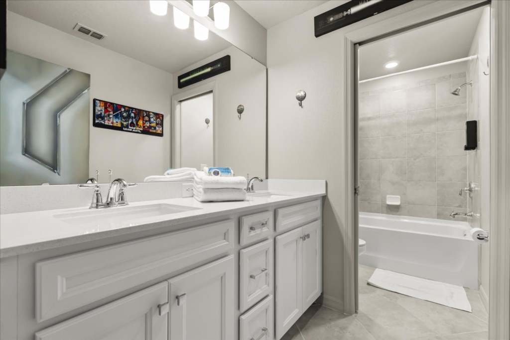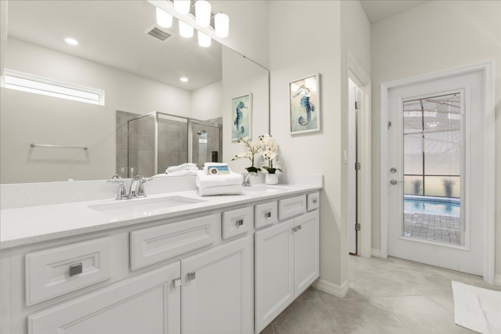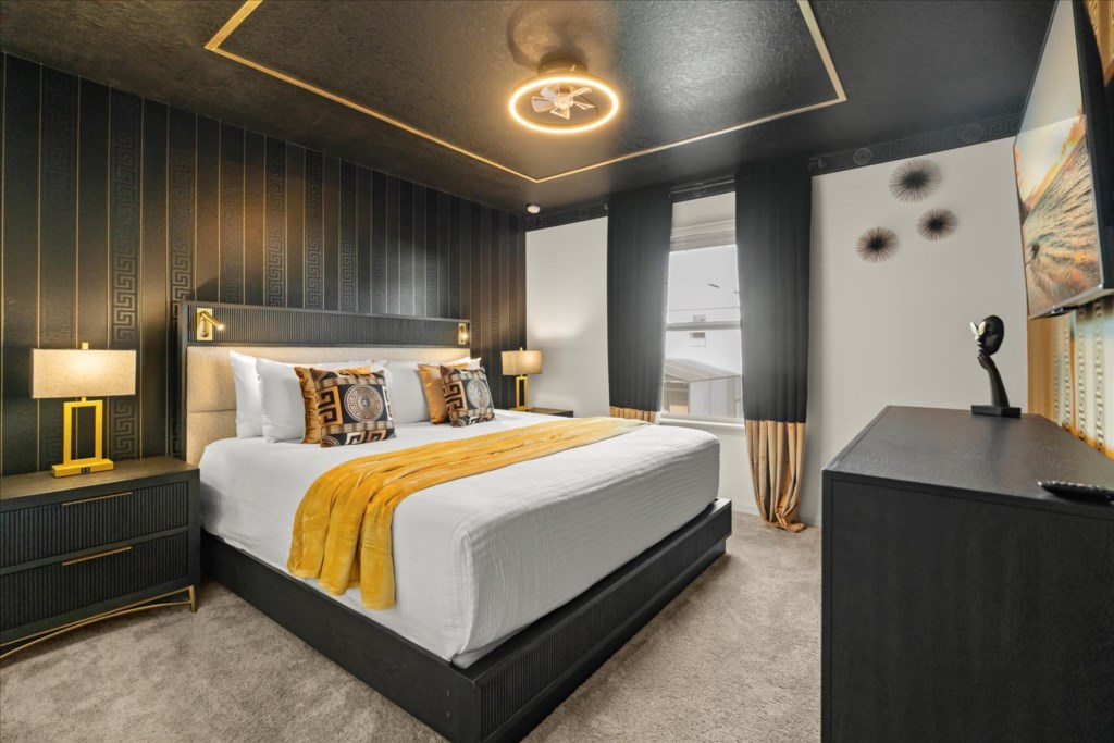 • Community: Windsor Cay • 6 Bedrooms/ 4.5 Bathrooms/ Sleeps 19 • Disney World® (8.3 miles) SeaWorld (18.5 miles) • Convention Center (19.6 miles) ICON Park (21.3 miles) • Universal Studios (22.3 miles) Epic Universe (21.3 miles) • Location: Cape Coral Loop, Clermont FL 34714 DETAILS • 3,127 sqft • Central AC • Cable TV & Wi-Fi • Washer & Dryer • TV In Every Bedroom • Fully Equipped Kitchen • Towels & Linens Provided • Washcloths Are Not Provided • Family Room with Flat Screen TV • Hair Dryers, Iron & Ironing Board • Private Door Code for Each Guest Stay • Outdoor Patio Furniture with Sun Loungers • Pack 'n play/ High Chair (Free Upon Request) • Private Screened-in Pool + Child Safety Pool Fence - BEDROOM SETUP FIRST FLOOR Bedroom 1: 1 King Bed + Attached Bathroom Shared With Pool + Half Bathroom SECOND FLOOR Bedroom 2: 1 King Bed (Versace Room) Bedroom 3: 1 Full Bed + 1 Twin Bed (Star Wars Room) + Shared Bathroom Between Bedrooms 2 & 3 Bedroom 4: 1 King Bed (LV Room) Bedroom 5: 1 Bunk Beds (Twin Over Twin) (Frozen Room) + Shared Bathroom Between Bedrooms 4 & 5 Bedroom 6: 2 Bunk Beds (Full Over Full) (Jurassic Room) (Private Bathroom) - USEFUL INFORMATION • CHECKING IN AND OUT - Check-in after 4:00 PM - Checkout before 10:00 AM • WINDSOR CAY PARKING - Parking is free. - Garage converted to Game Room - 2 vehicles per unit in the driveway. - No parking on the street. (Since it is a new community, they will not enforce this rule until the signs are placed.) - No parking on grass or blocking the sidewalks. - Registered guests cannot share their parking passes with unregistered visitors. - Commercial Vehicles, RV's, Trailers, Buses, Golf Carts or Boats are not allowed at Windsor Cay. - Vehicle in violation of parking policy will be towed at the guest's expense. • THIS HOME IS SELF-CATERING We do provide a small welcome kit to get you started. Please stop by the nearest supermarket to gather any additional items you may need for the duration of your stay. • POOL HEAT - OPTIONAL 1-Cost: $35 per day. 2-Minimum: 2 consecutive days. 3-Temperature will not exceed 95F. 4-Must be requested 48h in advance. 5-Attached spa is NOT a hot tub. It can only be heated if the entire pool is heated. They both will have the same temperature. It does not have jets. 6-Heater works through HEAT EXCHANGE and WILL NOT WORK in cold weather. If you still would like to heat the pool during cold conditions and it does not reach the desired temperature, we will not be able to offer a refund. The pool heater pumps have a safety system that prevents overheating of the element when the pump is working overtime in cold weather. It automatically shuts off briefly until the pump can regain its functionality efficiently. Keep in mind this service is optional and may not be available at times. • BBQ RENTAL - OPTIONAL - Cost: $75 All Stay • TRASH DISPOSAL Please place trash in the plastic bin daily to keep a clean home. • HOUSEKEEPING There is no daily housekeeping service provided in the rental rate. Before check-in, the unit will be thoroughly cleaned and inspected by a professional cleaning company. Clean sheets and towels will be available in the unit. Mid-stay cleaning services during your stay can be requested for an additional fee. • ONLINE PURCHASE If the online seller uses USPS, it will not get delivered as the Post Office does not recognize vacation homes as regular addresses and the package will be returned back to the sender. Only UPS, DHL and FEDEX delivers them. In some resorts the packages are delivered to the clubhouse. Fees may apply. Some resorts may not accept them. Keep in mind we are not responsible for unexpected issues with your online purchases. If you have any questions, please contact us. • REEF CLUB - Windsor Cay Resort - Arcade - Lazy River - Fitness Center - Family Cabanas - 9-Hole Mini Golf - Dual Water Slides - Gated Community - Volleyball & Cornhole - Children's Splash Pad - Outdoor Covered Bar - Blue Lagoon Bar & Grille - Resort-Style Zero-Entry Pool Resort registration needed. PLEASE NOTE: Additional charges apply when the owner has to fix something or pay for additional cleaning if not complied.