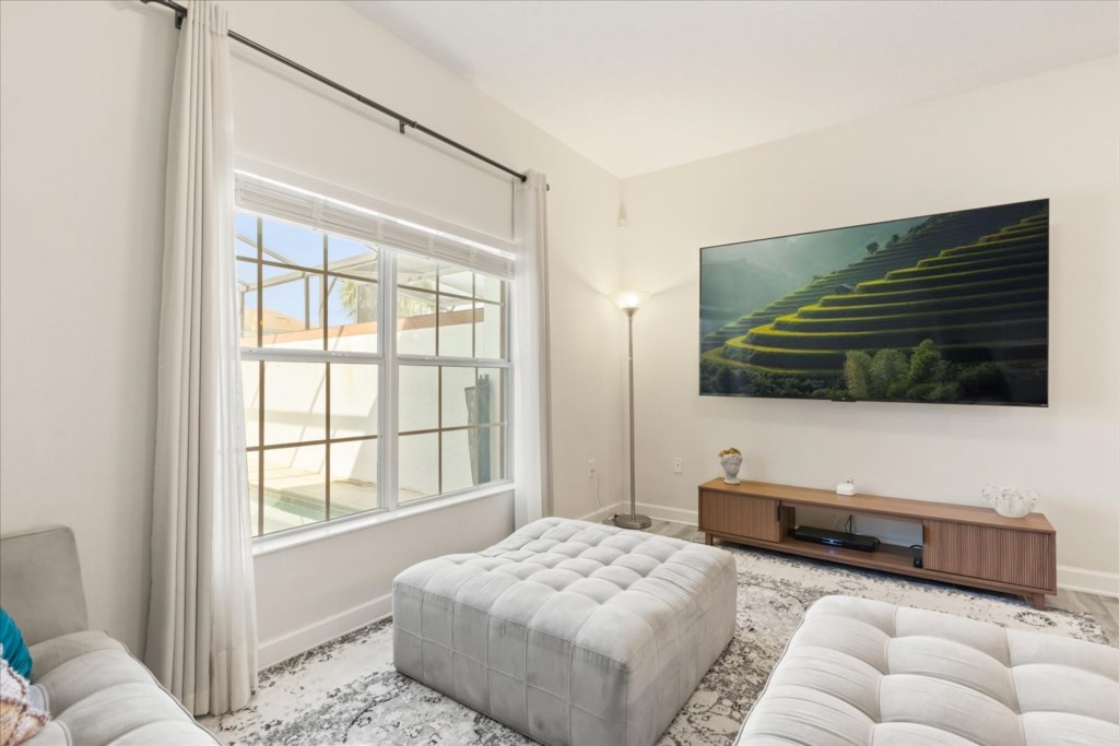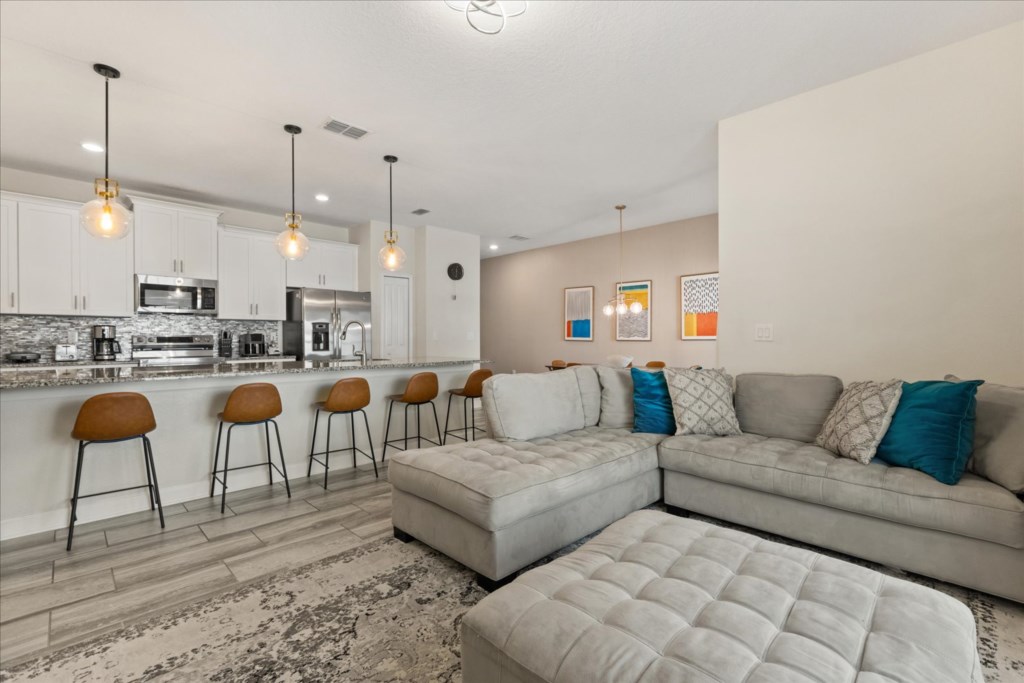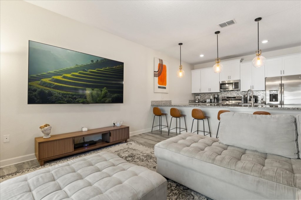 • Community: Champions Gate• 4 Bedrooms/ 3 Bathrooms/ Sleeps 8• Disney (9.4 mi) SeaWorld (17.2 mi) Legoland (26.4 mi) • Convention Center (12.7 mi) Universal Studios (21.0 mi)• Location: Slice Way, Davenport FL 33896DETAILS • Central AC • Washer & Dryer • Free Cable TV & WIFI • Fully Equipped Kitchen • Towels & Linens Provided • Stainless Steel Appliances • Washcloths Are Not Provided • Family Room with Flat Screen TV • Hair Dryers, Iron & Ironing Board • Private Door Code for Each Guest Stay • Outdoor Patio Furniture with Sun Loungers • Pack 'n play/ High Chair (Free Upon Request) • Private Screened-in Pool + Child Safety Pool Fence - BEDROOM SETUP FIRST FLOOR Bedroom 1: 1 King Bed (Private Bathroom) SECOND FLOOR Bedroom 2: 1 King Bed (Private Bathroom) Bedroom 3: 2 Twin Beds + Bathroom In Hallway Bedroom 4: 2 Twin Beds - USEFUL INFORMATION • CHECKING IN AND OUT - Check-in after 4:00 PM - Checkout before 10:00 AM • CHAMPIONS GATE PARKING - Parking is free. - Limit of 6 vehicles per unit. - Vehicles parked on the street must face the correct direction (passenger side to curb) so as to not be parked against the flow of traffic. - Do not block driveways, sidewalks, fire lanes, fire hydrants, mailboxes or any access points. - Parking is not permitted on grass, playgrounds, or landscaped areas. - Double-parking or parking in a manner that creates a safety hazard is not allowed. - Commercial Vehicles, RV's, Trailers, Buses, Golf Carts or Boats are not allowed at Champions Gate. - Vehicles in disrepair or with expired registration may not be left in the street or common areas. - VEHICLES IN VIOLATION OF PARKING POLICY WILL BE TOWED AT THE GUEST'S EXPENSE. • THIS HOME IS SELF-CATERING We do provide a small welcome kit to get you started. Please stop by the nearest supermarket to gather any additional items you may need for the duration of your stay. • POOL HEAT - OPTIONAL 1-Cost: $35 per day. 2-Minimum: 2 consecutive days. 3-Temperature will not exceed 95F. 4-Must be requested 48h in advance. 5-Attached spa is NOT a jacuzzi. It does not have jets. It can only be heated if the entire pool is heated. They both will have the same temperature. 6-Heater works through HEAT EXCHANGE and WILL NOT WORK in cold weather. If you still would like to heat the pool during cold conditions and it does not reach the desired temperature, we will not be able to offer a refund. Our pool heater pumps have a safety system that prevents overheating of the element when the pump is working overtime in cold weather conditions. This way causes a temporary shut off of services automatically until the pump can regain its functionality efficiently. This is optional and may not be available at times. • BBQ RENTAL - OPTIONAL - Cost: $75 All Stay • TRASH DISPOSAL Please place trash in the plastic bench daily to keep a clean home. • HOUSEKEEPING There is no daily housekeeping service provided in the rental rate. Before check-in, the unit will be thoroughly cleaned and inspected by a professional cleaning company. Clean sheets and towels will be available in the unit. Mid-stay cleaning services during your stay can be requested for an additional fee. • ONLINE PURCHASE If the online seller uses USPS, it will not get delivered as the Post Office does not recognize vacation homes as regular addresses and the package will be returned back to the sender. Only UPS, DHL and FEDEX delivers them. In some resorts the packages are delivered to the clubhouse. Fees may apply. Some resorts may not accept them. Keep in mind we are not responsible for unexpected issues with your online purchases. If you have any questions, please contact us. THE OASIS CLUB - Champions Gate • Tot Lot • Arcade Room • Splash Zone • Movie Theater • Fitness Center • Gated Community • Rentable Cabanas • Pool Side Tiki Bar • Grill Room Restaurant • On-site sundries shop • Huge Resort-Style Pool • Tennis & Sand Volleyball Courts • ChampionsGate Country Club Golf Course • 1,023 sq.ft. Lazy River + Two-Story Waterslide THE RETREAT CLUB - Champions Gate • Loungers • Mini Golf • Splash Pad • Resort Pool • Water Slides RESORT REGISTRATION NEEDED AFTER BOOKING CONFIRMATION. PLEASE NOTE: Additional charges apply when the owner has to fix something or pay for additional cleaning if not complied.