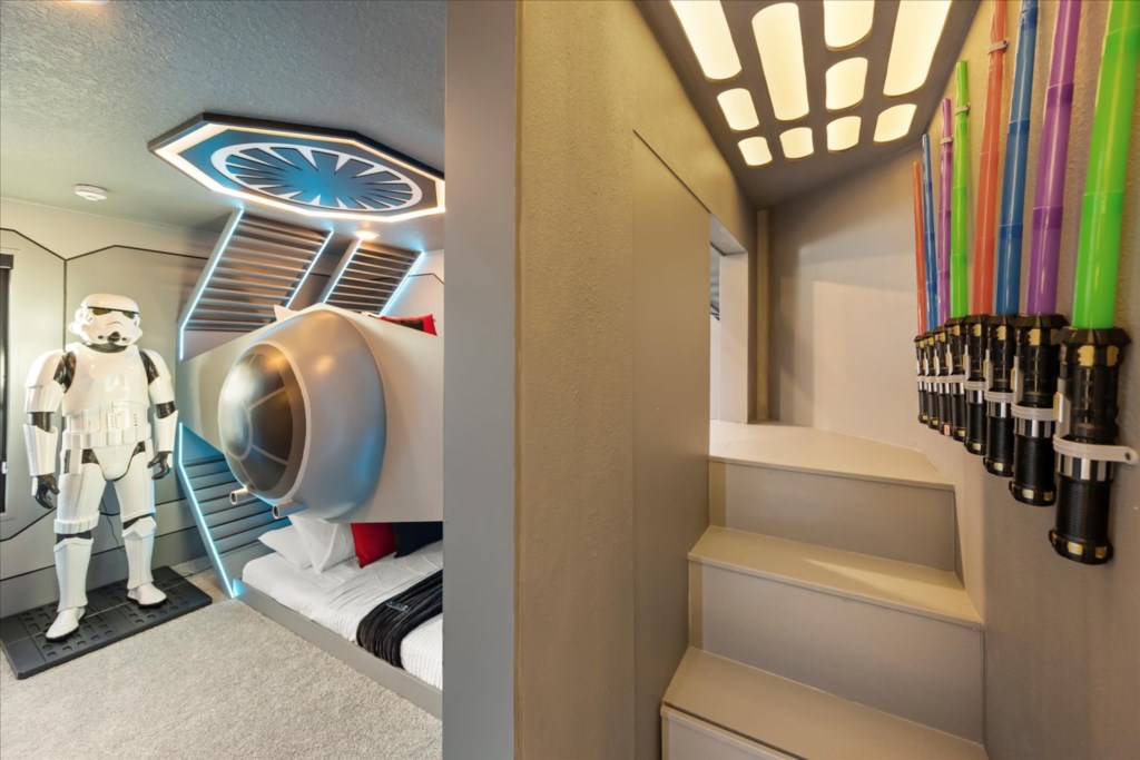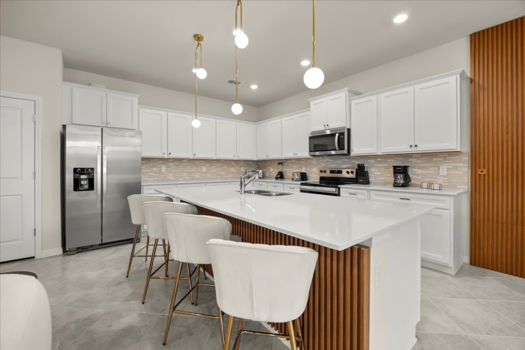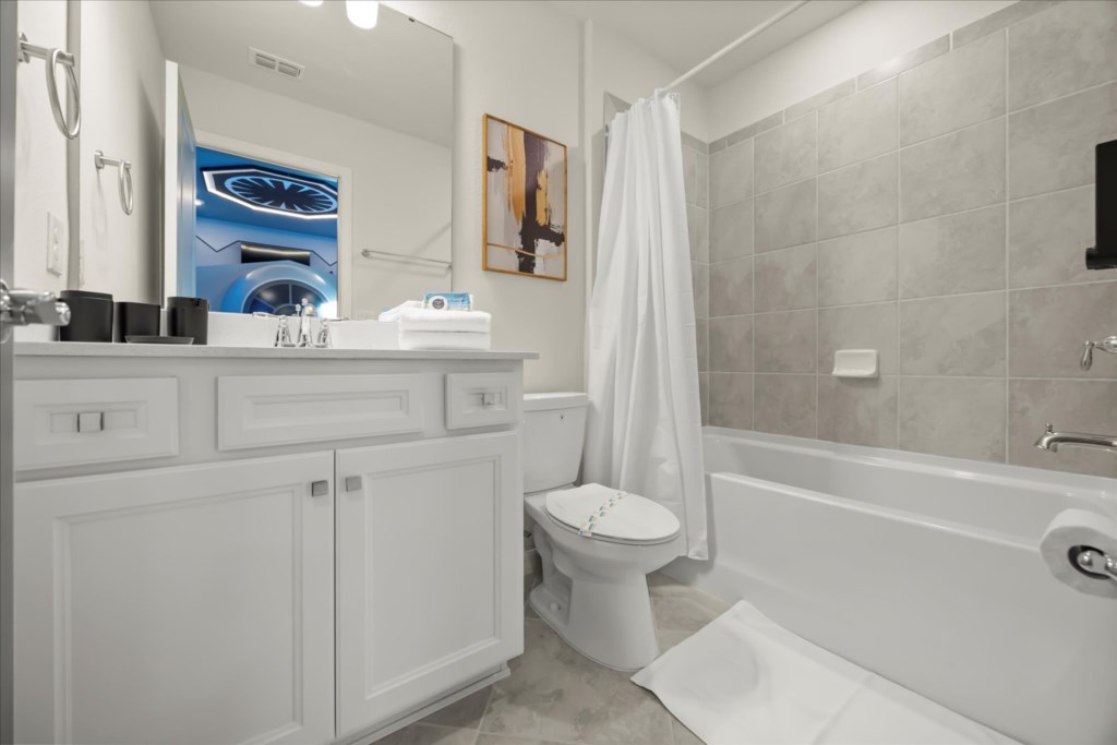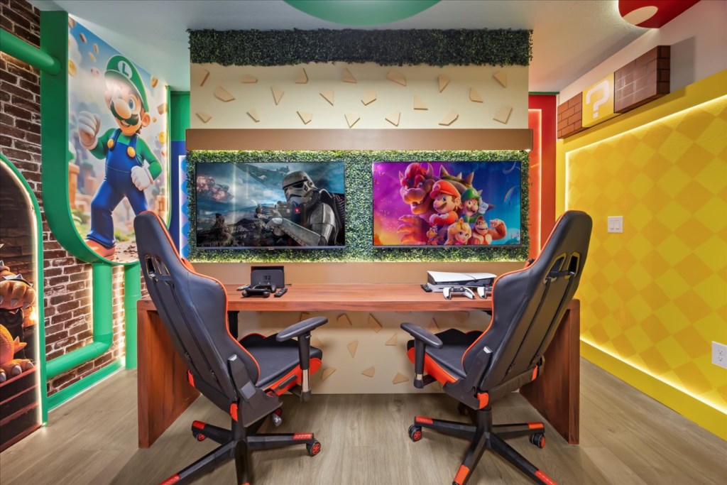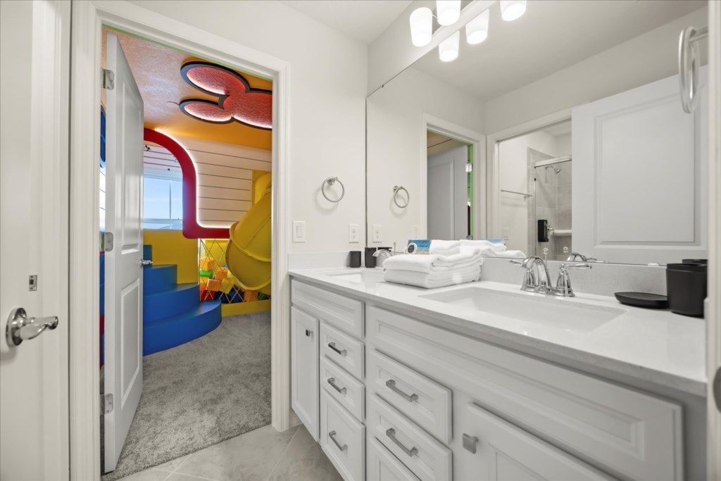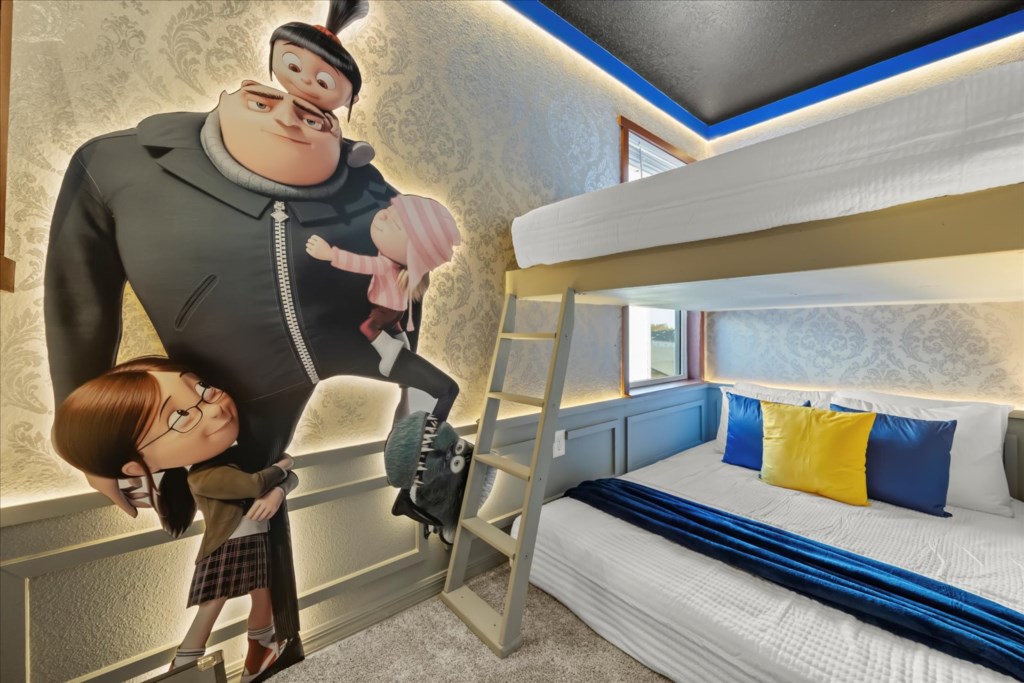• Community: Windsor Cay • 10 Bedrooms/ 8 Bathrooms/ Sleeps 28 • Disney World® (8.2 miles) SeaWorld (18.5 miles) • Convention Center (19.5 miles) ICON Park (20.9 miles) • Universal Studios (22.3 miles) Epic Universe (20.9 miles) • Location: Coastal Cove Lane, Clermont FL 34714 DETAILS • 4,034 sqft • Central AC • Cable TV & Wi-Fi • Washer & Dryer • Gated Community • TV In Every Bedroom • Fully Equipped Kitchen • Towels & Linens Provided • Washcloths Are Not Provided • Family Room with Flat Screen TV • Hair Dryers, Iron & Ironing Board • Private Door Code for Each Guest Stay • Outdoor Patio Furniture with Sun Loungers • Pack 'n play/ High Chair (Free Upon Request) • Private Screened-in Pool + Child Safety Pool Fence - BEDROOM SETUP FIRST FLOOR Bedroom 1: 1 King Bed + Bathroom In Hallway Bedroom 2: 1 King Bed + Attached Bathroom Shared With Pool SECOND FLOOR Bedroom 3: 1 King Bedroom 4: 1 Bunk Bed (Full Over Full) (Mickey Room) + Shared Bathroom Between Bedrooms 3 and 4 Bedroom 5: 1 King Bed (Private Bathroom) Bedroom 6: 1 Bunk Bed (Full Over Full) (Harry Potter Room) Bedroom 7: 1 Bunk Bed (Full Over Full) (Minions Room) + Shared Bathroom Between Bedrooms 6 & 7 Bedroom 8: 1 King Bed (Private Bathroom) Bedroom 9: 1 Queen Bed (Private Bathroom) Bedroom 10: 1 Bunk Bed (Full Over Full) (Private Bathroom) (Star Wars Room) - USEFUL INFORMATION • CHECKING IN AND OUT - Check-in after 4:00 PM - Checkout before 10:00 AM • WINDSOR CAY PARKING - Parking is free. - 2 vehicles per unit in the driveway + 2 in the garage. - No parking on the street. (Since it is a new community, they will not enforce this rule until the signs are placed.) - No parking on grass or blocking the sidewalks. - Registered guests cannot share their parking passes with unregistered visitors. - Commercial Vehicles, RV's, Trailers, Buses, Golf Carts or Boats are not allowed at Windsor Cay. - Vehicle in violation of parking policy will be towed at the guest's expense. • POOL HEAT - OPTIONAL 1-Cost: $35 per day. 2-Minimum: 2 consecutive days. 3-Temperature will not exceed 95F. 4-Must be requested 48h in advance. 5-Attached spa is NOT a hot tub. It can only be heated if the entire pool is heated. They both will have the same temperature. It does not have jets. 6-Heater works through HEAT EXCHANGE and WILL NOT WORK in cold weather. If you still would like to heat the pool during cold conditions and it does not reach the desired temperature, we will not be able to offer a refund. The pool heater pumps have a safety system that prevents overheating of the element when the pump is working overtime in cold weather. It automatically shuts off briefly until the pump can regain its functionality efficiently. Keep in mind this service is optional and may not be available at times. • BBQ RENTAL - OPTIONAL - Cost: $75 All Stay • THIS HOME IS SELF-CATERING We do provide a small welcome kit to get you started. You can stop by the nearest supermarket to gather any additional items you may need for the duration of your stay. Please bring your own washcloths as we only provide towels. • TRASH DISPOSAL Please place trash in the plastic bin daily to keep a clean home. • HOUSEKEEPING There is no daily housekeeping service provided in the rental rate. Before check-in, the unit will be thoroughly cleaned and inspected by a professional cleaning company. Clean sheets and towels will be available in the unit. Mid-stay cleaning services during your stay can be requested for an additional fee. • ONLINE PURCHASE If the online seller uses USPS, it will not get delivered as the Post Office does not recognize vacation homes as regular addresses and the package will be returned back to the sender. Only UPS, DHL and FEDEX delivers them. In some resorts the packages are delivered to the clubhouse. Fees may apply. Some resorts may not accept them. Keep in mind we are not responsible for unexpected issues with your online purchases. If you have any questions, please contact us. • REEF CLUB - Windsor Cay Resort - Arcade - Lazy River - Fitness Center - Family Cabanas - 9-Hole Mini Golf - Dual Water Slides - Gated Community - Volleyball & Cornhole - Children's Splash Pad - Outdoor Covered Bar - Blue Lagoon Bar & Grille - Resort-Style Zero-Entry Pool Resort registration needed. PLEASE NOTE: Additional charges apply when the owner has to fix something or pay for additional cleaning if not complied.