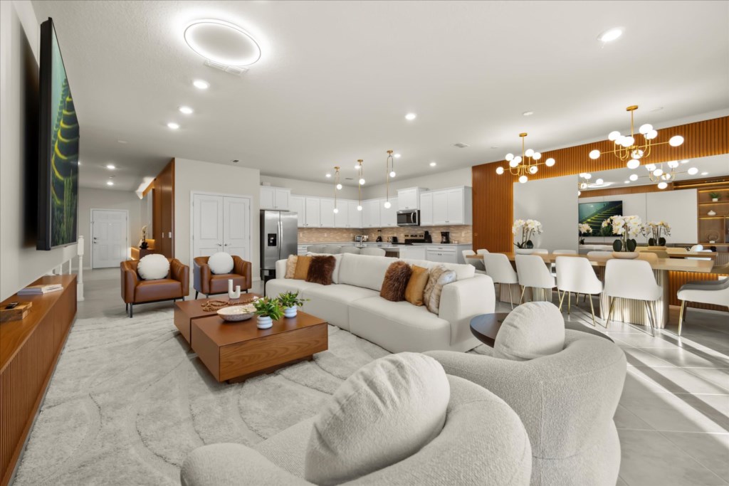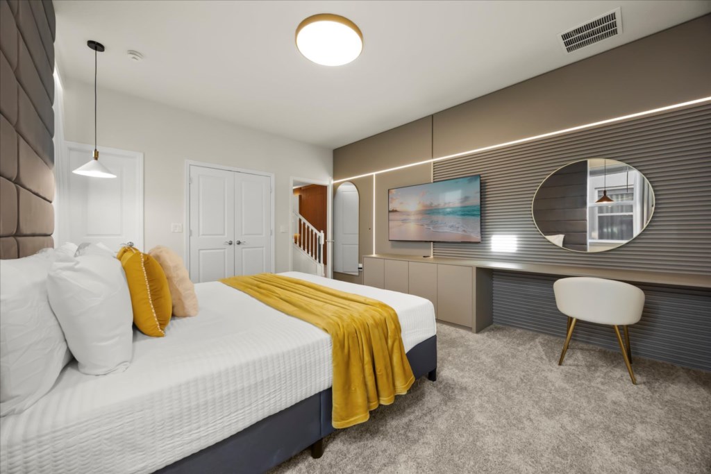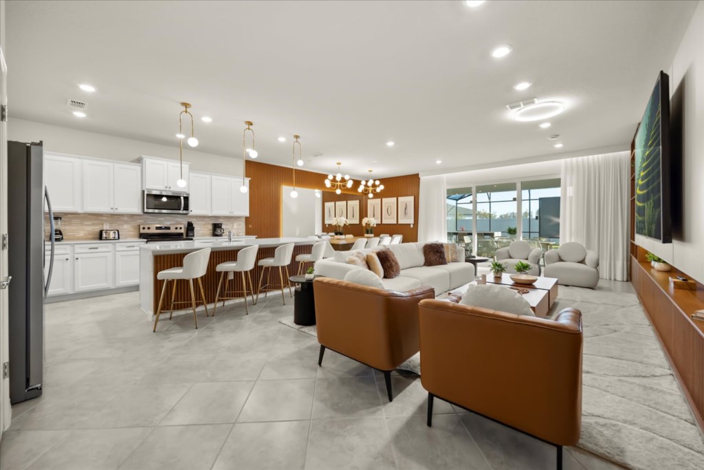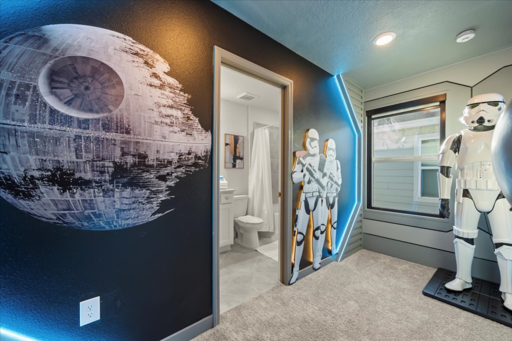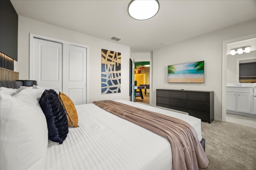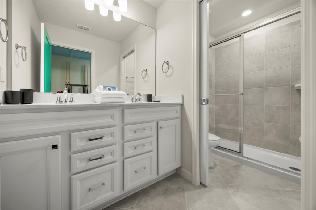 • Community: Windsor Cay • 10 Bedrooms/ 8 Bathrooms/ Sleeps 28 • Disney World® (8.2 miles) SeaWorld (18.5 miles) • Convention Center (19.5 miles) ICON Park (20.9 miles) • Universal Studios (22.3 miles) Epic Universe (20.9 miles) • Location: Coastal Cove Lane, Clermont FL 34714 DETAILS • 4,034 sqft • Central AC • Cable TV & Wi-Fi • Washer & Dryer • Gated Community • TV In Every Bedroom • Fully Equipped Kitchen • Towels & Linens Provided • Washcloths Are Not Provided • Family Room with Flat Screen TV • Hair Dryers, Iron & Ironing Board • Private Door Code for Each Guest Stay • Outdoor Patio Furniture with Sun Loungers • Pack 'n play/ High Chair (Free Upon Request) • Private Screened-in Pool + Child Safety Pool Fence - BEDROOM SETUP FIRST FLOOR Bedroom 1: 1 King Bed + Bathroom In Hallway Bedroom 2: 1 King Bed + Attached Bathroom Shared With Pool SECOND FLOOR Bedroom 3: 1 King Bedroom 4: 1 Bunk Bed (Full Over Full) (Mickey Room) + Shared Bathroom Between Bedrooms 3 and 4 Bedroom 5: 1 King Bed (Private Bathroom) Bedroom 6: 1 Bunk Bed (Full Over Full) (Harry Potter Room) Bedroom 7: 1 Bunk Bed (Full Over Full) (Minions Room) + Shared Bathroom Between Bedrooms 6 & 7 Bedroom 8: 1 King Bed (Private Bathroom) Bedroom 9: 1 Queen Bed (Private Bathroom) Bedroom 10: 1 Bunk Bed (Full Over Full) (Private Bathroom) (Star Wars Room) - USEFUL INFORMATION • CHECKING IN AND OUT - Check-in after 4:00 PM - Checkout before 10:00 AM • WINDSOR CAY PARKING - Parking is free. - 2 vehicles per unit in the driveway + 2 in the garage. - No parking on the street. (Since it is a new community, they will not enforce this rule until the signs are placed.) - No parking on grass or blocking the sidewalks. - Registered guests cannot share their parking passes with unregistered visitors. - Commercial Vehicles, RV's, Trailers, Buses, Golf Carts or Boats are not allowed at Windsor Cay. - Vehicle in violation of parking policy will be towed at the guest's expense. • POOL HEAT - OPTIONAL 1-Cost: $35 per day. 2-Minimum: 2 consecutive days. 3-Temperature will not exceed 95F. 4-Must be requested 48h in advance. 5-Attached spa is NOT a hot tub. It can only be heated if the entire pool is heated. They both will have the same temperature. It does not have jets. 6-Heater works through HEAT EXCHANGE and WILL NOT WORK in cold weather. If you still would like to heat the pool during cold conditions and it does not reach the desired temperature, we will not be able to offer a refund. The pool heater pumps have a safety system that prevents overheating of the element when the pump is working overtime in cold weather. It automatically shuts off briefly until the pump can regain its functionality efficiently. Keep in mind this service is optional and may not be available at times. • BBQ RENTAL - OPTIONAL - Cost: $75 All Stay • THIS HOME IS SELF-CATERING We do provide a small welcome kit to get you started. You can stop by the nearest supermarket to gather any additional items you may need for the duration of your stay. Please bring your own washcloths as we only provide towels. • TRASH DISPOSAL Please place trash in the plastic bin daily to keep a clean home. • HOUSEKEEPING There is no daily housekeeping service provided in the rental rate. Before check-in, the unit will be thoroughly cleaned and inspected by a professional cleaning company. Clean sheets and towels will be available in the unit. Mid-stay cleaning services during your stay can be requested for an additional fee. • ONLINE PURCHASE If the online seller uses USPS, it will not get delivered as the Post Office does not recognize vacation homes as regular addresses and the package will be returned back to the sender. Only UPS, DHL and FEDEX delivers them. In some resorts the packages are delivered to the clubhouse. Fees may apply. Some resorts may not accept them. Keep in mind we are not responsible for unexpected issues with your online purchases. If you have any questions, please contact us. • REEF CLUB - Windsor Cay Resort - Arcade - Lazy River - Fitness Center - Family Cabanas - 9-Hole Mini Golf - Dual Water Slides - Gated Community - Volleyball & Cornhole - Children's Splash Pad - Outdoor Covered Bar - Blue Lagoon Bar & Grille - Resort-Style Zero-Entry Pool Resort registration needed. PLEASE NOTE: Additional charges apply when the owner has to fix something or pay for additional cleaning if not complied.