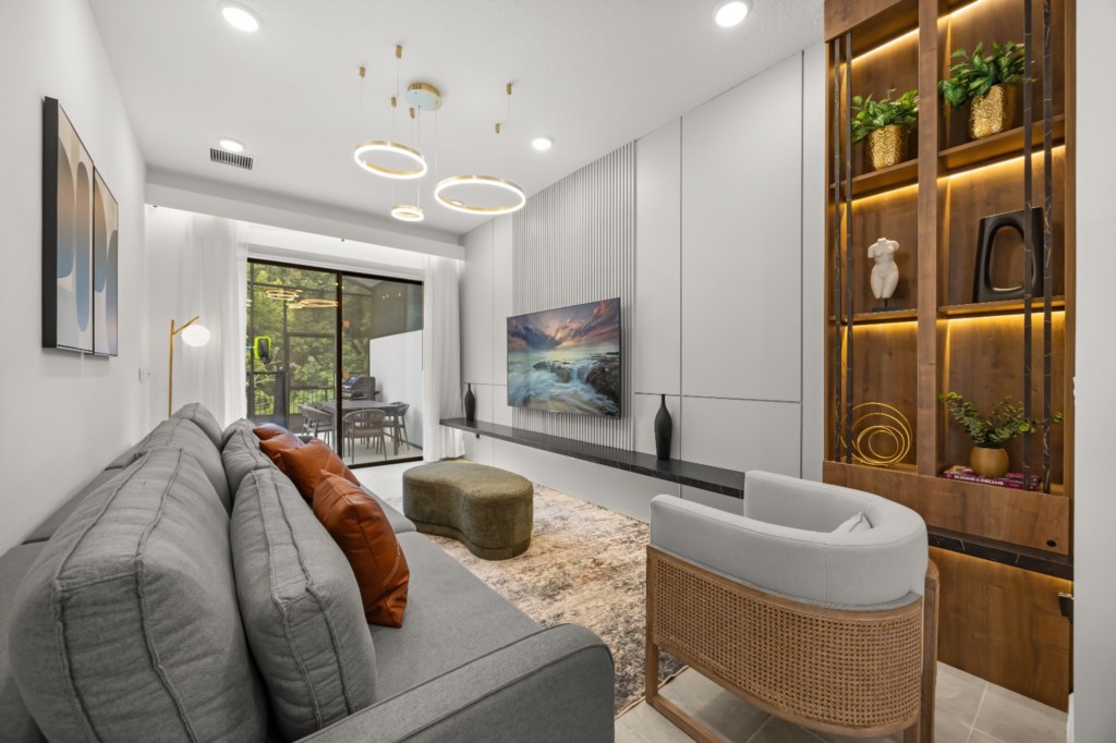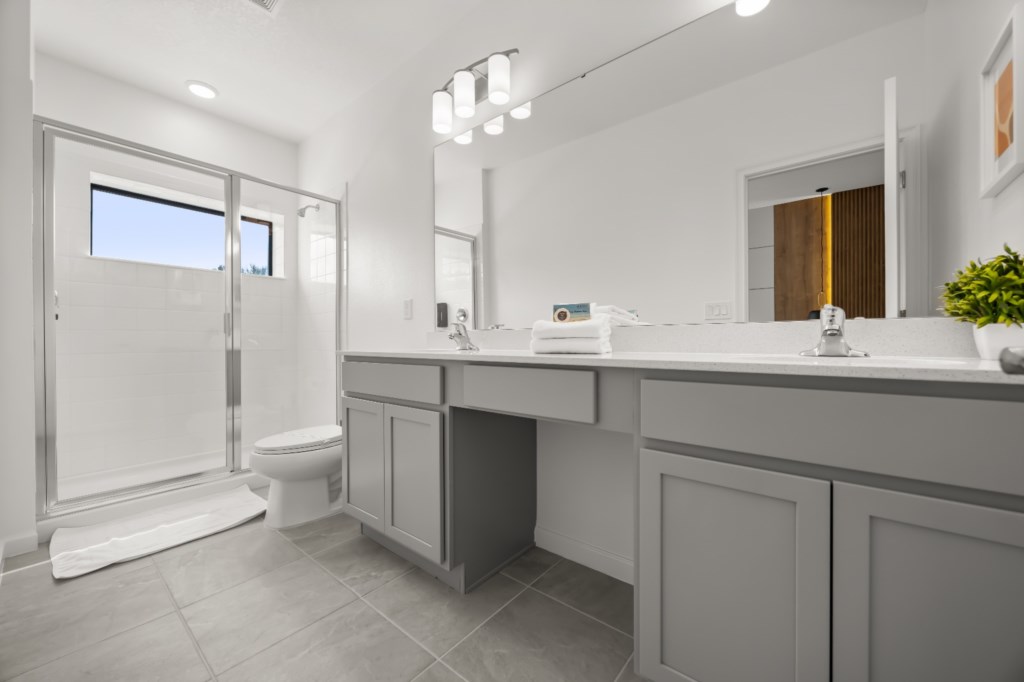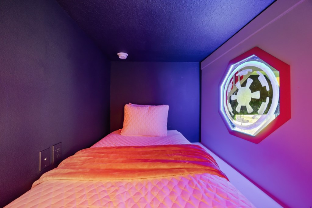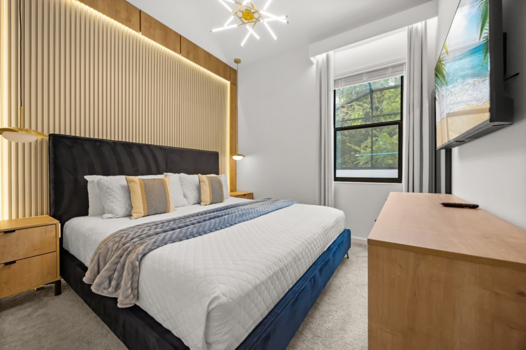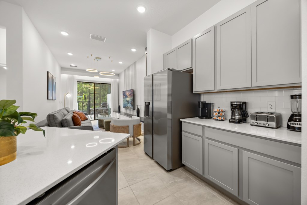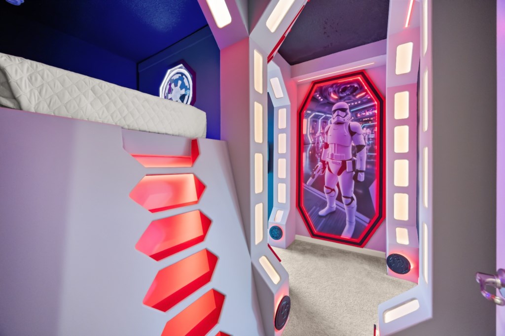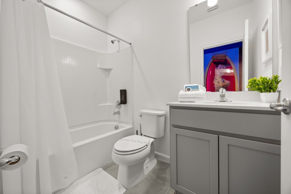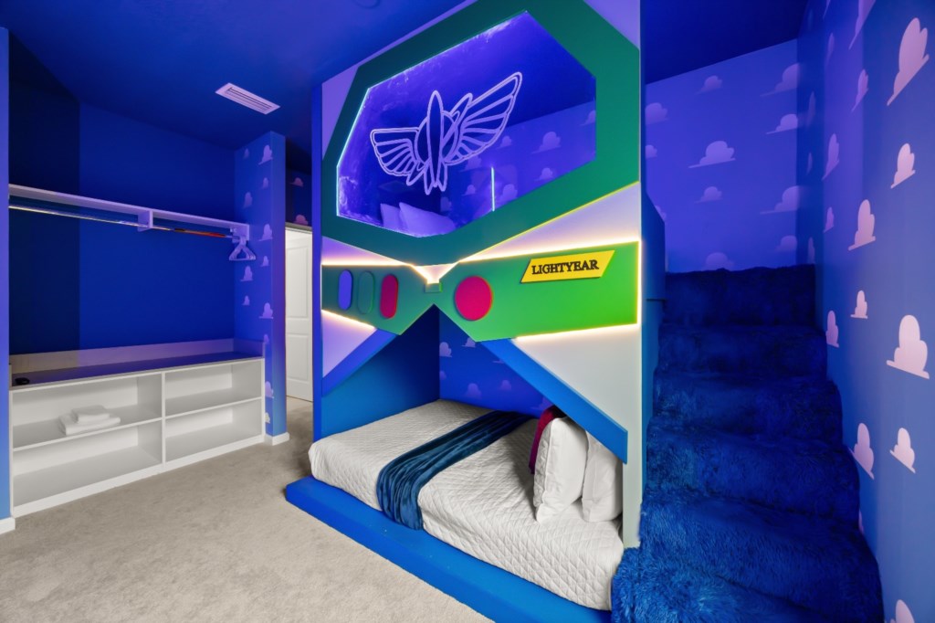 • Community: Paradiso Grande • 5 Bedrooms/ 5 Bathrooms/ Sleeps 12 • Disney (5.1 miles) SeaWorld (1.8 miles) ICON PARK (4.1 miles) • Convention Center (3.6 miles) Universal Studios (7.4 miles) • Location: Ebb Tide Lane, Orlando FL 32821 DETAILS • 1,918 sqft • Central AC • Washer & Dryer • TV In Every Bedroom • Free Cable TV & WIFI • Fully Equipped Kitchen • Towels & Linens Provided • Stainless Steel Appliances • Washcloths Are Not Provided • Family Room with Flat Screen TV • Hair Dryers, Iron & Ironing Board • Outdoor Patio Furniture & Sun Loungers • Pack 'n play/ High Chair (Free Upon Request) • Private Screened-in Pool + Child Safety Pool Fence - BEDROOM SETUP FIRST FLOOR Bedroom 1: 1 King Bed + Bathroom In Hallway SECOND FLOOR Bedroom 2: 1 King Bed (Private Bathroom) Bedroom 3: 1 Bunk Bed (Twin Over Full) (Private Bathroom) (Star Wars) Bedroom 4: 1 Bunk Bed (Twin Over Full) (Private Bathroom) (Buzz Lightyear) Bedroom 5: 1 Full Bed (Private Bathroom) - USEFUL INFORMATION • CHECKING IN AND OUT - Check-in after 4:00 PM - Checkout before 10:00 AM • PARKING Parking is free. Driveway parking. Street parking is not permitted. There are overflow parking lots throughout the community and also behind the clubhouse . There is no vehicle limit. Commercial vehicles, RV's, trailers, buses, golf carts or boats are not allowed at Paradiso Grande. • THIS HOME IS SELF-CATERING We do provide a small welcome kit to get you started. Please stop by the nearest supermarket to gather any additional items you may need for the duration of your stay. • POOL HEAT - OPTIONAL 1-Cost: $35 per day. 2-Minimum: 2 consecutive days. 3-Temperature will not exceed 95F. 4-Must be requested 48h in advance. 5-Heater works through HEAT EXCHANGE and WILL NOT WORK in cold weather. If you still would like to heat the pool during cold conditions and it does not reach the desired temperature, we will not be able to offer a refund. The pool heater pumps have a safety system that prevents overheating of the element when the pump is working overtime in cold weather. It automatically shuts off briefly until the pump can regain its functionality efficiently. Keep in mind this service is optional and may not be available at times. • BBQ RENTAL - OPTIONAL - Cost: $75 All Stay • TRASH DISPOSAL There is valet trash bin at the side of the home. All trash needs to be bagged in plastic trash bag. Trash is picked up every morning shortly after 9AM. No trash can sit outside overnight. If you want to dispose it, there is a dumpster in the parking lot behind the clubhouse. • HOUSEKEEPING There is no daily housekeeping service provided in the rental rate. Before check-in, the unit will be thoroughly cleaned and inspected by a professional cleaning company. Clean sheets and towels will be available in the unit. Mid-stay cleaning services during your stay can be requested for an additional fee. • ONLINE PURCHASE If the online seller uses USPS, it will not get delivered as the Post Office does not recognize vacation homes as regular addresses and the package will be returned back to the sender. Only UPS, DHL and FEDEX delivers them. In some resorts the packages are delivered to the clubhouse. Fees may apply. Some resorts may not accept them. Keep in mind we are not responsible for unexpected issues with your online purchases. If you have any questions, please contact us. PARADISO GRANDE AMENITIES • Cafe • Fitness Center • Sundries Stand • Gated Community • Game & Activities Room • Lobby with Furniture and TV • Electric Car Charging Stations • Resort Pool & Lazy River With Waterfall PLEASE NOTE: Additional charges apply when the owner has to fix something or pay for additional cleaning if not complied.