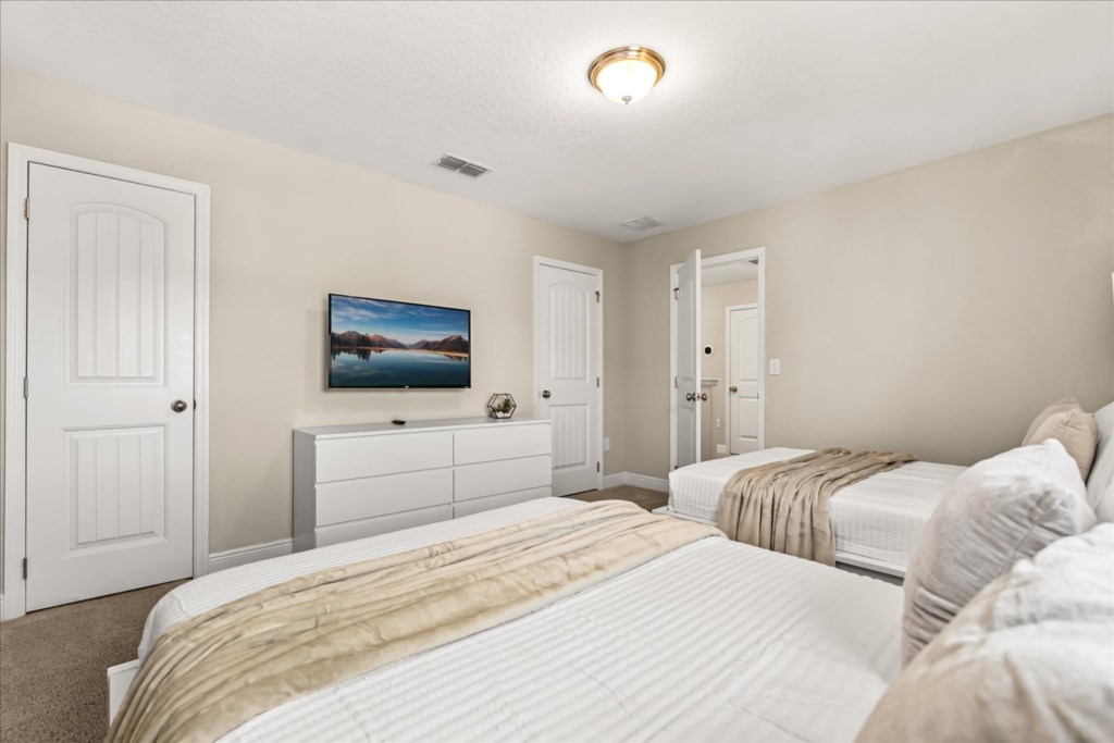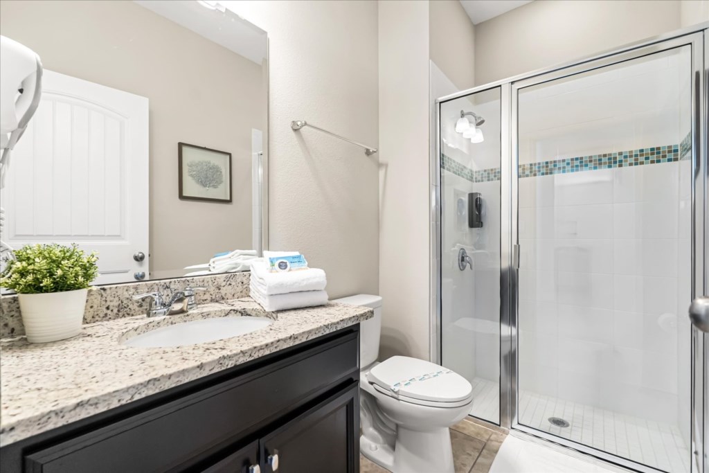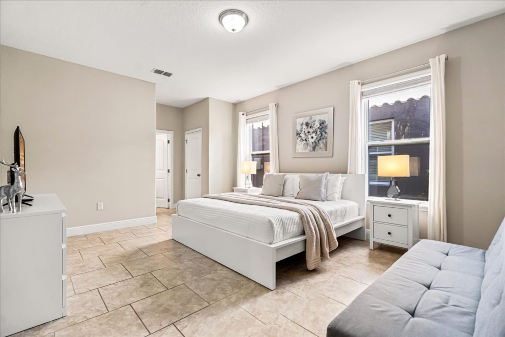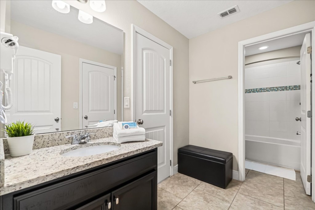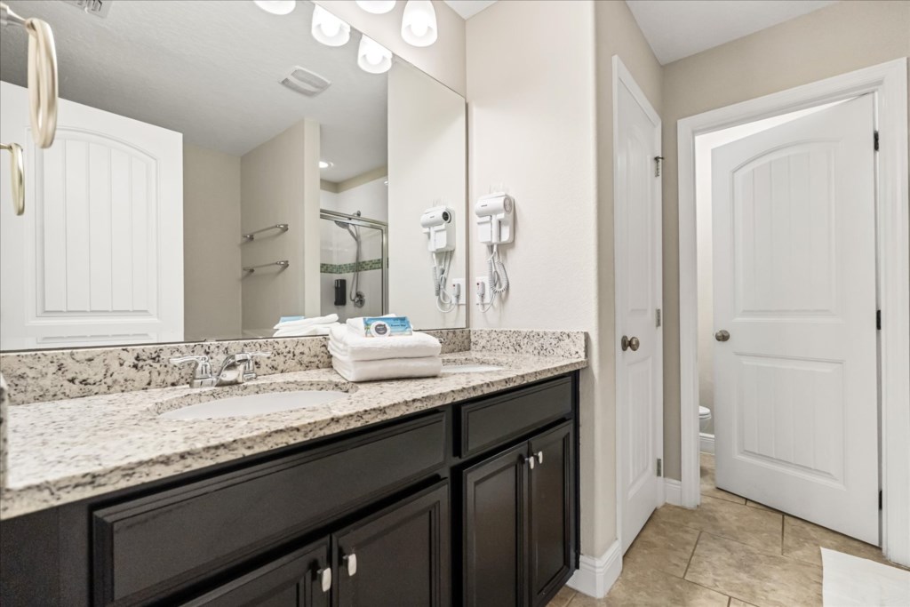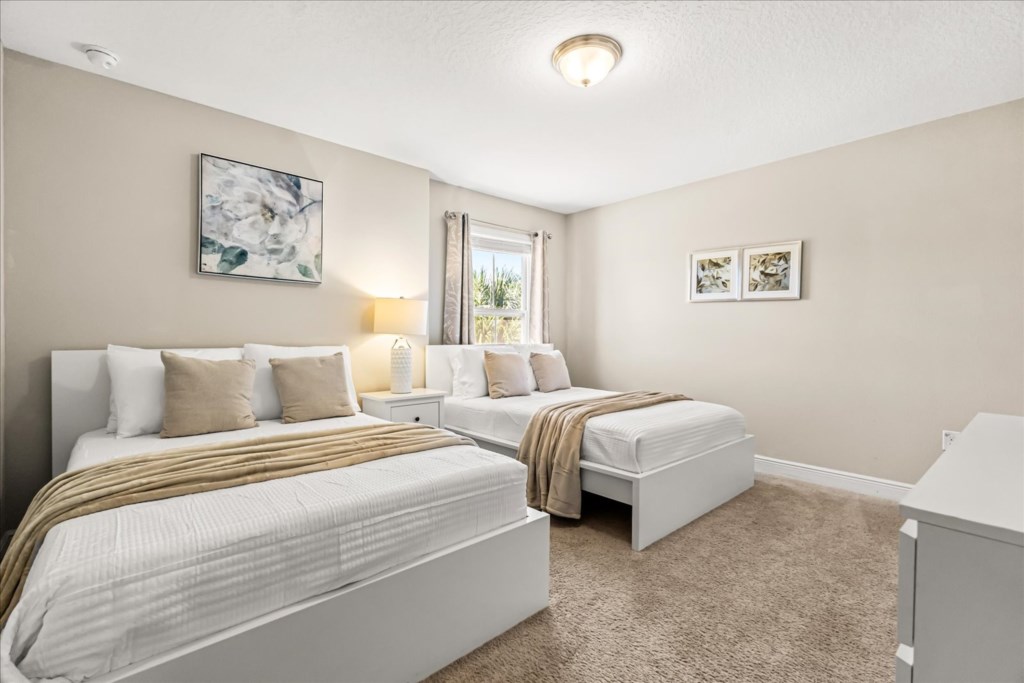 • Community: Solterra Resort • 6 Bedrooms/ 5.5 Bathrooms/ Sleeps 14 • Disney (11 miles) SeaWorld (17 miles) Legoland (33 miles) • Convention Center (12 miles) Universal Studios (20 miles) • Location: Wildwood Way, Davenport FL 33837 DETAILS • Central AC • Roku & Wi-Fi • Washer & Dryer • Fully Equipped Kitchen • Towels & Linens Provided • Washcloths Are Not Provided • Famiy Room With Flat Screen TV • Hair Dryers, Iron and Ironing Board • Private Door Code for Each Guest Stay • Outdoor Patio Furniture with Sun Loungers • Pack 'n play/ High Chair (Free Upon Request) • Private Screened-in Pool + Child Safety Pool Fence SOLTERRA RESORT AMENITIES * ONE-TIME FEE PER HOUSE PER RESERVATION Must be paid directly to Solterra Resort. • Jacuzzi • Clubhouse • Lazy River • Waterslide • Playground • Soccer Field • Tennis Court • Walking Trail • Fitness Center • Beach Volleyball • Poolside Cabanas • Gated Community • Cafe Sol Poolside Bar & Grill • Resort Style Pool with Beach Entry - USEFUL INFORMATION • PARKING Parking is free. The community allows up to 5 cars per unit to enter the resort. Vehicles must not be parked on the sidewalk nor on the grass. Street parking is not pemitted. There are overflow parking spaces, but not guaranteed as they are not assigned nor reserved. Commercial Vehicles, RVS, Trailers, Buses, Golf Carts or Boats are not allowed at Solterra Resort. > Failure to follow the community guidelines may result in the car being towed at the guest's expense. • THIS HOME IS SELF-CATERING We do provide a small welcome kit to get you started. Please stop by the nearest supermarket to gather any additional items you may need for the duration of your stay. • POOL HEAT - OPTIONAL 1-Cost: $35 per day. 2-Minimum: 2 consecutive days. 3-Temperature will not exceed 95F. 4-Must be requested 48h in advance. 5-Attached spa is NOT a hot tub. It can only be heated if the entire pool is heated. They both will have the same temperature. It does not have jets. 6-Heater works through HEAT EXCHANGE and WILL NOT WORK in cold weather. If you still would like to heat the pool during cold conditions and it does not reach the desired temperature, we will not be able to offer a refund. The pool heater pumps have a safety system that prevents overheating of the element when the pump is working overtime in cold weather. It automatically shuts off briefly until the pump can regain its functionality efficiently. Keep in mind this service is optional and may not be available at times. • BBQ RENTAL - OPTIONAL - Cost: $75 All Stay • BEDROOM SETUP 1ST FLOOR: Bedroom 1: 1 King Bed (Private Bathroom) + Bathroom Shared With Pool + Half Bathroom 2ND FLOOR: Bedroom 2: 1 King Bed (Private Bathroom) Bedroom 3: 1 Queen Bed Bedroom 4: 1 Queen Bed + Shared Bathroom Between Bedrooms 3 & 4 Bedroom 5: 1 Queen Bed Bedroom 6: 2 Full Beds + Shared Bathroom Between Bedrooms 5 & 6 • TRASH DISPOSAL Please place trash in the plastic bench daily to keep a clean home. • HOUSEKEEPING There is no daily housekeeping service provided in the rental rate. Before check-in, the unit will be thoroughly cleaned and inspected by a professional cleaning company. Clean sheets and towels will be available in the unit. Mid-stay cleaning services during your stay can be requested for an additional fee. • ONLINE PURCHASE If the online seller uses USPS, it will not get delivered as the Post Office does not recognize vacation homes as regular addresses and the package will be returned back to the sender. Only UPS, DHL and FEDEX delivers them. In some resorts the packages are delivered to the clubhouse. FEES MAY APPLY. Some resorts may not accept them. Keep in mind we are not responsible for unexpected issues with your online purchases. If you have any questions, please contact us. PLEASE NOTE: Additional charges apply when the owner has to fix something or pay for additional cleaning if not complied.