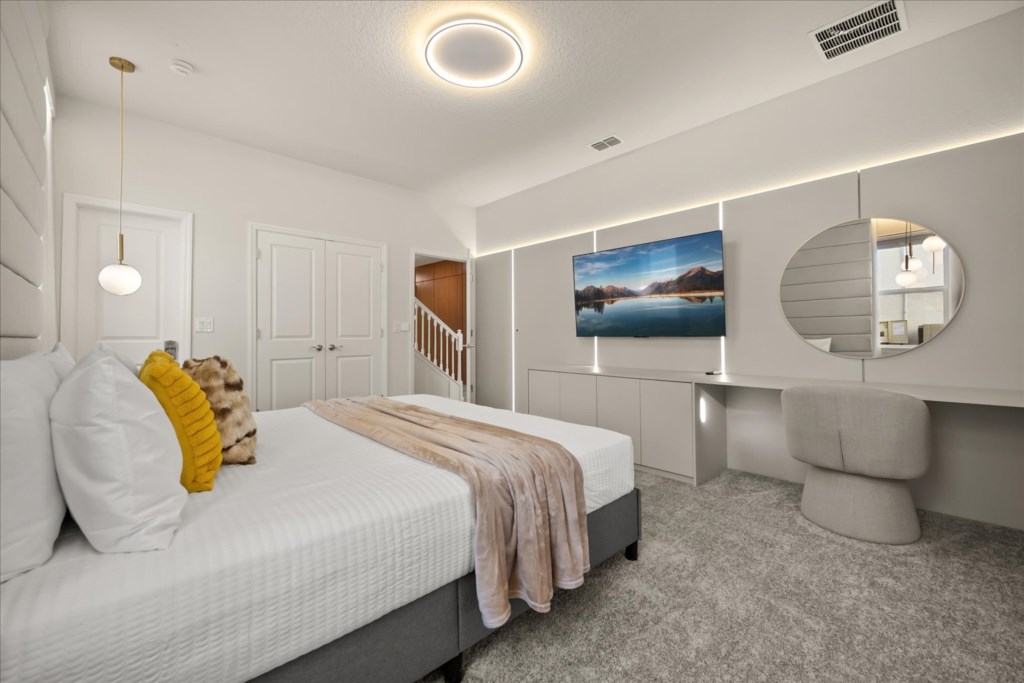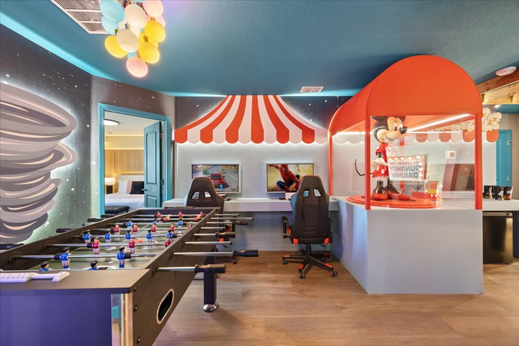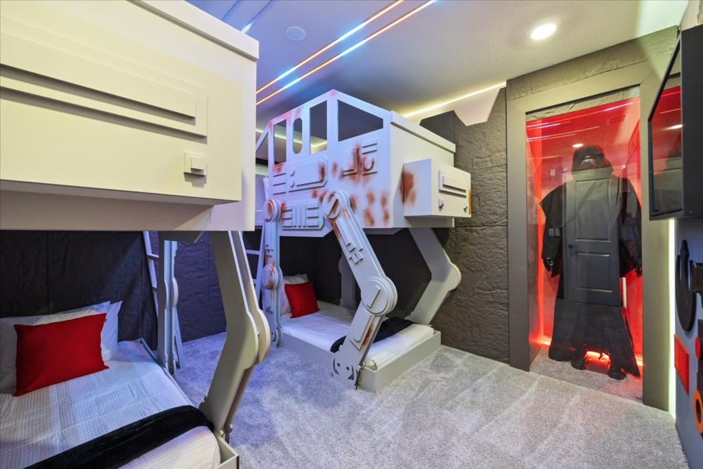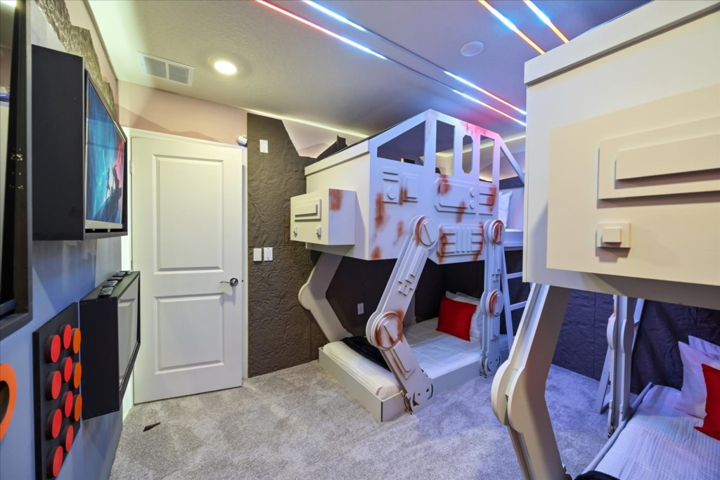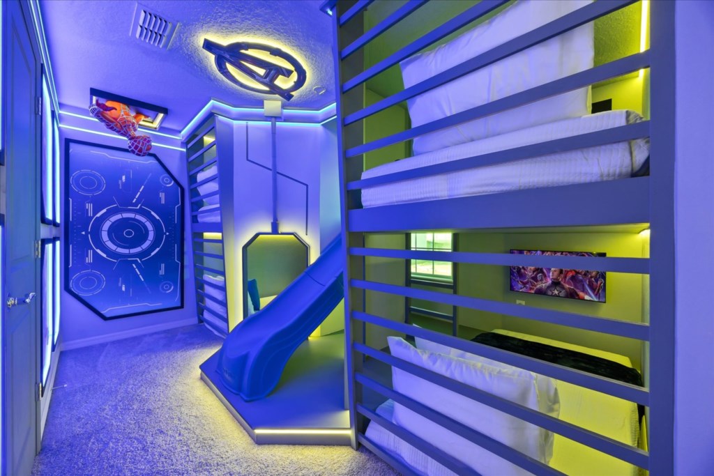 • Community: Windsor Cay • 10 Bedrooms/ 8 Bathrooms/ Sleeps 28 • Disney World® (8.2 miles) SeaWorld (18.5 miles) • Convention Center (19.5 miles) ICON Park (20.9 miles) • Universal Studios (22.3 miles) Epic Universe (20.9 miles) • Location: Coastal Cove Lane, Clermont FL 34714 DETAILS • 4,034 sqft • Central AC • Cable TV & Wi-Fi • Washer & Dryer • Gated Community • TV In Every Bedroom • Fully Equipped Kitchen • Towels & Linens Provided • Washcloths Are Not Provided • Family Room with Flat Screen TV • Hair Dryers, Iron & Ironing Board • Private Door Code for Each Guest Stay • Outdoor Patio Furniture with Sun Loungers • Pack 'n play/ High Chair (Free Upon Request) • Private Screened-in Pool + Child Safety Pool Fence - BEDROOM SETUP FIRST FLOOR Bedroom 1: 1 King Bed + Bathroom In Hallway Bedroom 2: 1 King Bed + Attached Bathroom Shared With Pool SECOND FLOOR Bedroom 3: 1 Bunk Bed (Full Over Full) (Private Bathroom) (Mario Room) Bedroom 4: 1 Bunk Bed (Twin Over Twin) (Avengers Room) + Shared Bathroom Between Bedrooms 3 & 4 Bedroom 5: 1 King Bed (Private Bathroom) Bedroom 6: 1 Bunk Bed (Full Over Full) (Harry Potter Room) Bedroom 7: 2 Bunk Beds (Twin Over Twin) (Star Wars Room) + Shared Bathroom Between Bedrooms 6 & 7 Bedroom 8: 1 King Bed (Private Bathroom) Bedroom 9: 1 Queen Bed (Private Bathroom) Bedroom 10: 1 King Bed (Private Bathroom) - USEFUL INFORMATION • CHECKING IN AND OUT - Check-in after 4:00 PM - Checkout before 10:00 AM • WINDSOR CAY PARKING - Parking is free. - 2 vehicles per unit in the driveway + 2 in the garage. - No parking on the street. (Since it is a new community, they will not enforce this rule until the signs are placed.) - No parking on grass or blocking the sidewalks. - Registered guests cannot share their parking passes with unregistered visitors. - Commercial Vehicles, RV's, Trailers, Buses, Golf Carts or Boats are not allowed at Windsor Cay. - Vehicle in violation of parking policy will be towed at the guest's expense. • THIS HOME IS SELF-CATERING We do provide a small welcome kit to get you started. You can stop by the nearest supermarket to gather any additional items you may need for the duration of your stay. Please bring your own washcloths as we only provide towels. • POOL HEAT - OPTIONAL 1-Cost: $35 per day. 2-Minimum: 2 consecutive days. 3-Temperature will not exceed 95F. 4-Must be requested 48h in advance. 5-Attached spa is NOT a hot tub. It can only be heated if the entire pool is heated. They both will have the same temperature. It does not have jets. 6-Heater works through HEAT EXCHANGE and WILL NOT WORK in cold weather. If you still would like to heat the pool during cold conditions and it does not reach the desired temperature, we will not be able to offer a refund. The pool heater pumps have a safety system that prevents overheating of the element when the pump is working overtime in cold weather. It automatically shuts off briefly until the pump can regain its functionality efficiently. Keep in mind this service is optional and may not be available at times. • BBQ RENTAL - OPTIONAL - Cost: $75 All Stay • TRASH DISPOSAL Please place trash in the plastic bin daily to keep a clean home. • HOUSEKEEPING There is no daily housekeeping service provided in the rental rate. Before check-in, the unit will be thoroughly cleaned and inspected by a professional cleaning company. Clean sheets and towels will be available in the unit. Mid-stay cleaning services during your stay can be requested for an additional fee. • ONLINE PURCHASE If the online seller uses USPS, it will not get delivered as the Post Office does not recognize vacation homes as regular addresses and the package will be returned back to the sender. Only UPS, DHL and FEDEX delivers them. In some resorts the packages are delivered to the clubhouse. Fees may apply. Some resorts may not accept them. Keep in mind we are not responsible for unexpected issues with your online purchases. If you have any questions, please contact us. • REEF CLUB - Windsor Cay Resort - Arcade - Lazy River - Fitness Center - Family Cabanas - 9-Hole Mini Golf - Dual Water Slides - Gated Community - Volleyball & Cornhole - Children's Splash Pad - Outdoor Covered Bar - Blue Lagoon Bar & Grille - Resort-Style Zero-Entry Pool Resort registration needed. PLEASE NOTE: Additional charges apply when the owner has to fix something or pay for additional cleaning if not complied.