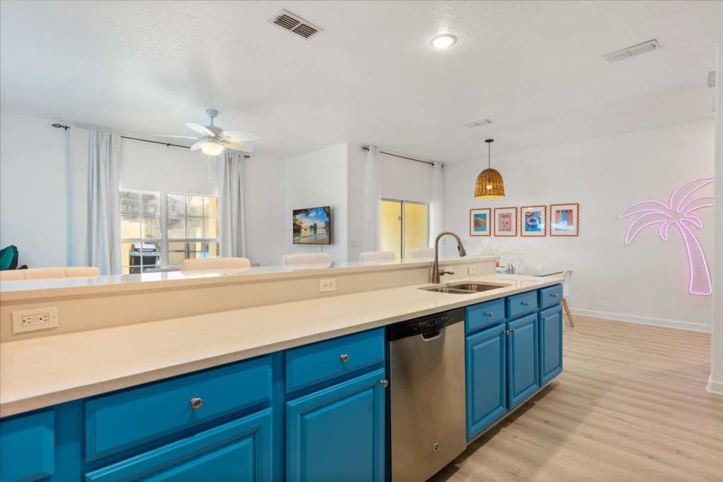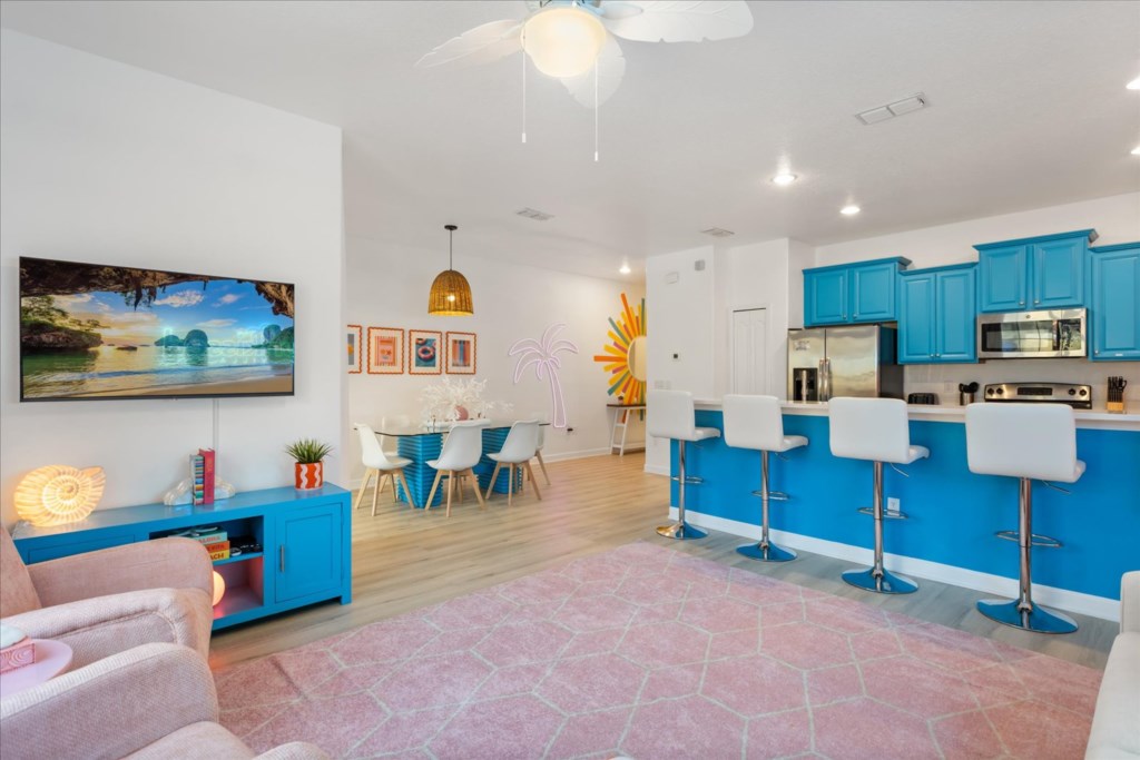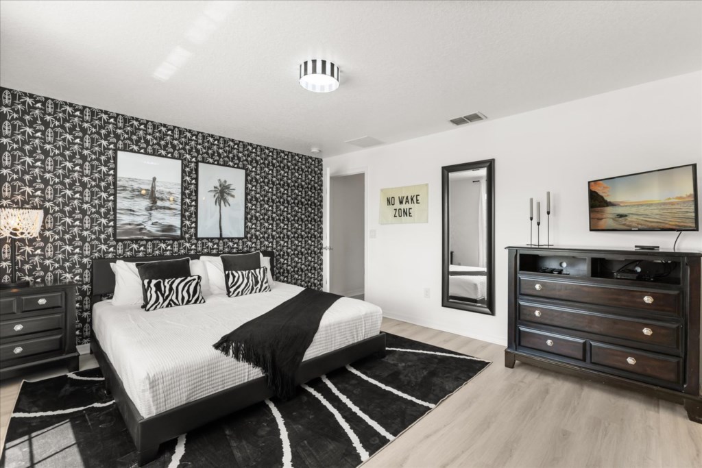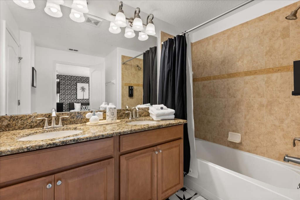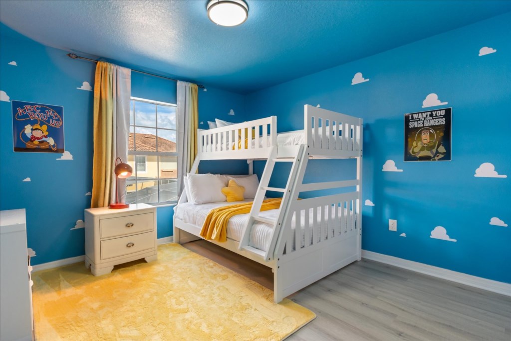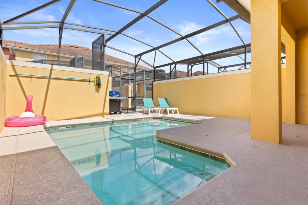 • Community: Paradise Palms • 4 Bedrooms/ 3 Bathrooms/ Sleeps 9• Disney (8 miles) SeaWorld (14 miles) Universal Studios (17 miles)• Convention Center (9 miles) Legoland (31 miles)• Location: Bismarck Palm Road, Kissimmee FL 34747 DETAILS • 1,902 sqft• Central AC • Washer & Dryer • Cable TV & Wi-Fi • TV In Every Bedroom • Fully Equipped Kitchen • Towels & Linens Provided • Washcloths Are Not Provided • Family Room with Flat Screen TV • Hair Dryers, Iron & Ironing Board • Private Door Code for Each Guest Stay • Outdoor Patio Furniture with Sun Loungers • Pack 'n play/ High Chair (Free Upon Request) • Private Screened-in Pool + Child Safety Pool Fence - BEDROOM SETUP FIRST FLOOR Bedroom 1: 1 King Bed + Bathroom In Hallway SECOND FLOOR Bedroom 2: 1 King Bed (Private Bathroom) Bedroom 3: 2 Twin Beds Bedroom 4: 1 Bunk Bed (Twin Over Full) + Bathroom In Hallway - USEFUL INFORMATION • CHECKING IN AND OUT - Check-in after 4:00 PM - Checkout before 10:00 AM • PARKING - Parking is free. - Commercial vehicles, RV's, trailers, buses, recreational vehicles, or watercraft is not permitted at Paradise Palms Resort. • THIS HOME IS SELF-CATERING We do provide a small welcome kit to get you started. Please stop by the nearest supermarket to gather any additional items you may need for the duration of your stay. • POOL HEAT - OPTIONAL 1-Cost: $35 per day. 2-Minimum: 2 consecutive days. 3-Temperature will not exceed 95F. 4-Must be requested 48h in advance. 5-Heater works through HEAT EXCHANGE and WILL NOT WORK in cold weather. If you still would like to heat the pool during cold conditions and it does not reach the desired temperature, we will not be able to offer a refund. The pool heater pumps have a safety system that prevents overheating of the element when the pump is working overtime in cold weather. It automatically shuts off briefly until the pump can regain its functionality efficiently. Keep in mind this service is optional and may not be available at times. • BBQ RENTAL - OPTIONAL - Cost: $75 All Stay • TRASH DISPOSAL Please dispose the trash daily in the plastic bench or dumpster to keep a clean home. • HOUSEKEEPING There is no daily housekeeping service provided in the rental rate. Before check-in, the unit will be thoroughly cleaned and inspected by a professional cleaning company. Mid-stay cleaning services during your stay can be requested for an additional fee. • ONLINE PURCHASE Paradise Palms Rules: Any mail with tracking numbers are considered packages. 30LB less - $10 per package Oversized packages athose weighing over 30 pounds are not accepted at the clubhouse. Packages will be held for up to 30 days. Packages not picked up within the time limit may be discarded. If the online seller uses USPS, it will not get delivered as the Post Office does not recognize vacation homes as regular addresses and the package will be returned back to the sender. Only UPS, DHL and FEDEX delivers them. Keep in mind we are not responsible for unexpected issues with your online purchases. If you have any questions, please contact us. Meals are delivered straight to the house. PARADISE PALMS RESORT AMENITIES • Jacuzzi • Splash Pad • Sundry Shop • Games Room • Walking Trail • Fitness Center • Pool Side Tiki Bar • Gated Community • Clubhouse Lounge • Volleyball, Tennis & Basketball Courts • Movie theater – movies and times posted by theater door • Children’s play area with multi-deck climbing frame with slides and swings. • Resort-style 5,000 sq. ft. lagoon pool complete with water slide and covered grotto. RESORT REGISTRATION NEEDED AFTER BOOKING CONFIRMATION. PLEASE NOTE: Additional charges apply when the owner has to fix something or pay for additional cleaning if not complied.