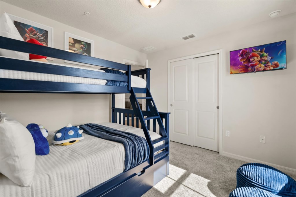 • Community: Windsor Cay • 5 Bedrooms/ 4.5 Bathrooms/ Sleeps 10 • Disney World® (8.2 miles) SeaWorld (18.5 miles) • Convention Center (19.5 miles) ICON Park (20.9 miles) • Universal Studios (22.3 miles) Epic Universe (20.9 miles) • Location: Coastal Cove Lane, Clermont FL 34714 DETAILS • 2,269 sqft • Central AC • Cable TV & Wi-Fi • Washer & Dryer • TV In Every Bedroom • Fully Equipped Kitchen • Towels & Linens Provided • Washcloths Are Not Provided • Family Room with Flat Screen TV • Hair Dryers, Iron & Ironing Board • Private Door Code for Each Guest Stay • Outdoor Patio Furniture with Sun Loungers • Pack 'n play/ High Chair (Free Upon Request) • Private Screened-in Pool + Child Safety Pool Fence - BEDROOM SETUP FIRST FLOOR Bedroom 1: 1 Queen Bed + Bathroom In Hallway + Half Bathroom In The Pool Area SECOND FLOOR Bedroom 2: 1 King Bed Bedroom 3: 1 Bunk Bed (Twin Over Twin) (Mario Room) + Bathroom In Hallway Bedroom 4: 1 King Bed (Private Bathroom) Bedroom 5: 1 Queen Bed (Private Bathroom) - USEFUL INFORMATION • CHECKING IN AND OUT - Check-in after 4:00 PM - Checkout before 10:00 AM • WINDSOR CAY PARKING - Parking is free. - 2 vehicles per unit in the shared parking spaces. - No parking on the street, grass or blocking the sidewalks. - Registered guests cannot share their parking passes with unregistered visitors. - Commercial Vehicles, RV's, Trailers, Buses, Golf Carts or Boats are not allowed at Windsor Cay. - Vehicle in violation of parking policy will be towed at the guest's expense. • THIS HOME IS SELF-CATERING We do provide a small welcome kit to get you started. Please stop by the nearest supermarket to gather any additional items you may need for the duration of your stay. • POOL HEAT - OPTIONAL 1-Cost: $35 per day. 2-Minimum: 2 consecutive days. 3-Temperature will not exceed 95F. 4-Must be requested 48h in advance. 5-Attached spa is NOT a hot tub. It can only be heated if the entire pool is heated. They both will have the same temperature. It does not have jets. 6-Heater works through HEAT EXCHANGE and WILL NOT WORK in cold weather. If you still would like to heat the pool during cold conditions and it does not reach the desired temperature, we will not be able to offer a refund. The pool heater pumps have a safety system that prevents overheating of the element when the pump is working overtime in cold weather. It automatically shuts off briefly until the pump can regain its functionality efficiently. Keep in mind this service is optional and may not be available at times. • BBQ RENTAL - OPTIONAL - Cost: $75 All Stay • TRASH DISPOSAL Please place trash in the plastic bin daily to keep a clean home. • HOUSEKEEPING There is no daily housekeeping service provided in the rental rate. Before check-in, the unit will be thoroughly cleaned and inspected by a professional cleaning company. Clean sheets and towels will be available in the unit. Mid-stay cleaning services during your stay can be requested for an additional fee. • ONLINE PURCHASE If the online seller uses USPS, it will not get delivered as the Post Office does not recognize vacation homes as regular addresses and the package will be returned back to the sender. Only UPS, DHL and FEDEX delivers them. In some resorts the packages are delivered to the clubhouse. Fees may apply. Some resorts may not accept them. Keep in mind we are not responsible for unexpected issues with your online purchases. If you have any questions, please contact us. • REEF CLUB - Windsor Cay Resort - Arcade - Lazy River - Fitness Center - Family Cabanas - 9-Hole Mini Golf - Dual Water Slides - Gated Community - Volleyball & Cornhole - Children's Splash Pad - Outdoor Covered Bar - Blue Lagoon Bar & Grille - Resort-Style Zero-Entry Pool RESORT REGISTRATION NEEDED AFTER BOOKING CONFIRMATION. PLEASE NOTE: Additional charges apply when the owner has to fix something or pay for additional cleaning if not complied.