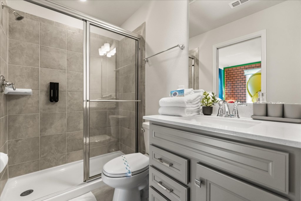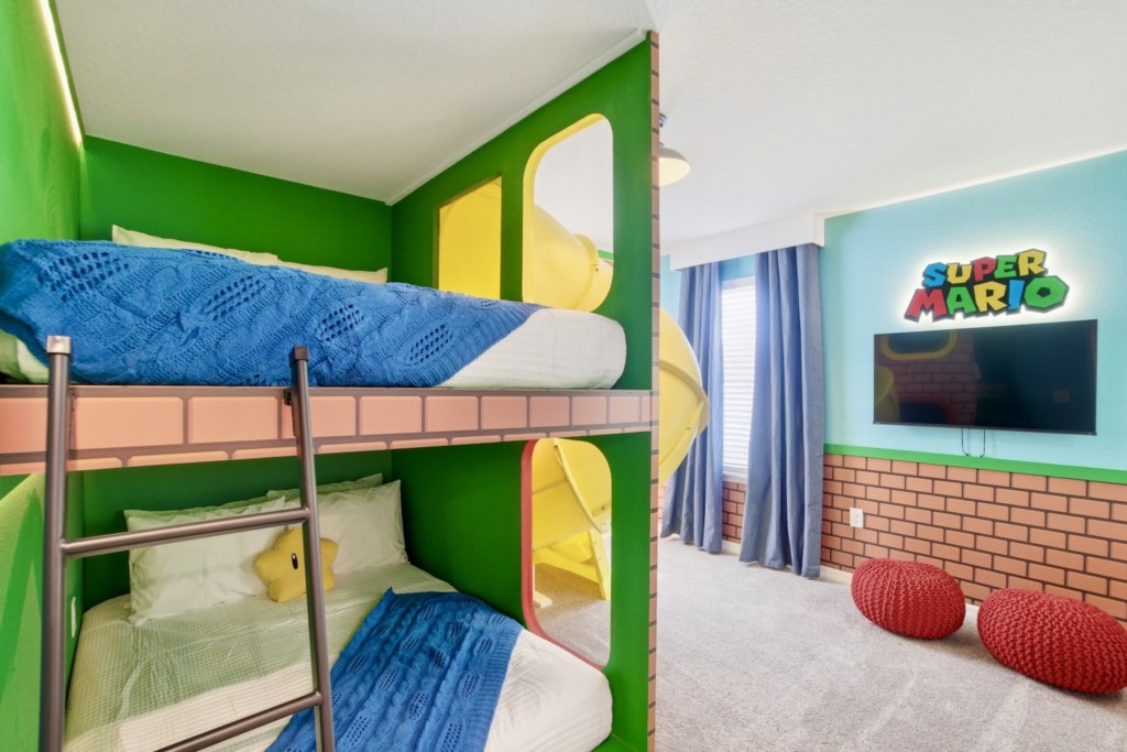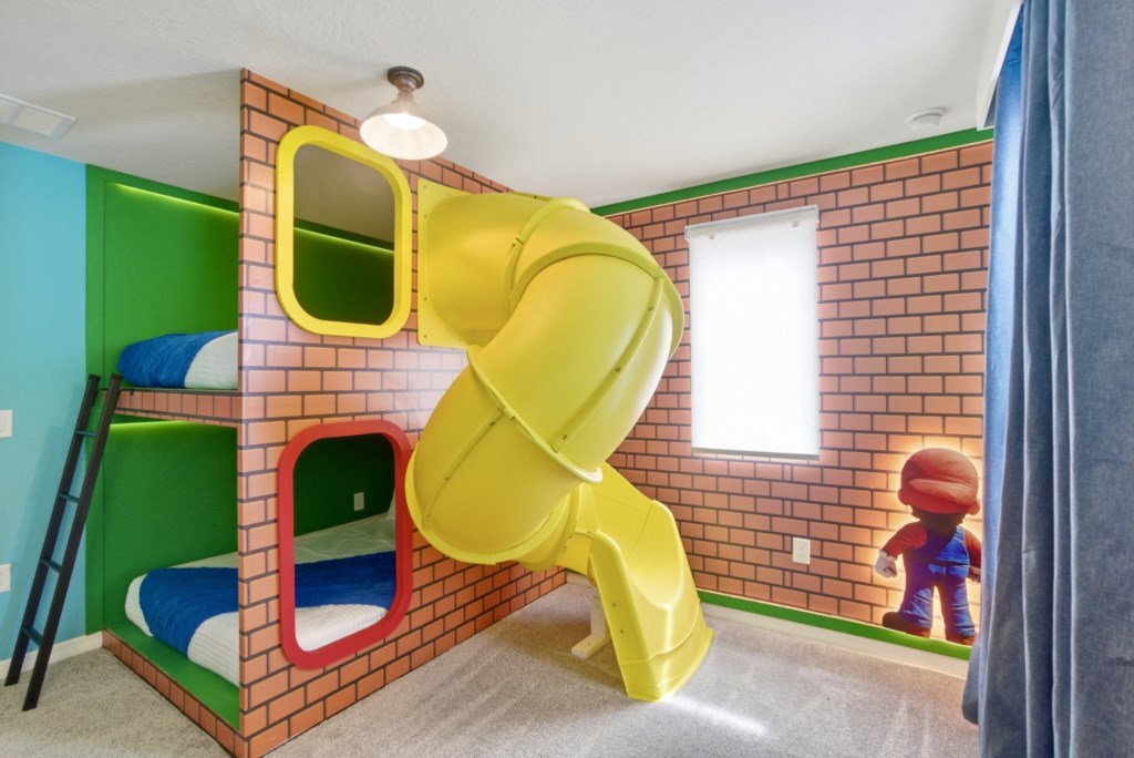 • Community: Windsor Cay • 5 Bedrooms/ 5.5 Bathrooms/ Sleeps 14 • Disney (8.2 miles) SeaWorld (18.5 miles) Legoland (31.0 miles) • Convention Center (19.5 miles) Universal Studios (22.3 miles) • Location: Cape Coral Loop, Clermont FL 34714 DETAILS • 2,607 sqft • Central AC • Washer & Dryer • Smart TV & Wi-Fi • TV In Every Bedroom • Fully Equipped Kitchen • Towels & Linens Provided • Washcloths Are Not Provided • Family Room with Flat Screen TV • Hair Dryers, Iron & Ironing Board • Private Door Code for Each Guest Stay • Outdoor Patio Furniture with Sun Loungers • Pack 'n play/ High Chair (Free Upon Request) • Private Screened-in Pool + Child Safety Pool Fence • PS5 - BEDROOM SETUP FIRST FLOOR Bedroom 1: 1 King Bed + Attached Bathroom - Pool Access + Half Bathroom SECOND FLOOR Bedroom 2: 1 Queen Bed (Private Bathroom) Bedroom 3: 1 Bunk Bed (Full over Full) (Mario's Room) (Private Bathroom) Bedroom 4: 1 King Bed (Private Bathroom) Bedroom 5: 1 Bunk Bed (Full Over Full) (Mickey's Room) (Private Bathroom) - USEFUL INFORMATION • CHECKING IN AND OUT - Check-in after 4:00 PM - Checkout before 10:00 AM • WINDSOR CAY PARKING - Parking is free. - Garage converted to Game Room - 2 vehicles per unit in the driveway. - No parking on the street. (Since it is a new community, they will not enforce this rule until the signs are placed.) - No parking on grass or blocking the sidewalks. - Registered guests cannot share their parking passes with unregistered visitors. - Commercial Vehicles, RV's, Trailers, Buses, Golf Carts or Boats are not allowed at Windsor Cay. - Vehicle in violation of parking policy will be towed at the guest's expense. • THIS HOME IS SELF-CATERING We do provide a small welcome kit to get you started. Please stop by the nearest supermarket to gather any additional items you may need for the duration of your stay. • POOL HEAT - OPTIONAL 1-Cost: $35 per day. 2-Minimum: 2 consecutive days. 3-Temperature will not exceed 95F. 4-Must be requested 48h in advance. 5-Attached spa is NOT a hot tub. It can only be heated if the entire pool is heated. They both will have the same temperature. It does not have jets. 6-Heater works through HEAT EXCHANGE and WILL NOT WORK in cold weather. If you still would like to heat the pool during cold conditions and it does not reach the desired temperature, we will not be able to offer a refund. The pool heater pumps have a safety system that prevents overheating of the element when the pump is working overtime in cold weather. It automatically shuts off briefly until the pump can regain its functionality efficiently. Keep in mind this service is optional and may not be available at times. • BBQ RENTAL - OPTIONAL - Cost: $75 All Stay • TRASH DISPOSAL Please place trash in the plastic bin daily to keep a clean home. • HOUSEKEEPING There is no daily housekeeping service provided in the rental rate. Before check-in, the unit will be thoroughly cleaned and inspected by a professional cleaning company. Clean sheets and towels will be available in the unit. Mid-stay cleaning services during your stay can be requested for an additional fee. • ONLINE PURCHASE If the online seller uses USPS, it will not get delivered as the Post Office does not recognize vacation homes as regular addresses and the package will be returned back to the sender. Only UPS, DHL and FEDEX delivers them. In some resorts the packages are delivered to the clubhouse. Fees may apply. Some resorts may not accept them. Keep in mind we are not responsible for unexpected issues with your online purchases. If you have any questions, please contact us. • REEF CLUB - Windsor Cay Resort - Arcade - Lazy River - Fitness Center - Family Cabanas - 9-Hole Mini Golf - Dual Water Slides - Gated Community - Volleyball & Cornhole - Children's Splash Pad - Outdoor Covered Bar - Blue Lagoon Bar & Grille - Resort-Style Zero-Entry Pool Resort registration needed. PLEASE NOTE: Additional charges apply when the owner has to fix something or pay for additional cleaning if not complied.