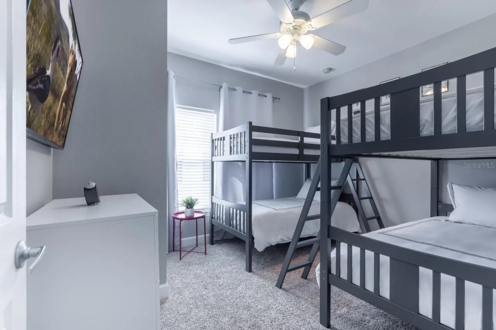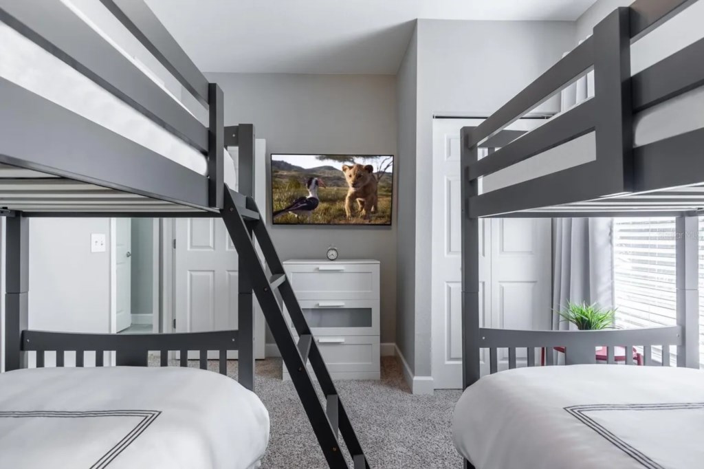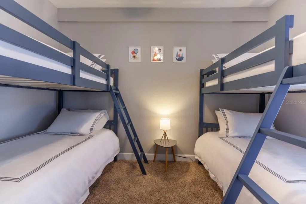 • Community: Lucaya Village • 4 Bedrooms/ 3 Bathrooms/ Sleeps 12 • Disney World® (4.0 miles) SeaWorld (7.4 miles) • Convention Center (8.5 miles) ICON Park (10.0 miles) • Universal Studios (11.2 miles) Epic Universe (10.2 miles) • Location: Lucaya Harbour Cir, Kissimmee FL 34746 DETAILS • 1,694 sqft • Central AC • Washer & Dryer • Cable TV & Wi-Fi • Formal Dining Area • TV In Every Bedroom • Fully Equipped Kitchen • Towels & Linens Provided • Washcloths Are Not Provided • Family Room with Flat Panel TV • Hair Dryers, Iron and Ironing Board • Private Door Code for Each Guest Stay • Pack 'n play/ High Chair (Free Upon Request) - BEDROOM SETUP FIRST FLOOR Bedroom 1: 1 King Bed (Private Bathroom) SECOND FLOOR Bedroom 2: 1 King Bed (Private Bathroom) Bedroom 3: 2 Bunk Bed (Twin Over Twin) Bedroom 4: 2 Bunk Bed (Twin Over Twin) + Bathroom In Hallway - USEFUL INFORMATION • CHECKING IN AND OUT - Check-in after 4:00 PM - Checkout before 10:00 AM • PARKING Parking is free. Commercial vehicles, RV's, trailers, buses, golf Carts or boats are not allowed at Lucaya Village. • THIS HOME IS SELF-CATERING We do provide a small welcome kit to get you started. Please stop by the nearest supermarket to gather any additional items you may need for the duration of your stay. • TRASH DISPOSAL Please dispose the trash daily in the dumpster to keep a clean home. • HOUSEKEEPING There is no daily housekeeping service provided in the rental rate. Before check-in, the unit will be thoroughly cleaned and inspected by a professional cleaning company. Mid-stay cleaning services during your stay can be requested for an additional fee. • ONLINE PURCHASE If the online seller uses USPS, it will not get delivered as the Post Office does not recognize vacation homes as regular addresses and the package will be returned back to the sender. Only UPS, DHL and FEDEX delivers them. In some resorts the packages are delivered to the clubhouse. Fees may apply. Some resorts may not accept them. Keep in mind we are not responsible for unexpected issues with your online purchases. If you have any questions, please contact us. LUCAYA VILLAGE AMENITIES • Lake • Lounge • Walking Trail • Kids Playroom • Fitness Center • Gated Community • Bakery and Cafe • Beach Volley Court • Outdoor Playground • Resort-Style Pool & Hot Tub • EV Charging Station (Powered by Greenlots) • BBQ (*Rental Fee and Reservation Required) PLEASE NOTE: Additional charges apply when the owner has to fix something or pay for additional cleaning if not complied.