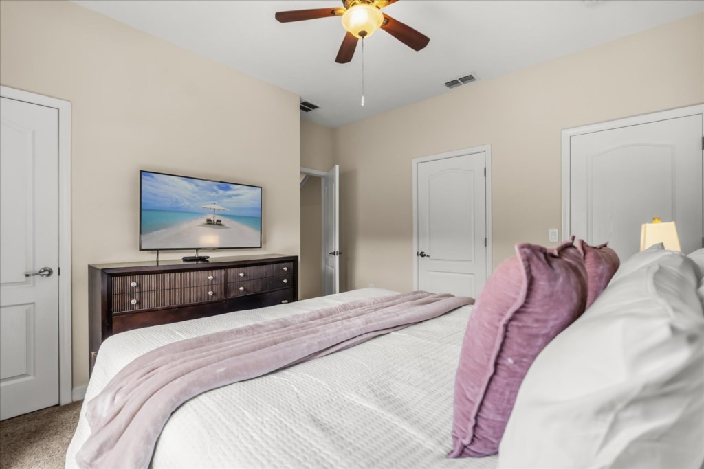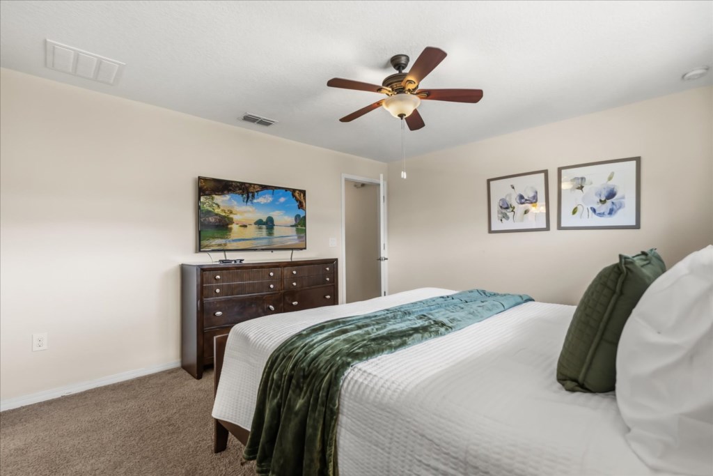 • Community: Paradise Palms Resort • 4 Bedrooms/ 3 Bathrooms/ Sleeps 8 • Disney (5.0 miles) SeaWorld (14.5 miles) Legoland (29.8 miles) • Convention Center (15.6 miles) Universal Studios (18.3 miles) • Location: Banana Palm Dr, Kissimmee FL 34747 DETAILS • Central AC • Washer & Dryer • Cable TV & Wi-Fi • TV In Every Bedroom • Fully Equipped Kitchen • Towels & Linens Provided • Stainless Steel Appliances • Washcloths Are Not Provided • Family Room with Flat Screen TV • Hair Dryers, Iron & Ironing Board • Private Door Code for Each Guest Stay • Outdoor Patio Furniture with Sun Loungers • Pack 'n play/ High Chair (Free Upon Request) • Private Screened-in Pool + Child Safety Pool Fence - BEDROOM SETUP FIRST FLOOR Bedroom 1: 1 King Bed + Bathroom In Hallway SECOND FLOOR Bedroom 2: 1 King Bed (Private Bathroom) Bedroom 3: 2 Twin Beds Bedroom 4: 2 Twin Beds + Bathroom In Hallway - USEFUL INFORMATION • CHECKING IN AND OUT - Check-in after 4:00 PM - Checkout before 10:00 AM • PARKING - Parking is free. - Commercial vehicles, RV's, trailers, buses, recreational vehicles, or watercraft is not permitted at Paradise Palms Resort. • THIS HOME IS SELF-CATERING We do provide a small welcome kit to get you started. Please stop by the nearest supermarket to gather any additional items you may need for the duration of your stay. • POOL HEAT - OPTIONAL 1-Cost: $35 per day. 2-Minimum: 2 consecutive days. 3-Temperature will not exceed 95F. 4-Must be requested 48h in advance. 5-Heater works through HEAT EXCHANGE and WILL NOT WORK in cold weather. If you still would like to heat the pool during cold conditions and it does not reach the desired temperature, we will not be able to offer a refund. The pool heater pumps have a safety system that prevents overheating of the element when the pump is working overtime in cold weather. It automatically shuts off briefly until the pump can regain its functionality efficiently. Keep in mind this service is optional and may not be available at times. • BBQ RENTAL - OPTIONAL - Cost: $75 All Stay • TRASH DISPOSAL Please dispose the trash daily in the plastic bench or dumpster to keep a clean home. • HOUSEKEEPING There is no daily housekeeping service provided in the rental rate. Before check-in, the unit will be thoroughly cleaned and inspected by a professional cleaning company. Mid-stay cleaning services during your stay can be requested for an additional fee. • ONLINE PURCHASE Paradise Palms Rules: Any mail with tracking numbers are considered packages. 30LB less - $10 per package Oversized packages athose weighing over 30 pounds are not accepted at the clubhouse. Packages will be held for up to 30 days. Packages not picked up within the time limit may be discarded. If the online seller uses USPS, it will not get delivered as the Post Office does not recognize vacation homes as regular addresses and the package will be returned back to the sender. Only UPS, DHL and FEDEX delivers them. Keep in mind we are not responsible for unexpected issues with your online purchases. If you have any questions, please contact us. Meals are delivered straight to the house. • PARADISE PALMS RESORT AMENITIES - Jacuzzi - Splash Pad - Sundry Shop - Games Room - Walking Trail - Fitness Center - Pool Side Tiki Bar - Gated Community - Clubhouse Lounge - Volleyball, Tennis & Basketball Courts - Movie theater – movies and times posted by theater door - Children’s play area with multi-deck climbing frame with slides and swings. - Resort-style 5,000 sq. ft. lagoon pool complete with water slide and covered grotto. RESORT REGISTRATION NEEDED AFTER BOOKING CONFIRMATION. PLEASE NOTE: Additional charges apply when the owner has to fix something or pay for additional cleaning if not complied.