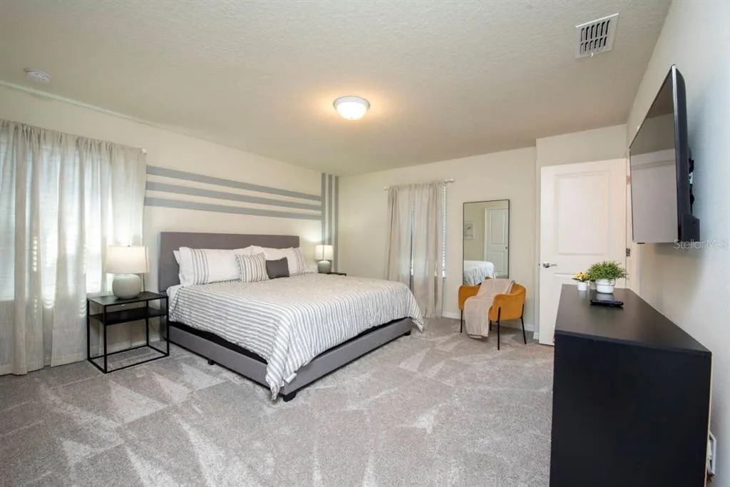 • Community: Windsor Island Resort • 6 Bedrooms/ 4.5 Bathrooms/ Sleeps 15 • Disney World® (8.1 miles) SeaWorld (17.5 miles) • Convention Center (18.6 miles) ICON Park (20.2 miles) • Universal Studios (21.3 miles) Epic Universe (20.3 miles) • Location: Kona Lane, Davenport FL 33897 DETAILS • 3,108 sqft • Central AC • Washer & Dryer • Cable TV & Wi-Fi • TV In Every Bedroom • Fully Equipped Kitchen • Towels & Linens Provided • Washcloths Are Not Provided • Family Room with Flat Screen TV • Hair Dryers, Iron & Ironing Board • Private Door Code for Each Guest Stay • Outdoor Patio Furniture with Sun Loungers • Pack 'n play/ High Chair (Free Upon Request) • Northeast Facing Private Screened-in Pool + Child Safety Pool Fence - BEDROOM SETUP FIRST FLOOR Bedroom 1: 1 King Bed + Attached Bathroom Shared With Pool + Half Bathroom In Hallway SECOND FLOOR Bedroom 2: 2 Twin Beds (Mario Room) + Bathroom In Hallway Bedroom 3: 1 King Bed Bedroom 4: 1 Full Bed (Mickey Room) + Bathroom In Hallway Bedroom 5: 2 Twin Beds + 1 Bunk Bed (Twin Over Full) (Minion Room) Bedroom 6: 1 King Bed (Private Bathroom) - USEFUL INFORMATION • CHECKING IN AND OUT - Check-in after 4:00 PM - Checkout before 10:00 AM • PARKING Parking is free. Limit to 4 cars. One side street parking: vehicles are allowed to park on designated sides of the street, as indicated by street signs. No parking on grass or sidewalks. It is strictly prohibited. Commercial Vehicles, RVs, Trailers, Buses, Golf Carts or Boats are not allowed at Windsor Island Resort. • THIS HOME IS SELF-CATERING We do provide a small welcome kit to get you started. Please stop by the nearest supermarket to gather any additional items you may need for the duration of your stay. • POOL HEAT - OPTIONAL 1-Cost: $35 per day. 2-Minimum: 2 consecutive days. 3-Temperature will not exceed 95F. 4-Must be requested 48h in advance. 5-Attached spa is NOT a jacuzzi. It does not have jets. It can only be heated if the entire pool is heated. They both will have the same temperature. 6-Heater works through HEAT EXCHANGE and WILL NOT WORK in cold weather. If you still would like to heat the pool during cold conditions and it does not reach the desired temperature, we will not be able to offer a refund. Our pool heater pumps have a safety system that prevents overheating of the element when the pump is working overtime in cold weather conditions. This way causes a temporary shut off of services automatically until the pump can regain its functionality efficiently. This is optional and may not be available at times. • BBQ RENTAL - OPTIONAL - Cost: $75 All Stay • TRASH DISPOSAL Please place trash in the bench or bin daily to keep a clean home. • HOUSEKEEPING There is no daily housekeeping service provided in the rental rate. Before check-in, the unit will be thoroughly cleaned and inspected by a professional cleaning company. Clean sheets and towels will be available in the unit. Mid-stay cleaning services during your stay can be requested for an additional fee. • ONLINE PURCHASE If the online seller uses USPS, it will not get delivered as the Post Office does not recognize vacation homes as regular addresses and the package will be returned back to the sender. Only UPS, DHL and FEDEX delivers them. In some resorts the packages are delivered to the clubhouse. Fees may apply. Some resorts may not accept them. Keep in mind we are not responsible for unexpected issues with your online purchases. If you have any questions, please contact us. WINDSOR ISLAND RESORT AMENITIES - 30-DAY STAY LIMIT • Jacuzzi • Lazy River • Splash Pad • Water Slide • Game Room • Miniature Golf • Fitness Center • Sand Volleyball • Basketball Court • Gated Community • Zero-entry Heated Pool • Fire Pit with View of Disney Fireworks • Restaurant, Cafe and Ice Cream Shop • Umbrella seating, Hammocks, and Cabanas PLEASE NOTE: Additional charges apply when the owner has to fix something or pay for additional cleaning if not complied.