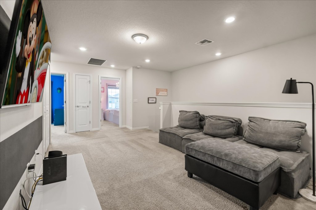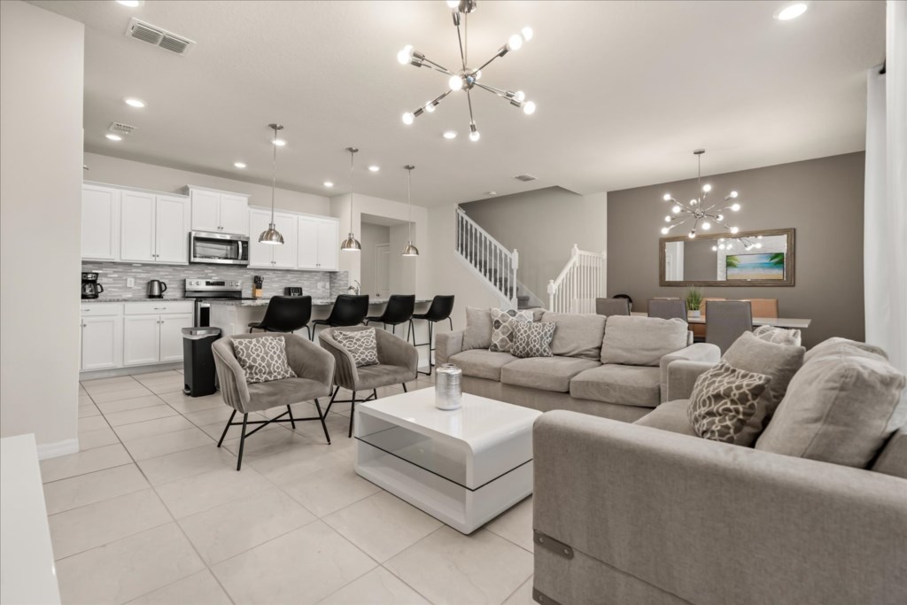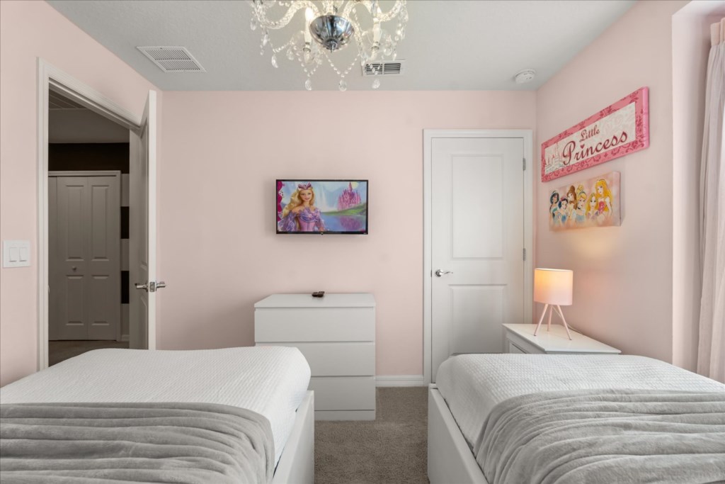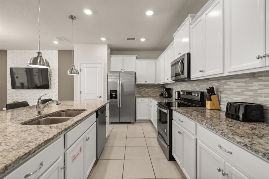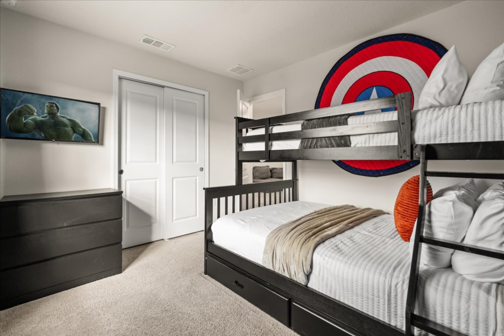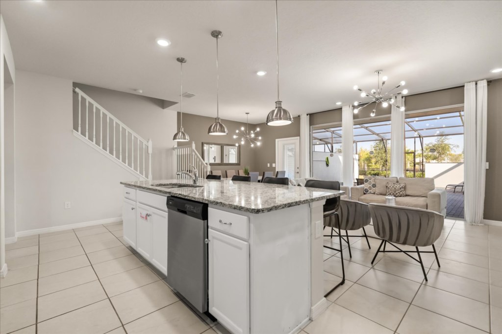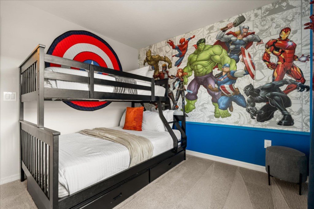 Community: Windsor Island 5 Bedrooms/ 4.5 Bathrooms/ Sleeps 12 Disney (7.7 miles) SeaWorld (17.1 miles) Legoland (26.2 miles) Convention Center (18.1 miles) Universal Studios (20.9 miles) Location: Paradise Drive, Davenport, FL, 33897 DETAILS • 2,749 sqft • Central AC • Washer & Dryer • Cable TV & Wi-Fi • TV In Every Bedroom • Fully Equipped Kitchen • Towels & Linens Provided • Washcloths Are Not Provided • Family Room with Flat Screen TV • Hair Dryers, Iron & Ironing Board • Private Door Code for Each Guest Stay • Outdoor Patio Furniture with Sun Loungers • Pack 'n play/ High Chair (Free Upon Request) • East Facing Private Screened-in Pool + Child Safety Pool Fence - BEDROOM SETUP FIRST FLOOR • Bedroom 1: 1 King Bed + Bathroom In Hallway + Half Bathroom In Pool Area SECOND FLOOR • Bedroom 2: 1 Full Bed (Private Bathroom) (Mickey's Room) • Bedroom 3: 1 King Bed (Private Bathroom) • Bedroom 4: 1 Bunk Bed (Twin Over Full) + 1 Twin Trundle (Avenger's Room) • Bedroom 5: 2 Twin Beds (Princess Room) + Bathroom In Hallway - USEFUL INFORMATION • CHECKING IN AND OUT - Check-in after 4:00 PM - Checkout before 10:00 AM • PARKING Parking is free. Limit to 3 cars. One side street parking: vehicles are allowed to park on designated sides of the street, as indicated by street signs. No parking on grass or sidewalks. It is strictly prohibited. Commercial Vehicles, RVs, Trailers, Buses, Golf Carts or Boats are not allowed at Windsor Island Resort. • THIS HOME IS SELF-CATERING We do provide a small welcome kit to get you started. Please stop by the nearest supermarket to gather any additional items you may need for the duration of your stay. • POOL HEAT - OPTIONAL 1-Cost: $35 per day. 2-Minimum: 2 consecutive days. 3-Temperature will not exceed 95F. 4-Must be requested 48h in advance. 5-Attached spa is NOT a jacuzzi. It does not have jets. It can only be heated if the entire pool is heated. They both will have the same temperature. 6-Heater works through HEAT EXCHANGE and WILL NOT WORK in cold weather. If you still would like to heat the pool during cold conditions and it does not reach the desired temperature, we will not be able to offer a refund. Our pool heater pumps have a safety system that prevents overheating of the element when the pump is working overtime in cold weather conditions. This way causes a temporary shut off of services automatically until the pump can regain its functionality efficiently. This is optional and may not be available at times. • BBQ RENTAL - OPTIONAL - Cost: $75 All Stay • TRASH DISPOSAL Please place trash in the bench or bin daily to keep a clean home. • HOUSEKEEPING There is no daily housekeeping service provided in the rental rate. Before check-in, the unit will be thoroughly cleaned and inspected by a professional cleaning company. Clean sheets and towels will be available in the unit. Mid-stay cleaning services during your stay can be requested for an additional fee. • ONLINE PURCHASE If the online seller uses USPS, it will not get delivered as the Post Office does not recognize vacation homes as regular addresses and the package will be returned back to the sender. Only UPS, DHL and FEDEX delivers them. In some resorts the packages are delivered to the clubhouse. FEES MAY APPLY. Some resorts may not accept them. Keep in mind we are not responsible for unexpected issues with your online purchases. If you have any questions, please contact us. WINDSOR ISLAND RESORT AMENITIES - 30-DAY STAY LIMIT • Jacuzzi • Lazy River • Splash Pad • Water Slide • Game Room • Miniature Golf • Fitness Center • Sand Volleyball • Basketball Court • Gated Community • Zero-entry Heated Pool • Fire Pit with View of Disney Fireworks • Restaurant, Cafe and Ice Cream Shop • Umbrella seating, Hammocks, and Cabanas PLEASE NOTE: Additional charges apply when the owner has to fix something or pay for additional cleaning if not complied.