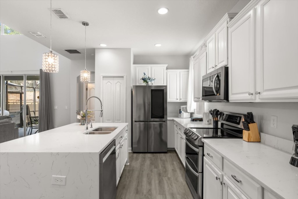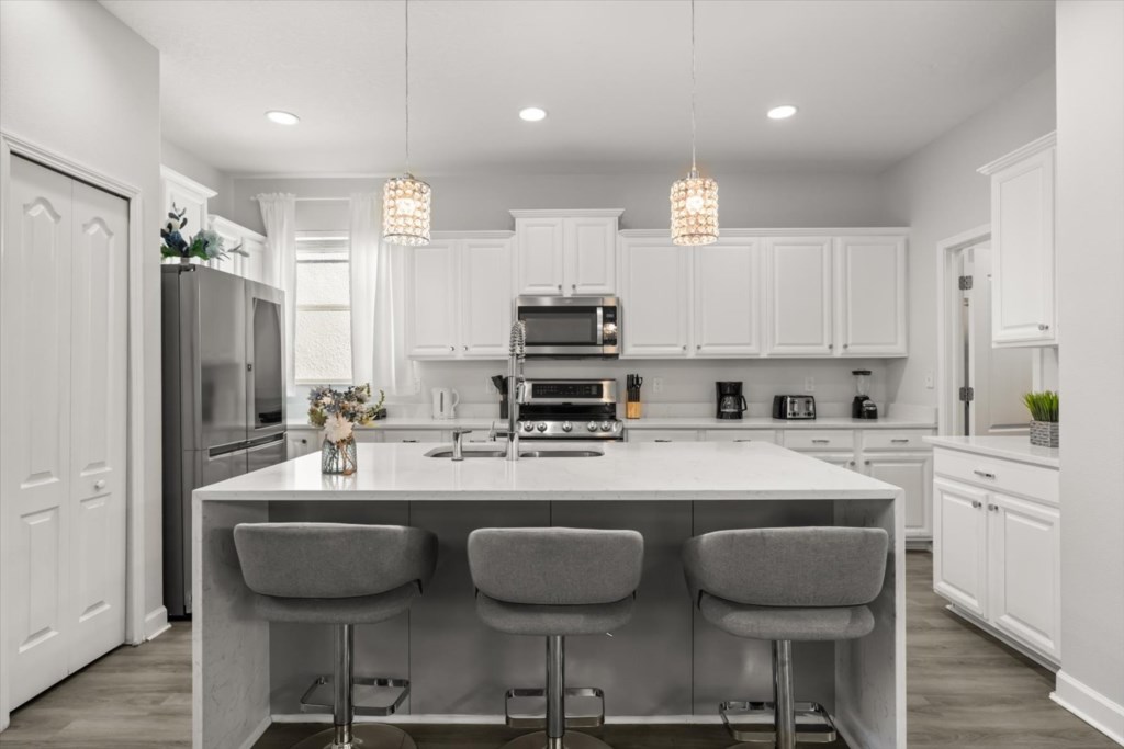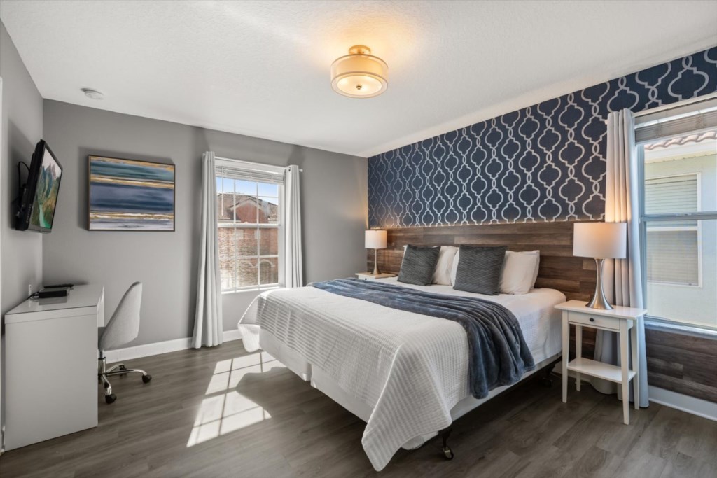 • Community: Paradise Palms Resort • 5 Bedrooms/ 5 Bathrooms/ Sleeps 10 • Disney (8 miles) Sea World (16 miles) Universal (21 miles) • Convention Center (12 miles) Legoland (31 miles) • Location: Cuban Palm Road, Kissimmee FL 34747 DETAILS • Central AC • Washer & Dryer • Gated Community • Free Cable TV & WIFI • TV In Every Bedroom • Fully Equipped Kitchen • Towels & Linens Provided • Stainless Steel Appliances • Washcloths Are Not Provided • Family Room with Flat Screen TV • Hair Dryers, Iron & Ironing Board • Private Door Code for Each Guest Stay • Outdoor Patio Furniture with Sun Loungers • Pack 'n play/ High Chair (Free Upon Request) • Private Screened-in Pool + Child Safety Pool Fence - BEDROOM SETUP FIRST FLOOR • Bedroom 1: 2 Twin Beds (Private Bathroom) • Bedroom 2: 1 King Bed + Bathroom In Hallway SECOND FLOOR • Bedroom 3: 1 King Bed (Private Bathroom) • Bedroom 4: 1 Queen Bed + Bathroom In Hallway • Bedroom 5: 1 King Bed + Bathroom In Hallway - USEFUL INFORMATION • PARKING Parking is free. Commercial vehicles, RVS, Trailers, Buses, recreational vehicles, or watercraft is not permitted at Paradise Palms Resort. • THIS HOME IS SELF-CATERING We do provide a small welcome kit to get you started. Please stop by the nearest supermarket to gather any additional items you may need for the duration of your stay. • POOL HEAT - OPTIONAL 1-Cost: $35 per day. 2-Minimum: 2 consecutive days. 3-Temperature will not exceed 95F. 4-Must be requested 48h in advance. 5-Attached spa is NOT a jacuzzi. It does not have jets. It can only be heated if the entire pool is heated. They both will have the same temperature. 6-Heater works through HEAT EXCHANGE and WILL NOT WORK in cold weather. If you still would like to heat the pool during cold conditions and it does not reach the desired temperature, we will not be able to offer a refund. Our pool heater pumps have a safety system that prevents overheating of the element when the pump is working overtime in cold weather conditions. This way causes a temporary shut off of services automatically until the pump can regain its functionality efficiently. This is optional and may not be available at times. • BBQ RENTAL - OPTIONAL - Cost: $75 All Stay • TRASH DISPOSAL Please dispose the trash daily in the plastic bench or dumpster to keep a clean home. • HOUSEKEEPING There is no daily housekeeping service provided in the rental rate. Before check-in, the unit will be thoroughly cleaned and inspected by a professional cleaning company. Mid-stay cleaning services during your stay can be requested for an additional fee. • ONLINE PURCHASE Paradise Palms Rules: Any mail with tracking numbers are considered packages. 30LB less - $10 per package Oversized packages athose weighing over 30 pounds are not accepted at the clubhouse. Packages will be held for up to 30 days. Packages not picked up within the time limit may be discarded. If the online seller uses USPS, it will not get delivered as the Post Office does not recognize vacation homes as regular addresses and the package will be returned back to the sender. Only UPS, DHL and FEDEX delivers them. Keep in mind we are not responsible for unexpected issues with your online purchases. If you have any questions, please contact us. Meals are delivered straight to the house. PARADISE PALMS RESORT AMENITIES • Arcade • Jacuzzi • Splash Pad • Playground • Sundry Shop • Games Room • Walking Trail • Fitness Center • Pool Side Tiki Bar • Clubhouse Lounge • Volleyball, Tennis & Basketball Courts • Movie theater – movies and times posted by theater door • Children’s play area with multi-deck climbing frame with slides and swings. • Resort-style 5,000 sq. ft. lagoon pool complete with water slide and covered grotto. PLEASE NOTE: Additional charges apply when the owner has to fix something or pay for additional cleaning if not complied.