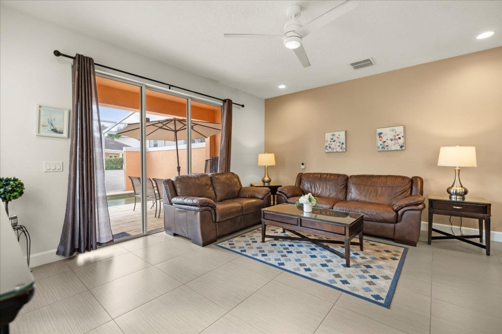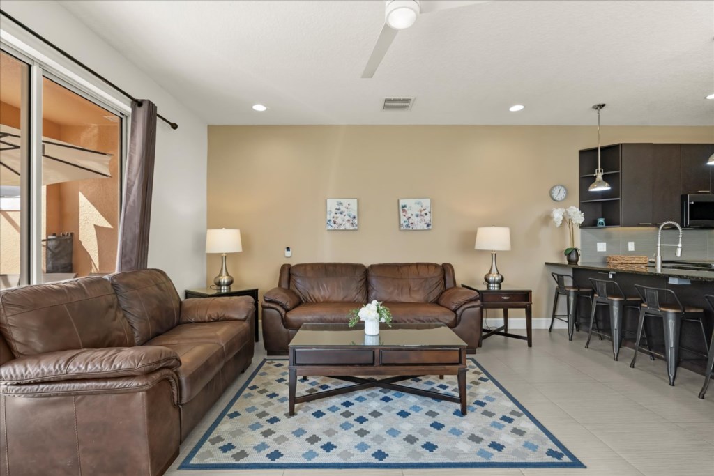 • Community: The Retreat• 3 Bedrooms • 3 Bathrooms • Sleeps 6• Disney (10miles) • Sea World (17miles) • Universal (19miles)• Convention Center (12 miles) Legoland (33 miles) • Location: Retreat Circle, Clermont, FL 34714 DETAILS• Central AC • Washer & Dryer • TV In Every Bedroom • Free Cable TV & WIFI • Fully Equipped Kitchen • Towels & Linens Provided • Stainless Steel Appliances • Washcloths Are Not Provided • Family Room with Flat Screen TV • Hair Dryers, Iron & Ironing Board • Private Door Code for Each Guest Stay • Outdoor Patio Furniture with Sun Loungers • Pack 'n play/ High Chair (Free Upon Request) • Private Screened-in Pool + Child Safety Pool Fence FIRST FLOOR Bedroom 1: 1 Queen Bed + Bathroom In Hallway SECOND FLOOR: Bedroom 2: 1 King Bed (Private Bathroom) Bedroom 3: 2 Twin Beds (Private Bathroom) - USEFUL INFORMATION • PARKING Parking is free. 1 Car Assigned Spot + Other Unmarked Spots. • THIS HOME IS SELF-CATERING We do provide a small welcome kit to get you started. Please stop by the nearest supermarket to gather any additional items you may need for the duration of your stay. • POOL HEAT - OPTIONAL 1-Cost: $35 per day. 2-Minimum: 2 consecutive days. 3-Temperature will not exceed 95F. 4-Must be requested 48h in advance. 5-Attached spa is NOT a jacuzzi. It does not have jets. It can only be heated if the entire pool is heated. They both will have the same temperature. 6-Heater works through HEAT EXCHANGE and WILL NOT WORK in cold weather. If you still would like to heat the pool during cold conditions and it does not reach the desired temperature, we will not be able to offer a refund. Our pool heater pumps have a safety system that prevents overheating of the element when the pump is working overtime in cold weather conditions. This way causes a temporary shut off of services automatically until the pump can regain its functionality efficiently. This is optional and may not be available at times. • BBQ RENTAL - OPTIONAL - Cost: $75 All Stay • TRASH DISPOSAL Please place trash in the plastic bin daily to keep a clean home. • HOUSEKEEPING There is no daily housekeeping service provided in the rental rate. Before check-in, the unit will be thoroughly cleaned and inspected by a professional cleaning company. Clean sheets and towels will be available in the unit. Mid-stay cleaning services during your stay can be requested for an additional fee. • ONLINE PURCHASE If the online seller uses USPS, it will not get delivered as the Post Office does not recognize vacation homes as regular addresses and the package will be returned back to the sender. Only UPS, DHL and FEDEX delivers them. In some resorts the packages are delivered to the clubhouse. Fees may apply. Some resorts may not accept them. Keep in mind we are not responsible for unexpected issues with your online purchases. If you have any questions, please contact us. PLEASE NOTE: Additional charges apply when the owner has to fix something or pay for additional cleaning if not complied.