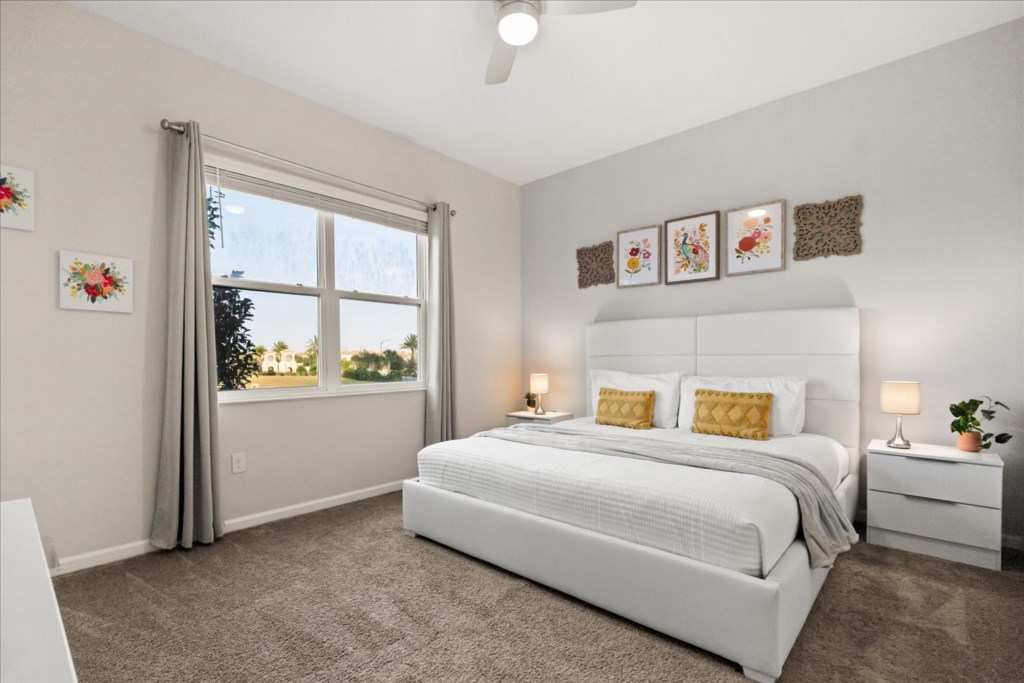 • Community: Champions Gate • 2 Bedrooms/ 2 Bathrooms/ Sleeps 7 • Disney (10.3 mi) SeaWorld (18.2 mi) Legoland (27.0 mi) • Convention Center (13.6 mi) Universal Studios (22.0 mi) • Location: Drop Lane, Kissimmee FL 34747 DETAILS • 1,787 sqft • Central AC • Roku & Wi-Fi • Patio Furniture • Washer & Dryer • Fully Equipped Kitchen • Towels & Linens Provided • Washcloths Are Not Provided • Family Rooms with Flat Panel TV • Hair Dryers, Iron & Ironing Board • Garage Converted To Game Room • Private Door Code for Each Guest Stay • Pack 'n play/ High Chair (Free Upon Request) - BEDROOM SETUP SECOND FLOOR BEDROOM 1: 1 King Bed (Private Bathroom) BEDROOM 2: 1 Bunk Bed (Full Over Full) + 1 Twin Pull Out + Bathroom In Hallway - USEFUL INFORMATION • CHECKING IN AND OUT - Check-in after 4:00 PM - Checkout before 10:00 AM • CHAMPIONS GATE PARKING - Parking is free. - Limit of 6 vehicles per unit. - Vehicles parked on the street must face the correct direction (passenger side to curb) so as to not be parked against the flow of traffic. - Do not block driveways, sidewalks, fire lanes, fire hydrants, mailboxes or any access points. - Parking is not permitted on grass, playgrounds, or landscaped areas. - Double-parking or parking in a manner that creates a safety hazard is not allowed. - Commercial Vehicles, RV's, Trailers, Buses, Golf Carts or Boats are not allowed at Champions Gate. - Vehicles in disrepair or with expired registration may not be left in the street or common areas. - VEHICLES IN VIOLATION OF PARKING POLICY WILL BE TOWED AT THE GUEST'S EXPENSE. • THIS HOME IS SELF-CATERING We do provide a small welcome kit to get you started. Please stop by the nearest supermarket to gather any additional items you may need for the duration of your stay. • TRASH DISPOSAL Please place trash in the plastic bench daily to keep a clean home. • HOUSEKEEPING There is no daily housekeeping service provided in the rental rate. Before check-in, the unit will be thoroughly cleaned and inspected by a professional cleaning company. Clean sheets and towels will be available in the unit. Mid-stay cleaning services during your stay can be requested for an additional fee. • ONLINE PURCHASE If the online seller uses USPS, it will not get delivered as the Post Office does not recognize vacation homes as regular addresses and the package will be returned back to the sender. Only UPS, DHL and FEDEX delivers them. In some resorts the packages are delivered to the clubhouse. Fees may apply. Some resorts may not accept them. Keep in mind we are not responsible for unexpected issues with your online purchases. If you have any questions, please contact us. THE OASIS CLUB - Champions Gate • Tot Lot • Arcade Room • Splash Zone • Movie Theater • Fitness Center • Gated Community • Rentable Cabanas • Pool Side Tiki Bar • Grill Room Restaurant • On-site sundries shop • Huge Resort-Style Pool • Tennis & Sand Volleyball Courts • ChampionsGate Country Club Golf Course • 1,023 sq.ft. Lazy River + Two-Story Waterslide THE RETREAT CLUB - Champions Gate • Loungers • Mini Golf • Splash Pad • Resort Pool • Water Slides RESORT REGISTRATION NEEDED AFTER BOOKING CONFIRMATION. PLEASE NOTE: Additional charges apply when the owner has to fix something or pay for additional cleaning if not complied.