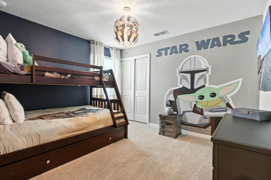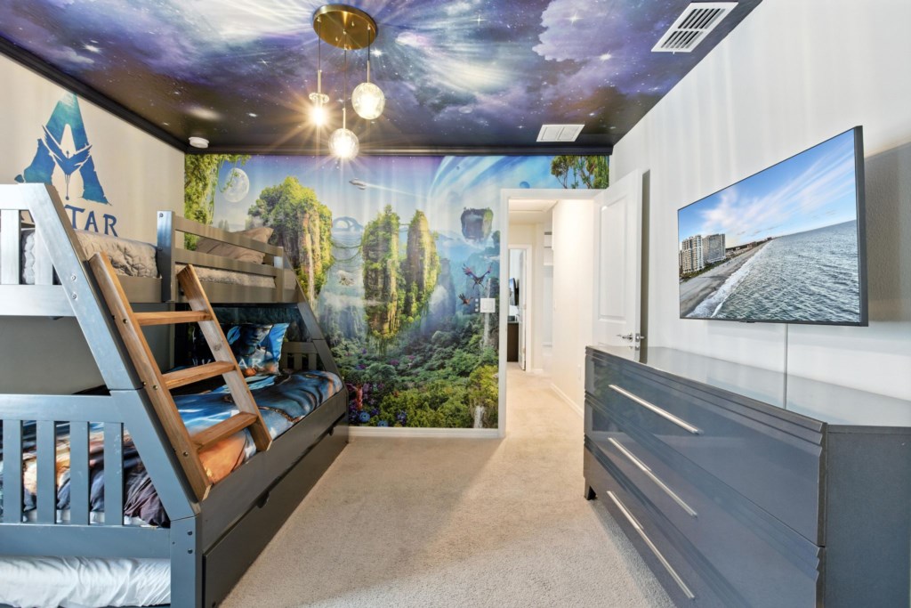 • Community: Windsor Island Resort • 8 Bedrooms/ 6 Bathrooms/ Sleeps 24 • Disney (8.2 miles) SeaWorld (17.6 miles) Legoland (27.4 miles) • Convention Center (18.7 miles) Universal Studios (21.4 miles) • Location: Lana Ave, Davenport FL 33897 DETAILS • Central AC • Washer & Dryer • Free Cable TV & WIFI • Fully Equipped Kitchen • Towels & Linens provided • Washcloths are not provided • Family Room with Flat Panel TV • Hair Dryers, Iron and Ironing Board • Private Door Code for Each Guest Stay • Outdoor Patio Furniture with Sun Loungers • Pack 'n play/ High Chair (Free Upon Request) • Private Screened-in Pool + Child Safety Pool Fence - BEDROOM SETUP FIRST FLOOR Bedroom 1: 1 Queen Bed + Bathroom In Hallway Bedroom 2: 1 King Bed + Attached Bathroom Shared With Pool SECOND FLOOR Bedroom 3: 2 Full Beds (Peter Pan Room) (Private Bathroom) Bedroom 4: 1 Bunk Bed (Twin Over Full ) + 1 Twin Pull Out (Minion Room) + Shared Bathroom Between Bedrooms 4 & 5 Bedroom 5: 1 King Bed Bedroom 6: 1 Bunk Bed (Twin Over Full ) + 1 Twin Pull Out (Avatar Room) +Bathroom In Hallway Bedroom 7: 1 Bunk Bed (Twin Over Full ) + 1 Twin Pull Out (Star Wars Room) Bedroom 8: 1 King Bed (Private Bathroom) - USEFUL INFORMATION • CHECKING IN AND OUT - Check-in after 4:00 PM - Checkout before 10:00 AM • PARKING Parking is free. Limit to 5 cars. One side street parking: vehicles are allowed to park on designated sides of the street, as indicated by street signs. No parking on grass or sidewalks. It is strictly prohibited. Commercial Vehicles, RVs, Trailers, Buses, Golf Carts or Boats are not allowed at Windsor Island Resort. • THIS HOME IS SELF-CATERING We do provide a small welcome kit to get you started. Please stop by the nearest supermarket to gather any additional items you may need for the duration of your stay. • POOL HEAT - OPTIONAL 1-Cost: $35 per day. 2-Minimum: 2 consecutive days. 3-Temperature will not exceed 95F. 4-Must be requested 48h in advance. 5-Attached spa is NOT a jacuzzi. It does not have jets. It can only be heated if the entire pool is heated. They both will have the same temperature. 6-Heater works through HEAT EXCHANGE and WILL NOT WORK in cold weather. If you still would like to heat the pool during cold conditions and it does not reach the desired temperature, we will not be able to offer a refund. Our pool heater pumps have a safety system that prevents overheating of the element when the pump is working overtime in cold weather conditions. This way causes a temporary shut off of services automatically until the pump can regain its functionality efficiently. This is optional and may not be available at times. • BBQ RENTAL - OPTIONAL - Cost: $75 All Stay • TRASH DISPOSAL Please place trash in the bench or bin daily to keep a clean home. • HOUSEKEEPING There is no daily housekeeping service provided in the rental rate. Before check-in, the unit will be thoroughly cleaned and inspected by a professional cleaning company. Clean sheets and towels will be available in the unit. Mid-stay cleaning services during your stay can be requested for an additional fee. • ONLINE PURCHASE If the online seller uses USPS, it will not get delivered as the Post Office does not recognize vacation homes as regular addresses and the package will be returned back to the sender. Only UPS, DHL and FEDEX delivers them. In some resorts the packages are delivered to the clubhouse. Fees may apply. Some resorts may not accept them. Keep in mind we are not responsible for unexpected issues with your online purchases. If you have any questions, please contact us. WINDSOR ISLAND RESORT AMENITIES - 30-DAY STAY LIMIT • Jacuzzi • Lazy River • Splash Pad • Water Slide • Game Room • Miniature Golf • Fitness Center • Sand Volleyball • Basketball Court • Gated Community • Zero-entry Heated Pool • Fire Pit with View of Disney Fireworks • Restaurant, Cafe and Ice Cream Shop • Umbrella seating, Hammocks, and Cabanas PLEASE NOTE: Additional charges apply when the owner has to fix something or pay for additional cleaning if not complied.