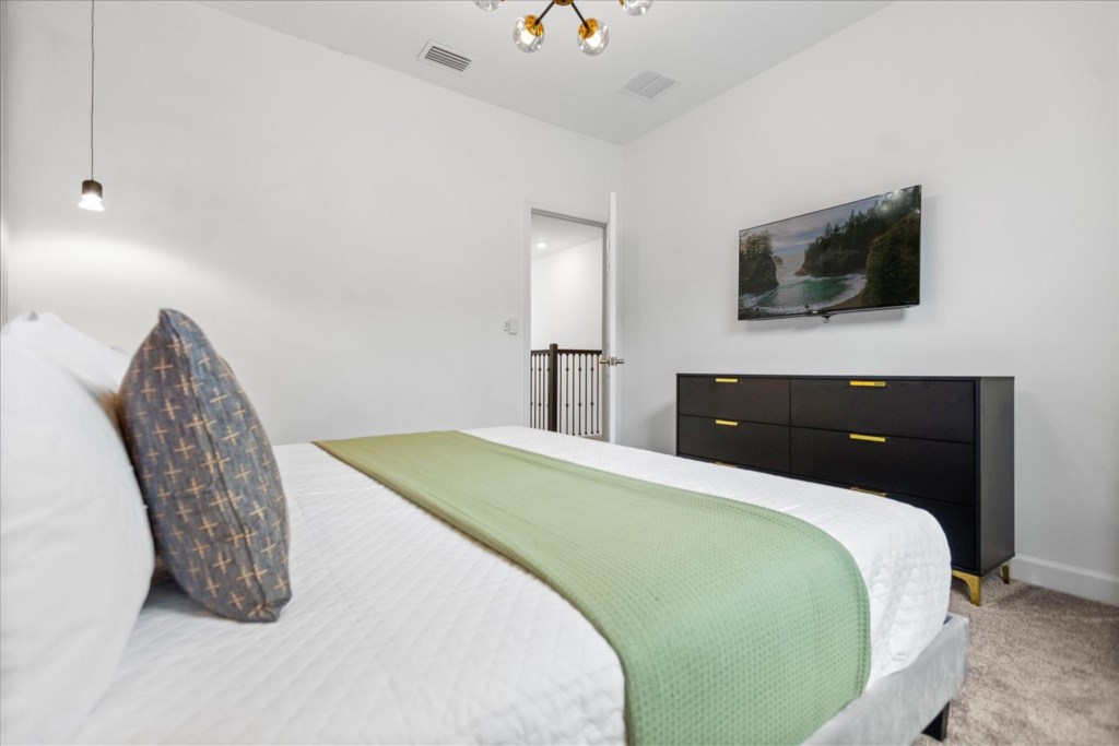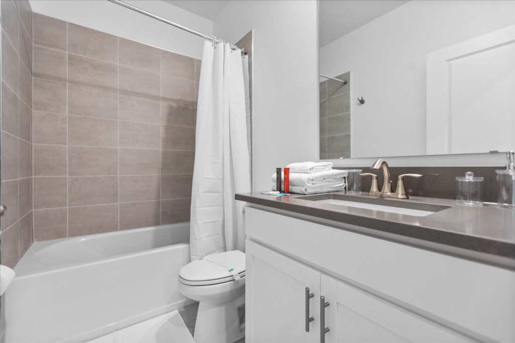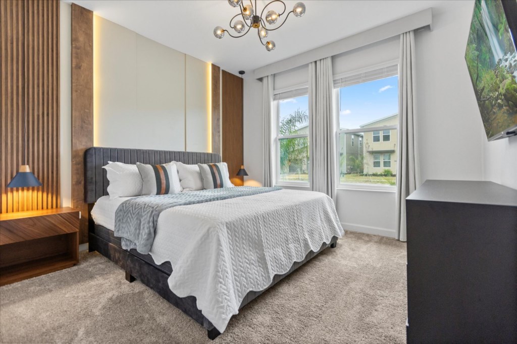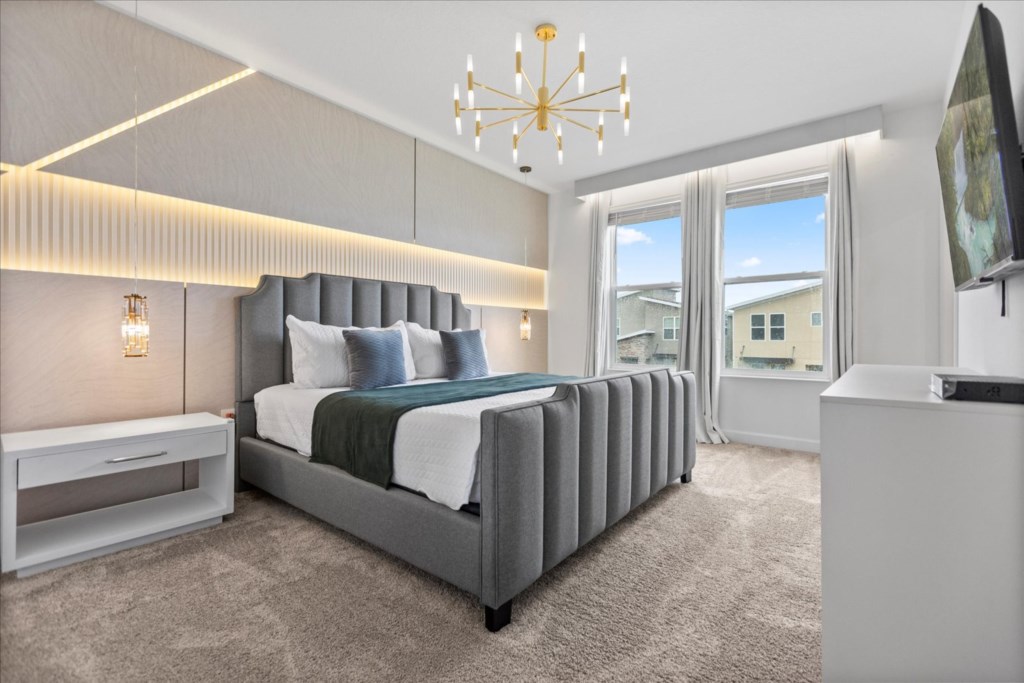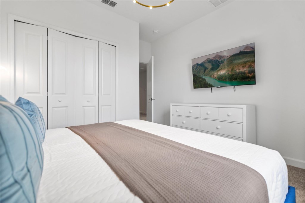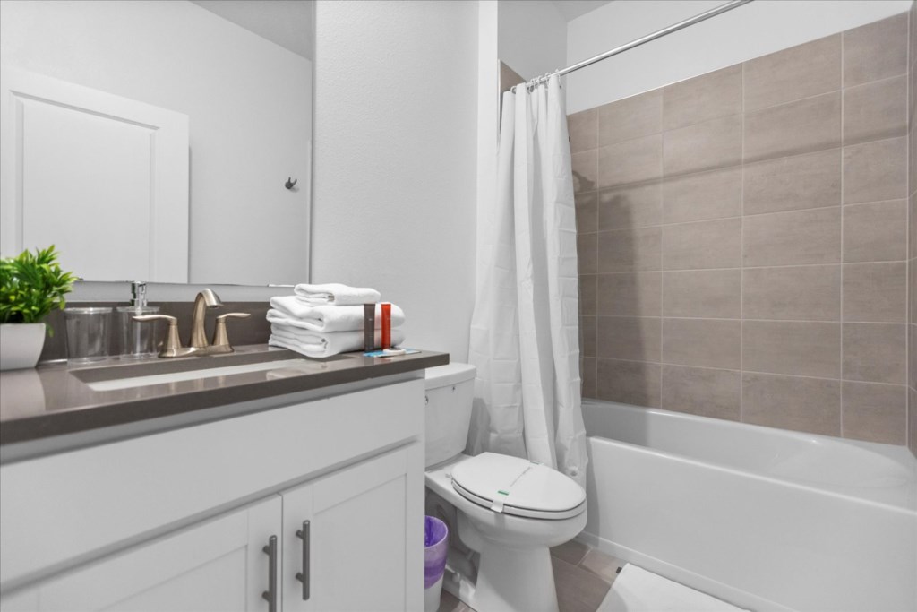 • Community: Champions Gate • 7 Bedrooms/ 5 Bathrooms/ Sleeps 18 • Disney (25 min) Sea World (30 min) Universal (30 min) • Convention Center (25 min) Legoland (50 min) • Location: Play Through Drive, Davenport, FL 33896 DETAILS • Central AC • Washer & Dryer • Gated Community • TV In Every Bedroom • Free Cable TV & WIFI • Fully Equipped Kitchen • Towels & Linens Provided • Stainless Steel Appliances • Washcloths Are Not Provided • Family Room with Flat Screen TV • Hair Dryers, Iron & Ironing Board • Private Door Code for Each Guest Stay • Outdoor Patio Furniture with Sun Loungers • Pack 'n play/ High Chair (Free Upon Request) • Private Screened-in Pool + Child Safety Pool Fence BEDROOMS FIRST FLOOR Bedroom 1: 1 King Bed + Bathroom In Hallway BEDROOMS SECOND FLOOR Bedroom 2: 1 King Bed (Private Bathroom) Bedroom 3: 1 King Bed Bedroom 4: 1 King Bed + Shared Bathroom Between Bedrooms 3 & 4 Bedroom 5: 1 Bunk Bed (Full Over Full) (Lion King Room) Bedroom 6: 1 Bunk Bed (Full Over Full) (Toy Story Room) + Shared Bathroom Between Bedrooms 5 & 6 Bedroom 7: 1 King Bed (Private Bathroom) - USEFUL INFORMATION • RESORT REGISTRATION NEEDED AFTER BOOKING CONFIRMATION. • PARKING Parking is free. - Commercial Vehicles, RVS, Trailers, Buses, Golf Carts or Boats are not allowed at Champions Gate. - STREET PARKING IS NOT PERMITTED. Please make sure cars are also not parked on the grass or in a way that obstructs the sidewalk. Cars that violate this will be towed at the guest's expense. • THIS HOME IS SELF-CATERING We do provide a small welcome kit to get you started. Please stop by the nearest supermarket to gather any additional items you may need for the duration of your stay. • POOL HEAT - OPTIONAL 1-Cost: $35 per day. 2-Minimum: 2 consecutive days. 3-Temperature will not exceed 95F. 4-Must be requested 48h in advance. 5-Attached spa is NOT a jacuzzi. It does not have jets. It can only be heated if the entire pool is heated. They both will have the same temperature. 6-Heater works through HEAT EXCHANGE and WILL NOT WORK in cold weather. If you still would like to heat the pool during cold conditions and it does not reach the desired temperature, we will not be able to offer a refund. Our pool heater pumps have a safety system that prevents overheating of the element when the pump is working overtime in cold weather conditions. This way causes a temporary shut off of services automatically until the pump can regain its functionality efficiently. This is optional and may not be available at times. • BBQ RENTAL - OPTIONAL - Cost: $75 All Stay • TRASH DISPOSAL Please place trash in the plastic bench daily to keep a clean home. • HOUSEKEEPING There is no daily housekeeping service provided in the rental rate. Before check-in, the unit will be thoroughly cleaned and inspected by a professional cleaning company. Clean sheets and towels will be available in the unit. Mid-stay cleaning services during your stay can be requested for an additional fee. • ONLINE PURCHASE If the online seller uses USPS, it will not get delivered as the Post Office does not recognize vacation homes as regular addresses and the package will be returned back to the sender. Only UPS, DHL and FEDEX delivers them. In some resorts the packages are delivered to the clubhouse. Fees may apply. Some resorts may not accept them. Keep in mind we are not responsible for unexpected issues with your online purchases. If you have any questions, please contact us. CHAMPIONS GATE AMENITIES • Lounge • Tot Lot • Game Room • Lazy River • Restaurant • Water Slides • Locker Rooms • Video Arcade • Movie Theater • Fitness Center • Kids Play Area • Pool Side Tiki Bar • 18-Hole Golf Course • On-site sundries shop • Huge Resort-Style Pool • Tennis and Volleyball Courts • Extraordinary 10,000 sq.ft. clubhouse PLEASE NOTE: Additional charges apply when the owner has to fix something or pay for additional cleaning if not complied.