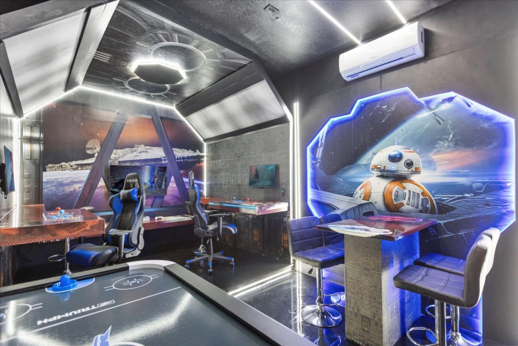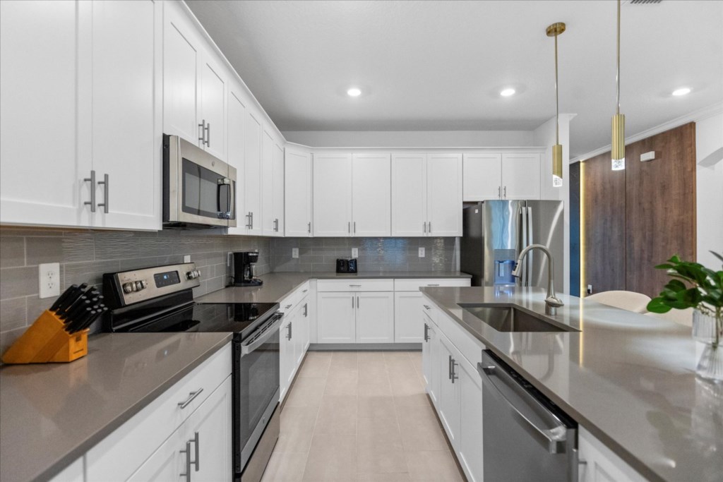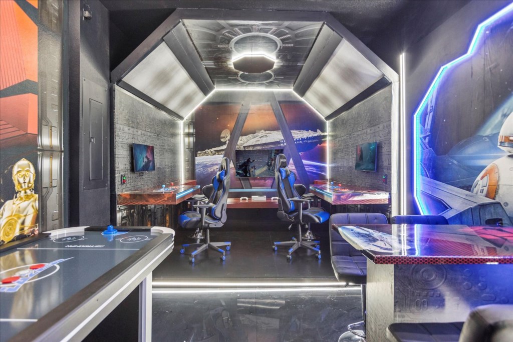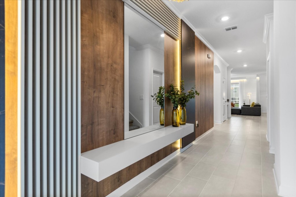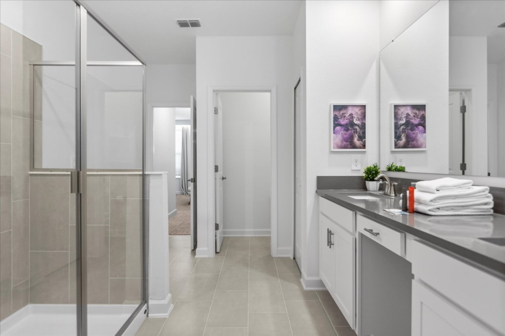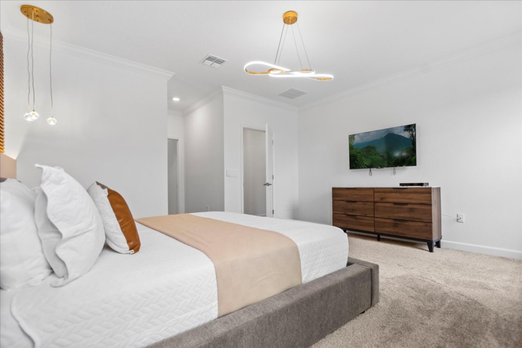 • Community: Champions Gate • 7 Bedrooms/ 5 Bathrooms/ Sleeps 18 • Disney (25 min) Sea World (30 min) Universal (30 min) • Convention Center (25 min) Legoland (50 min) • Location: Play Through Drive, Davenport, FL 33896 DETAILS • Central AC • Washer & Dryer • Gated Community • TV In Every Bedroom • Free Cable TV & WIFI • Fully Equipped Kitchen • Towels & Linens Provided • Stainless Steel Appliances • Washcloths Are Not Provided • Family Room with Flat Screen TV • Hair Dryers, Iron & Ironing Board • Private Door Code for Each Guest Stay • Outdoor Patio Furniture with Sun Loungers • Pack 'n play/ High Chair (Free Upon Request) • Private Screened-in Pool + Child Safety Pool Fence BEDROOMS FIRST FLOOR Bedroom 1: 1 King Bed + Bathroom In Hallway BEDROOMS SECOND FLOOR Bedroom 2: 1 King Bed (Private Bathroom) Bedroom 3: 1 King Bed Bedroom 4: 1 King Bed + Shared Bathroom Between Bedrooms 3 & 4 Bedroom 5: 1 Bunk Bed (Full Over Full) (Lion King Room) Bedroom 6: 1 Bunk Bed (Full Over Full) (Toy Story Room) + Shared Bathroom Between Bedrooms 5 & 6 Bedroom 7: 1 King Bed (Private Bathroom) - USEFUL INFORMATION • RESORT REGISTRATION NEEDED AFTER BOOKING CONFIRMATION. • PARKING Parking is free. - Commercial Vehicles, RVS, Trailers, Buses, Golf Carts or Boats are not allowed at Champions Gate. - STREET PARKING IS NOT PERMITTED. Please make sure cars are also not parked on the grass or in a way that obstructs the sidewalk. Cars that violate this will be towed at the guest's expense. • THIS HOME IS SELF-CATERING We do provide a small welcome kit to get you started. Please stop by the nearest supermarket to gather any additional items you may need for the duration of your stay. • POOL HEAT - OPTIONAL 1-Cost: $35 per day. 2-Minimum: 2 consecutive days. 3-Temperature will not exceed 95F. 4-Must be requested 48h in advance. 5-Attached spa is NOT a jacuzzi. It does not have jets. It can only be heated if the entire pool is heated. They both will have the same temperature. 6-Heater works through HEAT EXCHANGE and WILL NOT WORK in cold weather. If you still would like to heat the pool during cold conditions and it does not reach the desired temperature, we will not be able to offer a refund. Our pool heater pumps have a safety system that prevents overheating of the element when the pump is working overtime in cold weather conditions. This way causes a temporary shut off of services automatically until the pump can regain its functionality efficiently. This is optional and may not be available at times. • BBQ RENTAL - OPTIONAL - Cost: $75 All Stay • TRASH DISPOSAL Please place trash in the plastic bench daily to keep a clean home. • HOUSEKEEPING There is no daily housekeeping service provided in the rental rate. Before check-in, the unit will be thoroughly cleaned and inspected by a professional cleaning company. Clean sheets and towels will be available in the unit. Mid-stay cleaning services during your stay can be requested for an additional fee. • ONLINE PURCHASE If the online seller uses USPS, it will not get delivered as the Post Office does not recognize vacation homes as regular addresses and the package will be returned back to the sender. Only UPS, DHL and FEDEX delivers them. In some resorts the packages are delivered to the clubhouse. Fees may apply. Some resorts may not accept them. Keep in mind we are not responsible for unexpected issues with your online purchases. If you have any questions, please contact us. CHAMPIONS GATE AMENITIES • Lounge • Tot Lot • Game Room • Lazy River • Restaurant • Water Slides • Locker Rooms • Video Arcade • Movie Theater • Fitness Center • Kids Play Area • Pool Side Tiki Bar • 18-Hole Golf Course • On-site sundries shop • Huge Resort-Style Pool • Tennis and Volleyball Courts • Extraordinary 10,000 sq.ft. clubhouse PLEASE NOTE: Additional charges apply when the owner has to fix something or pay for additional cleaning if not complied.