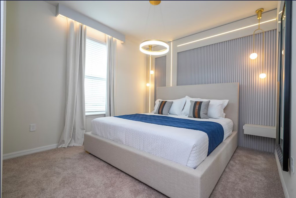 • Community: Windsor Cay • 5 Bedrooms/ 4.5 Bathrooms/ Sleeps • Disney World® (8.1 miles) SeaWorld (18.3 miles) • Convention Center (19.4 miles) ICON Park (21.1 miles) • Universal Studios (22.1 miles) Epic Universe (21.1 miles) • Location: Blue Island Drive, Clermont FL 34714 DETAILS • Central AC • Roku & Wi-Fi • Washer & Dryer • TV In Every Bedroom • Fully Equipped Kitchen • Towels & Linens Provided • Washcloths Are Not Provided • Family Room with Flat Screen TV • Hair Dryers, Iron & Ironing Board • Private Door Code for Each Guest Stay • Outdoor Patio Furniture with Sun Loungers • Pack 'n play/ High Chair (Free Upon Request) • Private Screened-in Pool + Child Safety Pool Fence - BEDROOM SETUP FIRST FLOOR SECOND FLOOR - USEFUL INFORMATION • CHECKING IN AND OUT - Check-in after 4:00 PM - Checkout before 10:00 AM • WINDSOR CAY PARKING - Parking is free. - 2 vehicles per unit in the shared parking spaces. - No parking on the street, grass or blocking the sidewalks. - Registered guests cannot share their parking passes with unregistered visitors. - Commercial Vehicles, RV's, Trailers, Buses, Golf Carts or Boats are not allowed at Windsor Cay. - Vehicle in violation of parking policy will be towed at the guest's expense. • THIS HOME IS SELF-CATERING We do provide a small welcome kit to get you started. Please stop by the nearest supermarket to gather any additional items you may need for the duration of your stay. • POOL HEAT - OPTIONAL 1-Cost: $35 per day. 2-Request 48 hours in advance. 3-Minimum: 2 consecutive days. 4-Temperature will not exceed 95F. 5-Heater works through HEAT EXCHANGE and WILL NOT WORK in cold weather. If you still would like to heat the pool during cold conditions and it does not reach the desired temperature, we will not be able to offer a refund. The pool heater pumps have a safety system that prevents overheating of the element when the pump is working overtime in cold weather. It automatically shuts off briefly until the pump can regain its functionality efficiently. Keep in mind this service is optional and may not be available at times. • BBQ RENTAL - OPTIONAL - Cost: $75 All Stay • TRASH DISPOSAL Please dispose the trash daily in the plastic bench or dumpster to keep a clean home. • HOUSEKEEPING There is no daily housekeeping service provided in the rental rate. Before check-in, the unit will be thoroughly cleaned and inspected by a professional cleaning company. Mid-stay cleaning services during your stay can be requested for an additional fee. • ONLINE PURCHASE If the online seller uses USPS, it will not get delivered as the Post Office does not recognize vacation homes as regular addresses and the package will be returned back to the sender. Only UPS, DHL and FEDEX delivers them. In some resorts the packages are delivered to the clubhouse. Fees may apply. Some resorts may not accept them. Keep in mind we are not responsible for unexpected issues with your online purchases. If you have any questions, please contact us. • REEF CLUB - Windsor Cay Resort - Arcade - Lazy River - Fitness Center - Family Cabanas - 9-Hole Mini Golf - Dual Water Slides - Gated Community - Volleyball & Cornhole - Children's Splash Pad - Outdoor Covered Bar - Blue Lagoon Bar & Grille - Resort-Style Zero-Entry Pool Resort registration needed. PLEASE NOTE: Additional charges apply when the owner has to fix something or pay for additional cleaning if not complied.