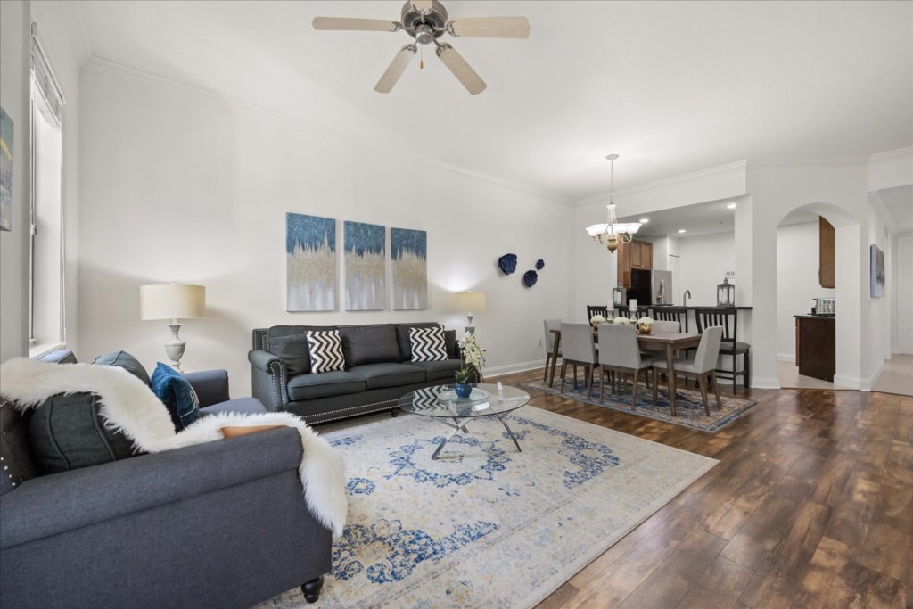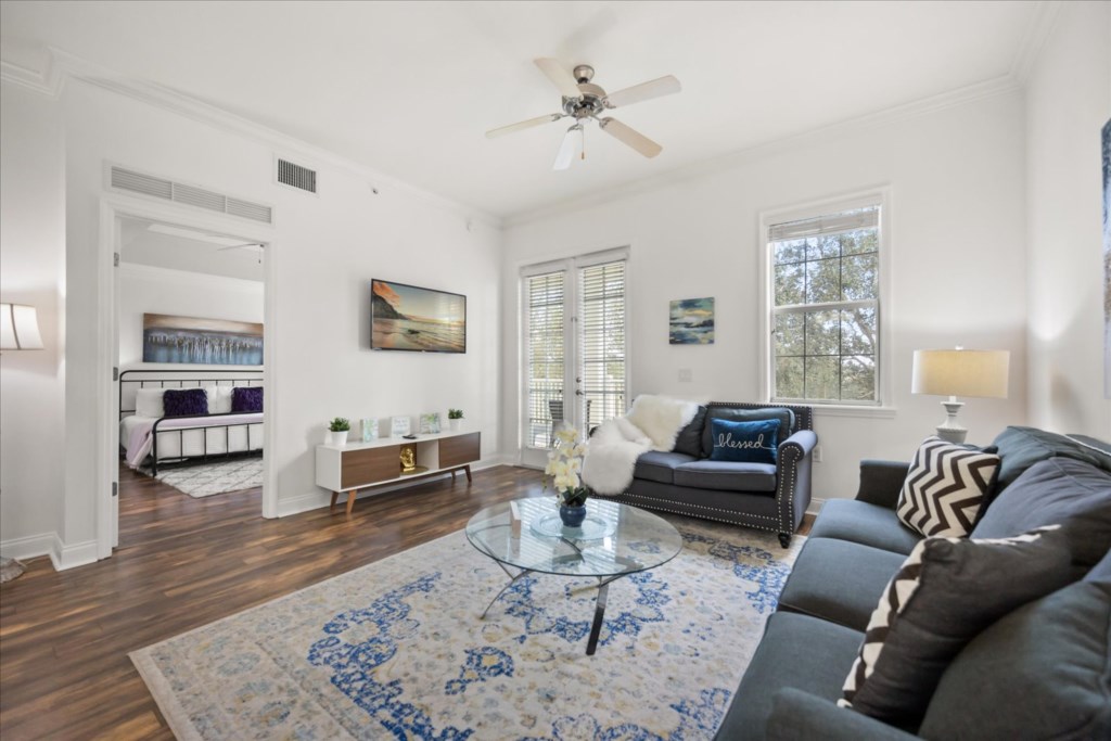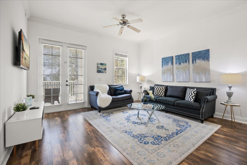 • Resort: Terraces at Reunion • 3 Bedrooms/ 2 Bathrooms/ Sleeps 6 • Disney (7.0 miles) SeaWorld (15.9 miles) Legoland (25.5 miles) • Convention Center (17.0 miles) Universal Studios (19.8 miles) • Location: Mourning Dove Circle, Kissimmee FL 34747 DETAILS • Central AC • Washer & Dryer • Gated Community • TV In Every Bedroom • Free Cable TV & WIFI • Fully Equipped Kitchen • Outdoor Patio Furniture • Towels & Linens Provided • Washcloths Are Not Provided • Family Room with Flat Screen TV • Hair Dryers, Iron & Ironing Board • Private Door Code for Each Guest Stay • Pack 'n play/ High Chair (Free Upon Request) - BEDROOM SETUP THIRD LEVEL APARTMENT Bedroom 1: 1 Queen Bed + Bathroom In Hallway Bedroom 2: 2 Twin Beds Bedroom 3: 1 King Bed (Private Bathroom) THIRD LEVEL APARTMENT - USEFUL INFORMATION • FIRST FLOOR UNIT • PARKING Parking is free. Park in the driveway or in the garage of the unit. Parking in the street is not allowed. Commercial Vehicles, RVs and Trailers are not permitted at Terraces at Reunion THERE IS NO ACCESS TO WATERPARK/ CLUBHOUSE/ RESORT AMENITIES. • THIS HOME IS SELF-CATERING We do provide a small welcome kit to get you started. Please stop by the nearest supermarket to gather any additional items you may need for the duration of your stay. • TRASH DISPOSAL Please place the garbage in the trash cart located in the garage to keep a clean home. • HOUSEKEEPING There is no daily housekeeping service provided in the rental rate. Before check-in, the unit will be thoroughly cleaned and inspected by a professional cleaning company. Clean sheets and towels will be available in the unit. Mid-stay cleaning services during your stay can be requested for an additional fee. • ONLINE PURCHASE If the online seller uses USPS, it will not get delivered as the Post Office does not recognize vacation homes as regular addresses and the package will be returned back to the sender. Only UPS, DHL and FEDEX delivers them. In some resorts the packages are delivered to the clubhouse. Fees may apply. Some resorts may not accept them. Keep in mind we are not responsible for unexpected issues with your online purchases. If you have any questions, please contact us. PLEASE NOTE: Additional charges apply when the owner has to fix something or pay for additional cleaning if not complied.