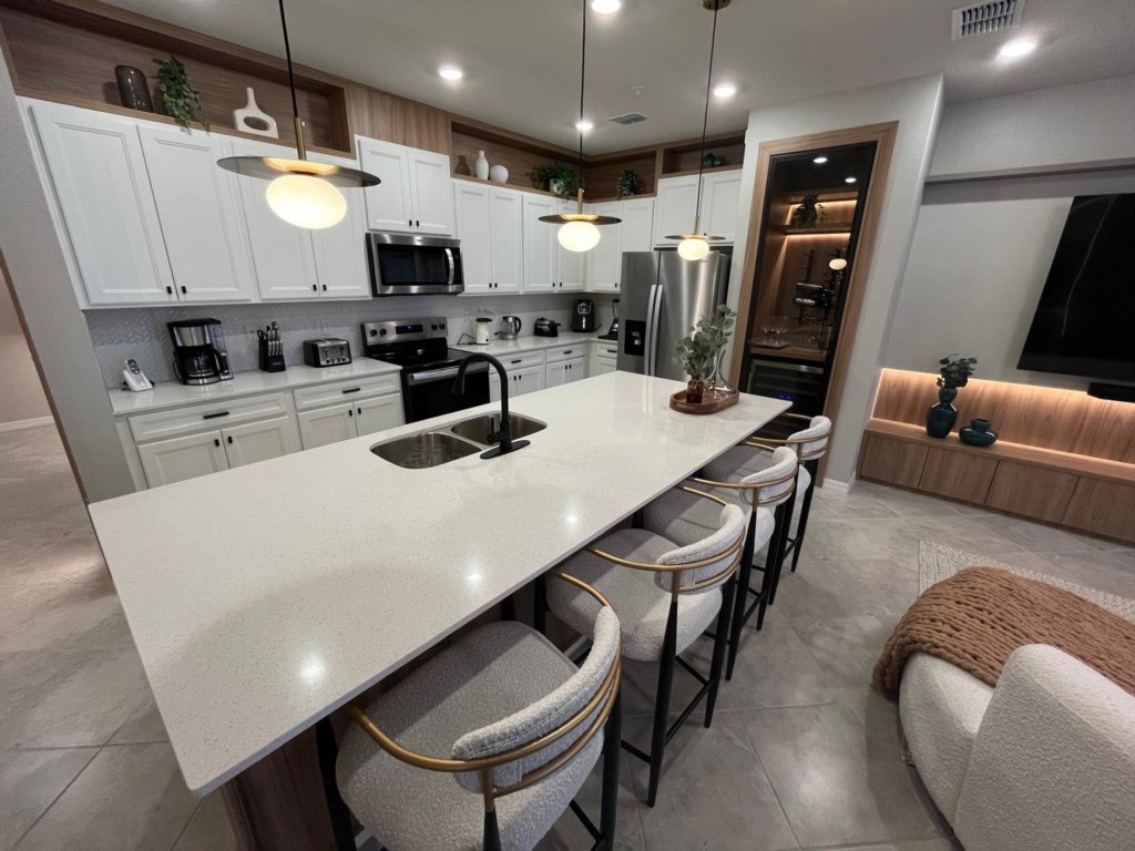 • Community: Windsor Cay • 5 Bedrooms/ 4.5 Bathrooms/ Sleeps 12 • Disney World® (8.2 miles) SeaWorld (18.5 miles) • Convention Center (19.5 miles) ICON Park (20.9 miles) • Universal Studios (22.3 miles) Epic Universe (20.9 miles) • Location: Coastal Cove Lane, Clermont FL 34714 DETAILS • 2,269 sqft • Central AC • Cable TV & Wi-Fi • Washer & Dryer • TV In Every Bedroom • Fully Equipped Kitchen • Towels & Linens Provided • Washcloths Are Not Provided • Family Room with Flat Screen TV • Hair Dryers, Iron & Ironing Board • Private Door Code for Each Guest Stay • Outdoor Patio Furniture with Sun Loungers • Pack 'n play/ High Chair (Free Upon Request) • Private Screened-in Pool + Child Safety Pool Fence - BEDROOM SETUP FIRST FLOOR Bedroom 1: 1 King Bed + Bathroom In Hallway + Half Bathroom In Pool Area SECOND FLOOR Bedroom 2: 1 Bunk Bed (Twin Over Twin) Bedroom 3: 1 Bunk Bed (Full Over Full) + Bathroom In Hallway Bedroom 4: 1 King Bed (Private Bathroom) Bedroom 5: 1 Queen Bed (Private Bathroom) - USEFUL INFORMATION • CHECKING IN AND OUT - Check-in after 4:00 PM - Checkout before 10:00 AM • WINDSOR CAY PARKING - Parking is free. - 2 vehicles per unit in the shared parking spaces. - No parking on the street, grass or blocking the sidewalks. - Registered guests cannot share their parking passes with unregistered visitors. - Commercial Vehicles, RV's, Trailers, Buses, Golf Carts or Boats are not allowed at Windsor Cay. - Vehicle in violation of parking policy will be towed at the guest's expense. • THIS HOME IS SELF-CATERING We do provide a small welcome kit to get you started. Please stop by the nearest supermarket to gather any additional items you may need for the duration of your stay. • POOL HEAT - OPTIONAL 1-Cost: $35 per day. 2-Minimum: 2 consecutive days. 3-Temperature will not exceed 95F. 4-Must be requested 48h in advance. 5-Attached spa is NOT a hot tub. It can only be heated if the entire pool is heated. They both will have the same temperature. It does not have jets. 6-Heater works through HEAT EXCHANGE and WILL NOT WORK in cold weather. If you still would like to heat the pool during cold conditions and it does not reach the desired temperature, we will not be able to offer a refund. The pool heater pumps have a safety system that prevents overheating of the element when the pump is working overtime in cold weather. It automatically shuts off briefly until the pump can regain its functionality efficiently. Keep in mind this service is optional and may not be available at times. • BBQ RENTAL - OPTIONAL - Cost: $75 All Stay • TRASH DISPOSAL Please place trash in the plastic bin daily to keep a clean home. • HOUSEKEEPING There is no daily housekeeping service provided in the rental rate. Before check-in, the unit will be thoroughly cleaned and inspected by a professional cleaning company. Clean sheets and towels will be available in the unit. Mid-stay cleaning services during your stay can be requested for an additional fee. • ONLINE PURCHASE If the online seller uses USPS, it will not get delivered as the Post Office does not recognize vacation homes as regular addresses and the package will be returned back to the sender. Only UPS, DHL and FEDEX delivers them. In some resorts the packages are delivered to the clubhouse. Fees may apply. Some resorts may not accept them. Keep in mind we are not responsible for unexpected issues with your online purchases. If you have any questions, please contact us. • REEF CLUB - Windsor Cay Resort - Arcade - Lazy River - Fitness Center - Family Cabanas - 9-Hole Mini Golf - Dual Water Slides - Gated Community - Volleyball & Cornhole - Children's Splash Pad - Outdoor Covered Bar - Blue Lagoon Bar & Grille - Resort-Style Zero-Entry Pool RESORT REGISTRATION NEEDED AFTER BOOKING CONFIRMATION. PLEASE NOTE: Additional charges apply when the owner has to fix something or pay for additional cleaning if not complied.